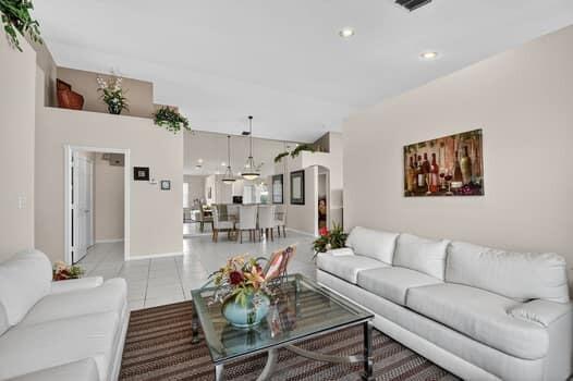 Welcome to this beautifully maintained 2 bedroom, 2 bathroom home with a den, located in the active 55+ community of Grove Isle. This spacious residence features vaulted ceilings, split floor plan and an open living area making it ideal for comfort and entertaining. The eat-in kitchen is equipped with granite countertops, fingerprint-resistant stainless steel appliances, a center island, and plenty of cabinetry. The primary suite is equipped with a generous walk-in closet and a well appointed bathroom that offers a spacious layout with a large walk-in shower, dual sinks and modern conveniences. This home is ready for you to move in! Grove Isle provides exceptional amenities, including a newly remodeled clubhouse, resort-style pool,