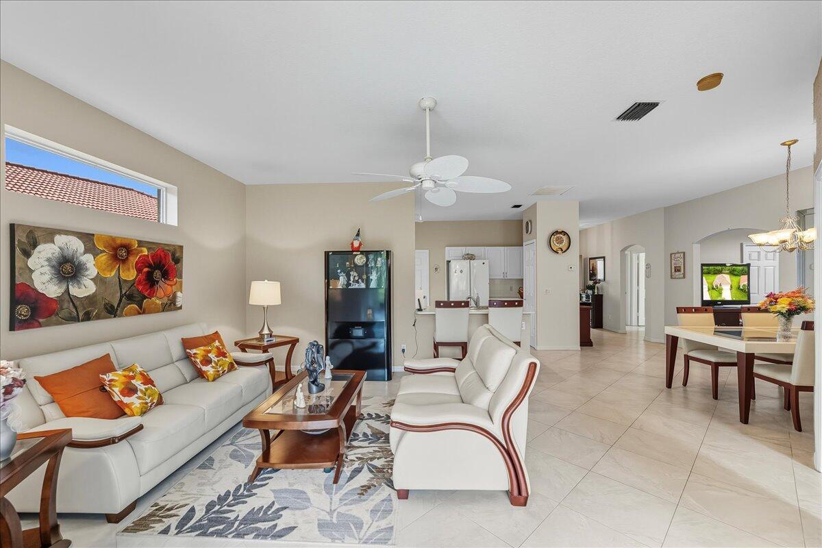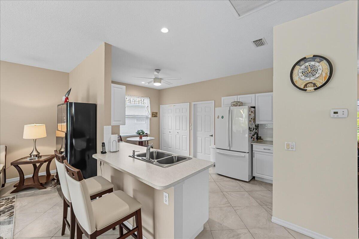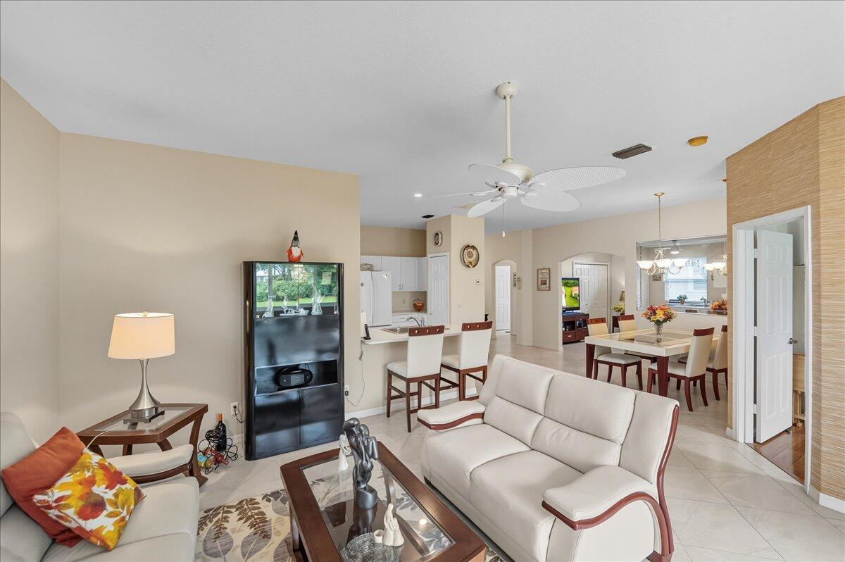 Meticulously maintained 2BR/2BA/2Car home on a spacious lot in the sought-after Madeira section of Kings Isle, a 55+ active adult community. This inviting residence features an open layout filled with natural light, a well-designed kitchen, and split bedrooms for comfort and privacy. The primary suite includes a walk-in closet and private bath, while the guest bedroom is ideal for visitors or hobbies. With no carpeting throughout, this home is easy to maintain & move-in ready. Step out to the screened lanai and enjoy peaceful mornings or evening breezes in true Florida style. Kings Isle residents enjoy resort-style amenities including clubhouse, pool, fitness center, tennis, pickleball, and countless clubs and activities. Convenient to shopping, dining, golf, medical facilities, & beaches