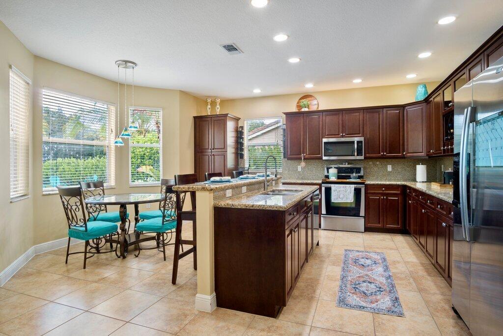 BRING AN OFFER! This charming two-story home is priced to sell! Whether you're relocating or need to move quickly, this beautiful home can be sold turnkey and fully furnished at no added cost! Seller is also offering to credit buyer with $10,000 to apply toward a rate buy-down or a closing credit! With a spacious floor plan designed for both everyday living and entertaining, you'll find plenty of room to spread out and enjoy. The first floor boasts stylish neutral ceramic tile, while the staircase and entire second floor are finished with rich dark wood-look laminate, adding a modern touch throughout. The heart of the home is the bright and airy kitchen, featuring abundant storage, a center island, and a cozy breakfast nook that overlooks the inviting family room.