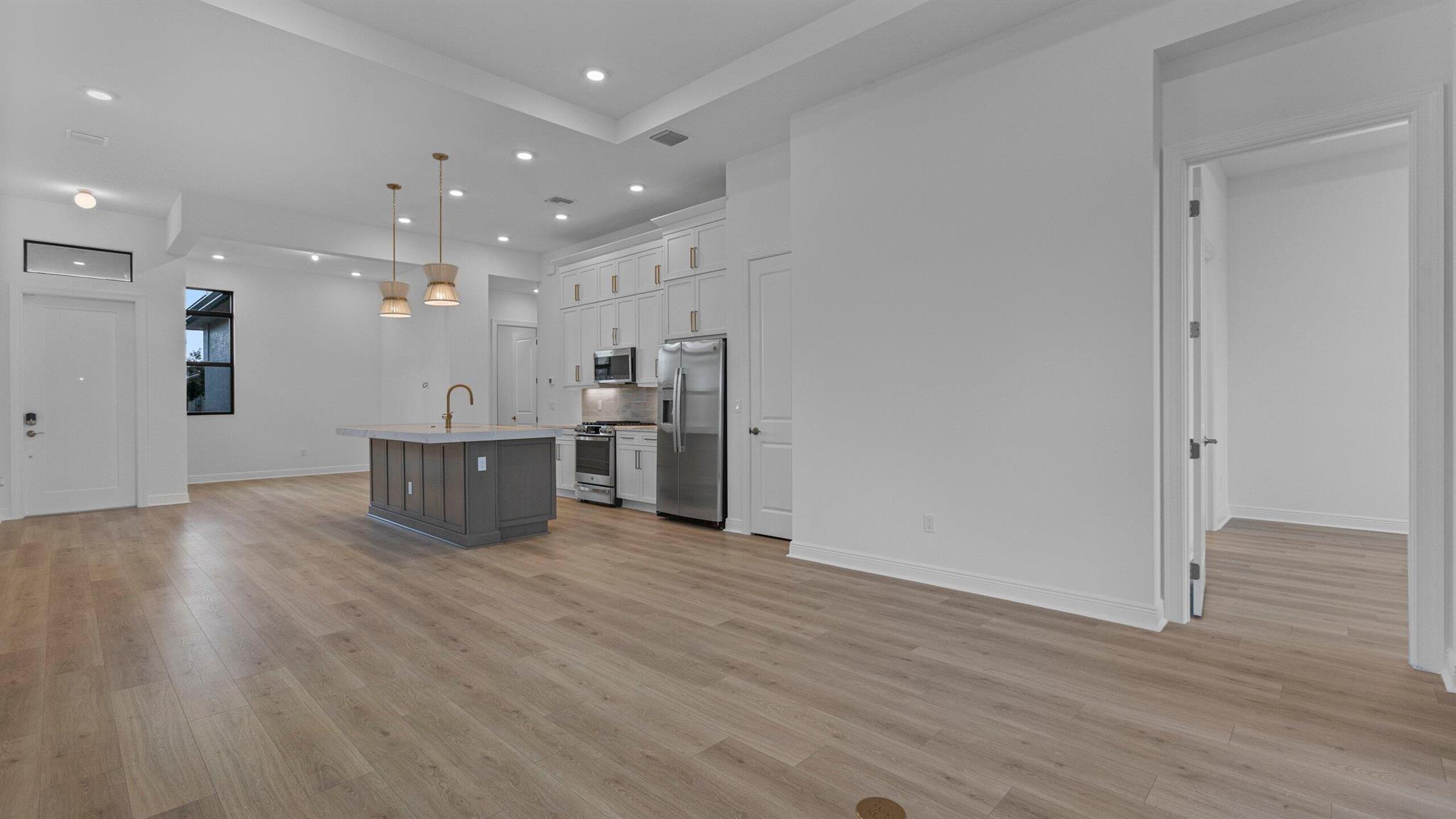 **New Construction - Move In Ready** This brand-new Allison floorplan is situated on private homesite in a gated 55+ community. The home includes and includes 2 bedrooms, 2 bathrooms, and a 2-car garage. This Allison also includes an added 4-foot owner's suite and lanai extension on the rear of the home. There is an added 5-foot privacy wall on the lanai with gas, water, and electric connections for a future summer kitchen. The kitchen includes gas cooking along with a 3'' edge quartz kitchen island, and second tier upper cabinets. This Allision also comes with spray foam insulation for added energy efficiency and under cabinet LED lighting.