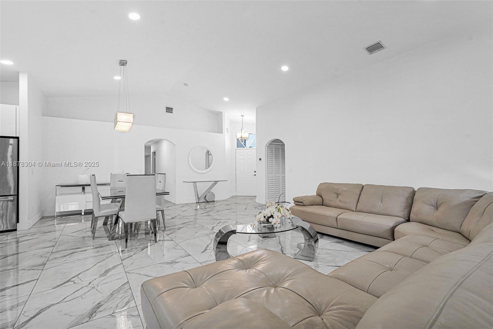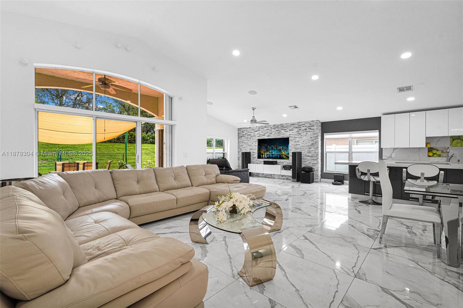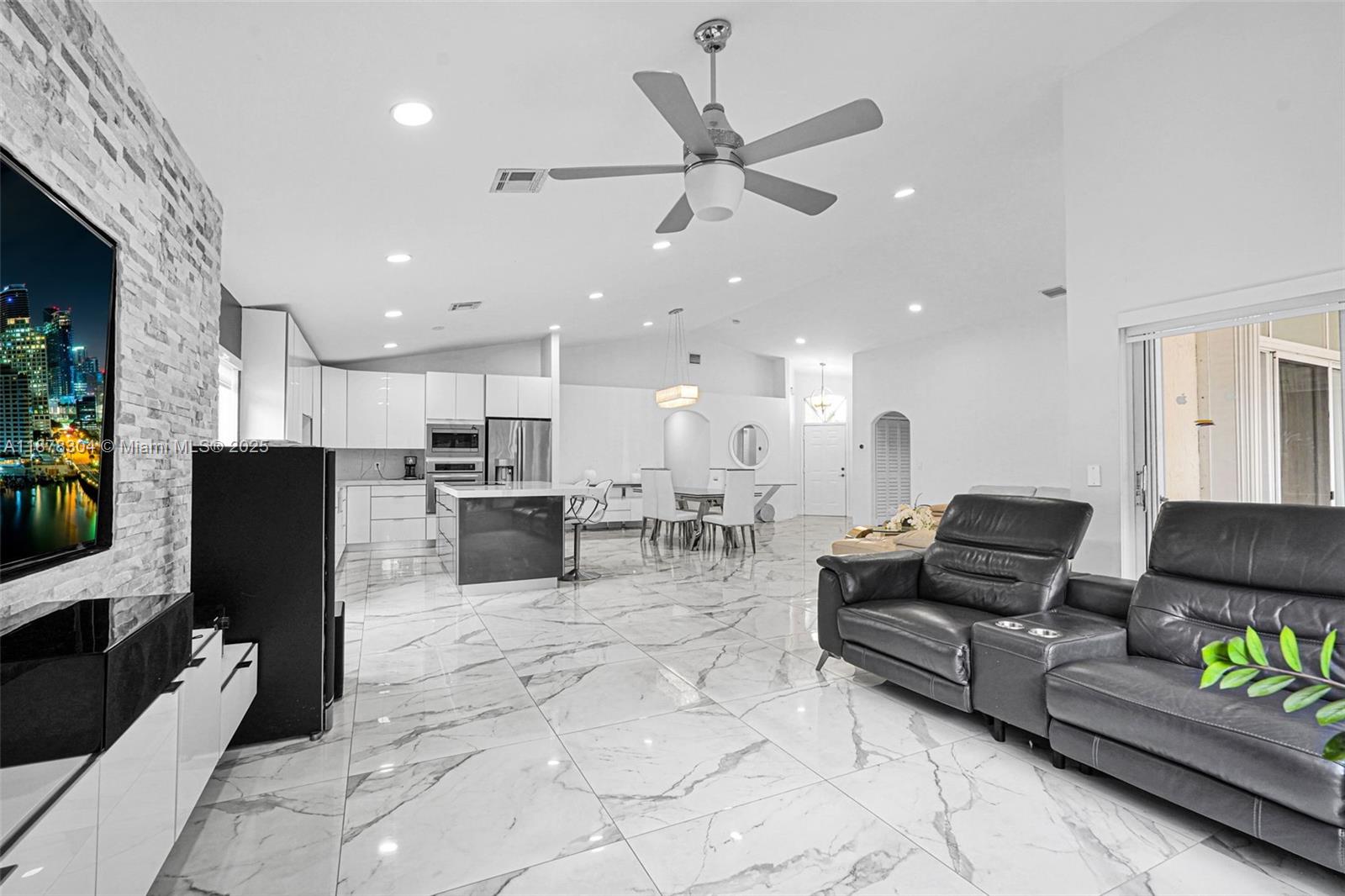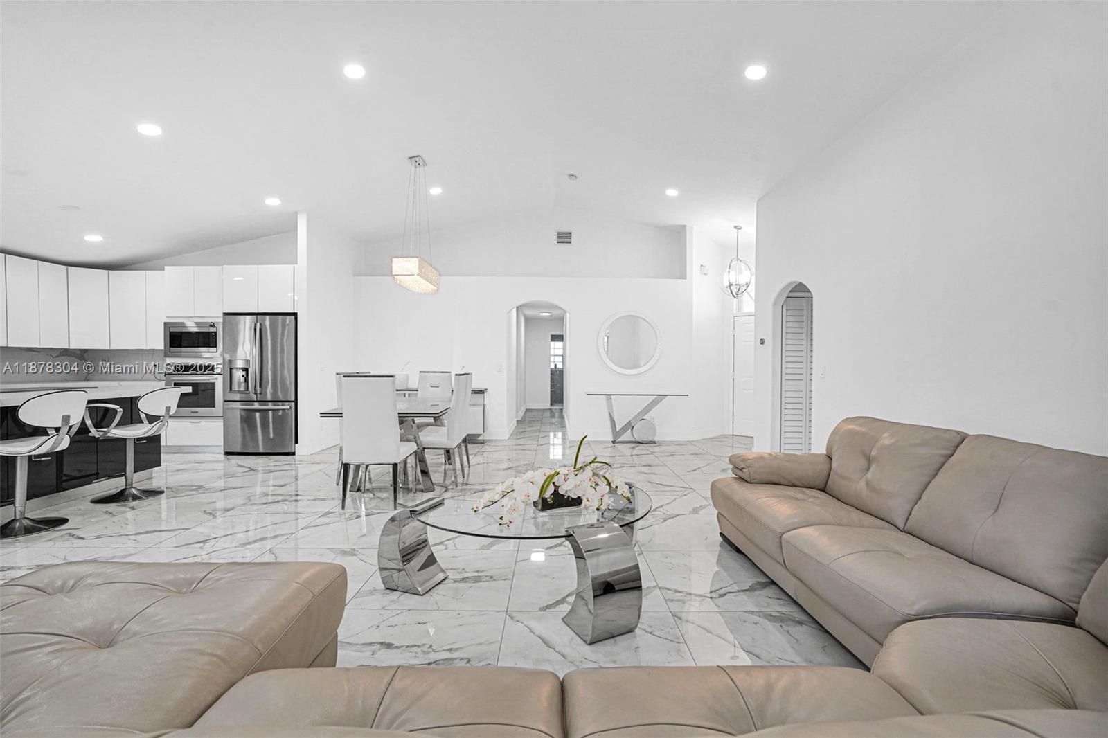 Exceptional living awaits in this beautifully renovated 4-bedroom, 2-bath home located in the highly desirable gated community of Pembroke Shores. A bright open layout with soaring ceilings fills the home with natural light, featuring a modern kitchen, stylishly updated baths, and seamless indoor-outdoor living. The spacious primary suite opens directly to the backyard—perfect for relaxing or entertaining. Enjoy peace of mind with accordion hurricane shutters and a low quarterly HOA of $497. Ideally situated just minutes from I-75, the Turnpike, top-rated schools, shopping, and dining, this home perfectly combines comfort, convenience, and lasting value. Priced to move and offering one of the best values in Pembroke Shores! Property under contract – accepting back-up offers.