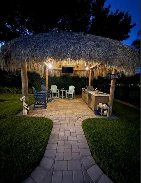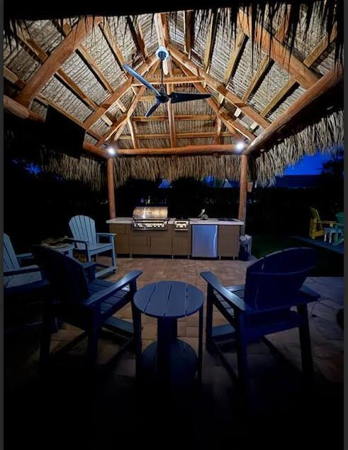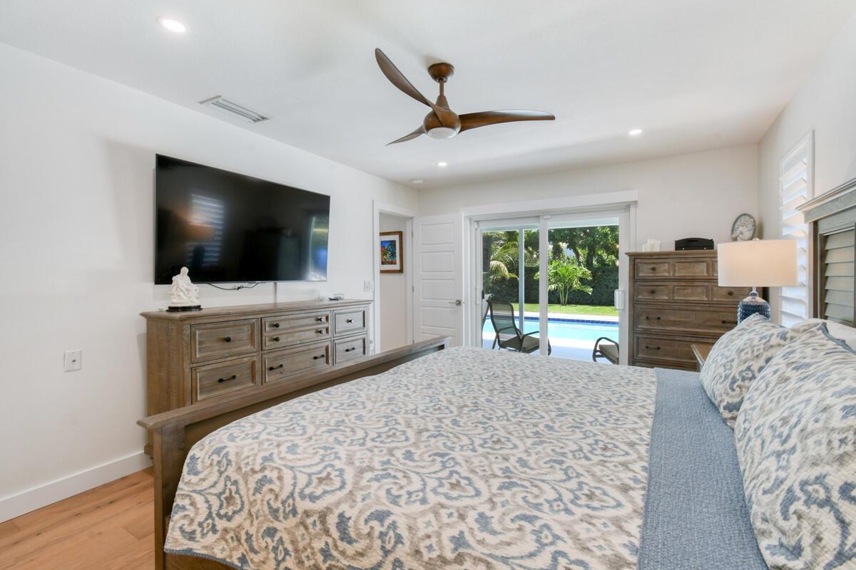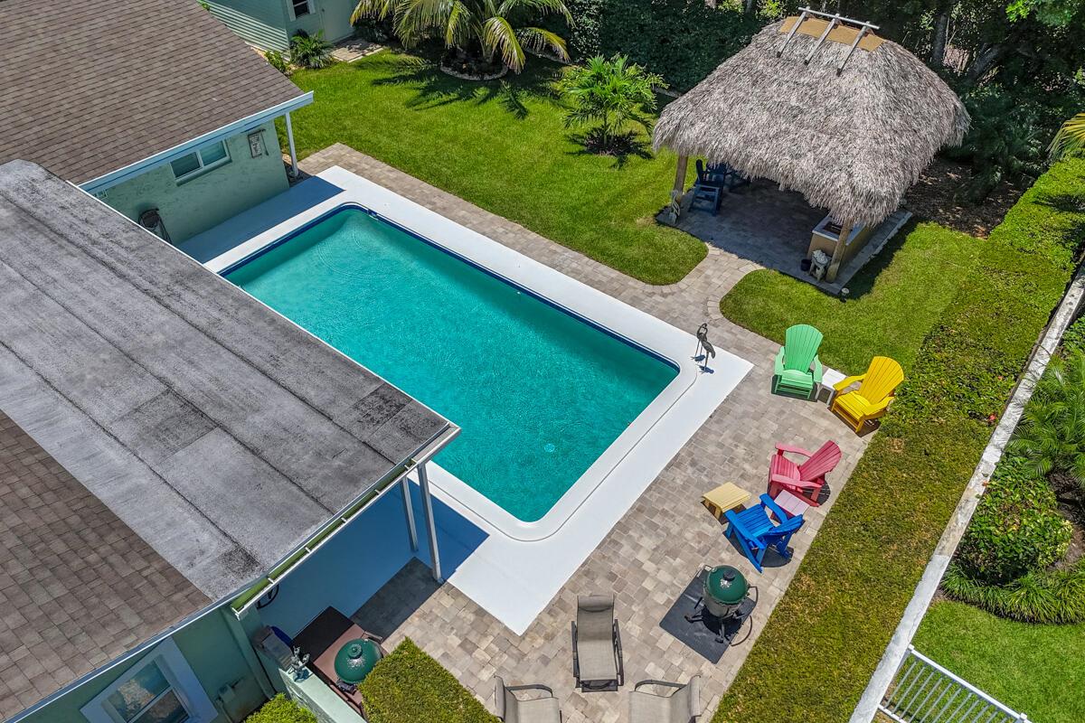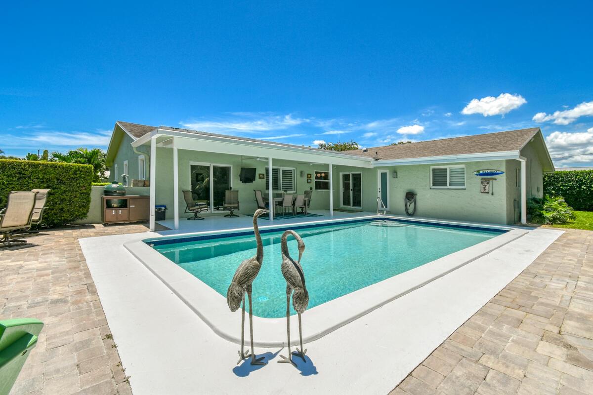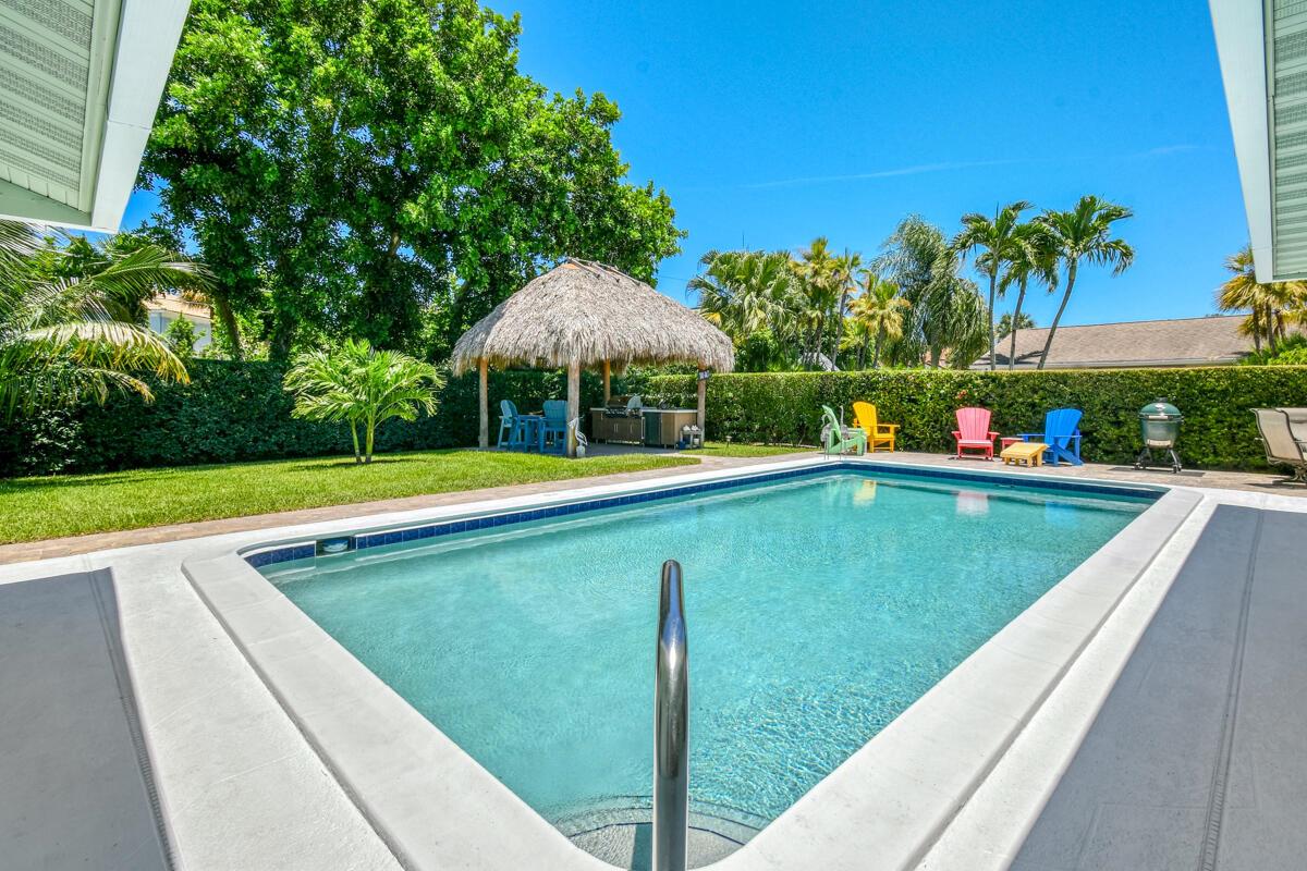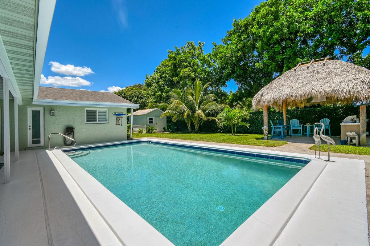 Live the Florida lifestyle in this classic 3-bedroom, 2-bath CBS home, beautifully upgraded for modern living! Nestled on a spacious 1/3-acre lot along the highly coveted Prosperity Farms corridor and just 2 miles from the beach, this property offers the perfect blend of comfort, style, and convenience. Step outside to your private oasis featuring a sparkling pool, Tiki Hut, and fully equipped outdoor kitchen--ideal for entertaining or relaxing year-round. Inside, the remodeled kitchen boasts quartz countertops and pull-out cabinet shelving, while both bathrooms have been tastefully updated. Additional highlights include: Storm-ready with whole-house generator + impact windows/doors, Epoxy garage floors with built-in cabinetry, New AC (2024),