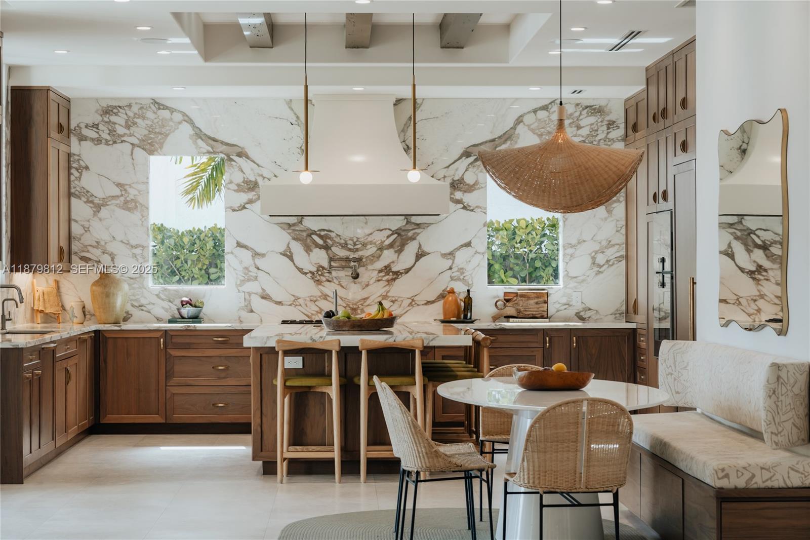 An extraordinary waterfront estate offering 8,433 sq ft with 8 bedrooms, 9 baths and Spanish Mediterranean charm. Designed by Monogram Studios Lisa Mayock, this 2022 residence blends modern construction with Old-World elegance, inclusive of stucco walls, barrel-tile roof, and arches. The oversized corner lot residence opens with a skylight centerpiece followed by a chef’s kitchen with Gaggenau & Sub-Zero appliances, two laundry rooms, dual-control wine cooler, media room, butlers pantry, pilates/gym, and office. For seamless indoor-outdoor living: loggias, courtyards, summer kitchen with retractable screens, cabana bath, 4-car garage, and 50 ft of water frontage. With no fixed bridges, an extra wide canal and only minutes to the ocean this is a true statement home in Lighthouse Point.