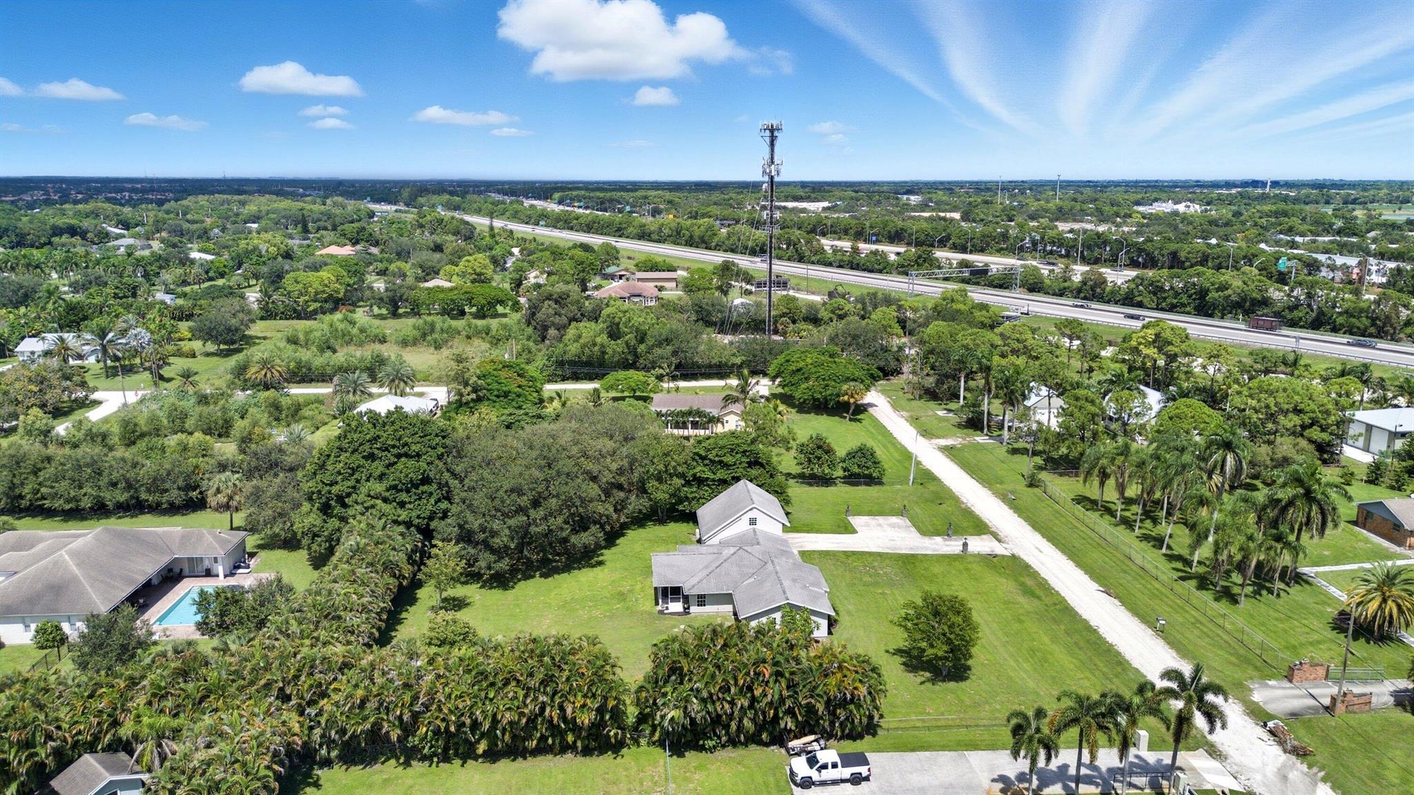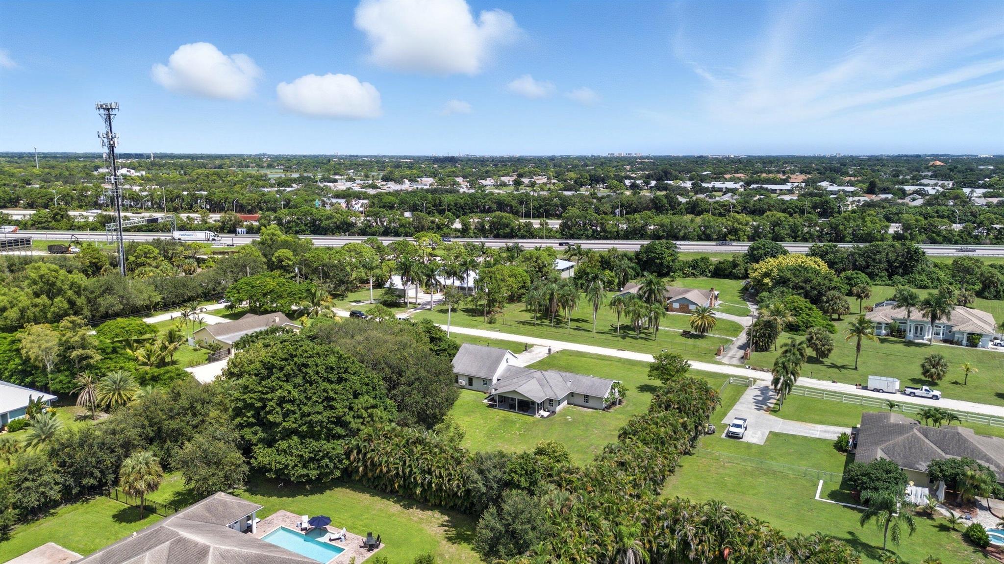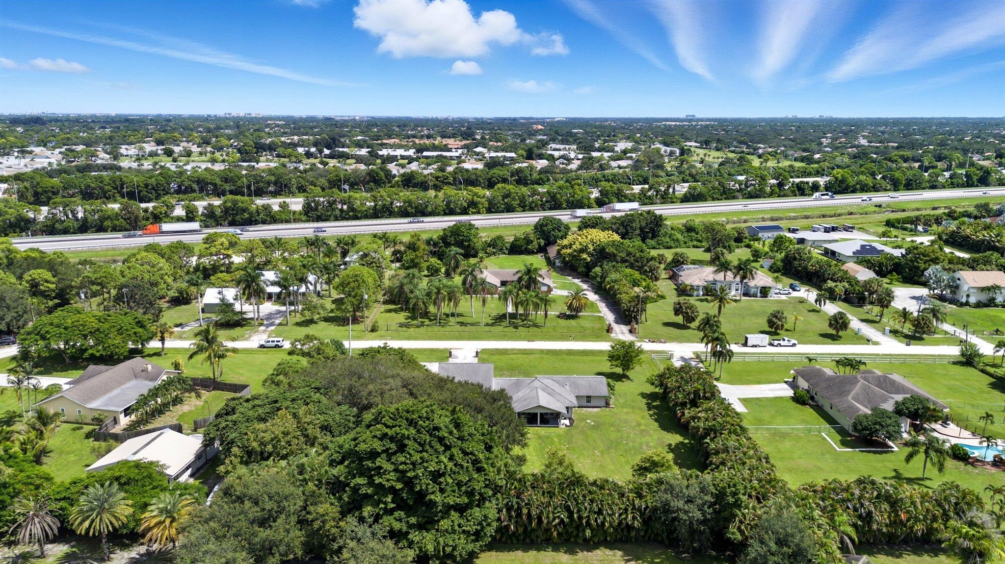 Do not miss this rare opportunity in Palm Beach Country Estates featuring the perfect combination of a spacious single-family home and a detached in-law suite/apartment. The main home offers 3 bedrooms and 3 bathrooms, while the detached guest house includes 1 bedroom, 1 bathroom, a full kitchen, and living area--ideal for extended family, guests, or as an income-producing rental to help cover your mortgage. All of this sits on 1.16 acres with plenty of privacy and no HOA, giving you the freedom to bring your boat, RV, toys, or even farm animals.The main residence is one story and showcases travertine flooring in the living areas, laminate flooring in the bedrooms, high ceilings, and an abundance of natural light throughout. The spacious kitchen features granite countertops,