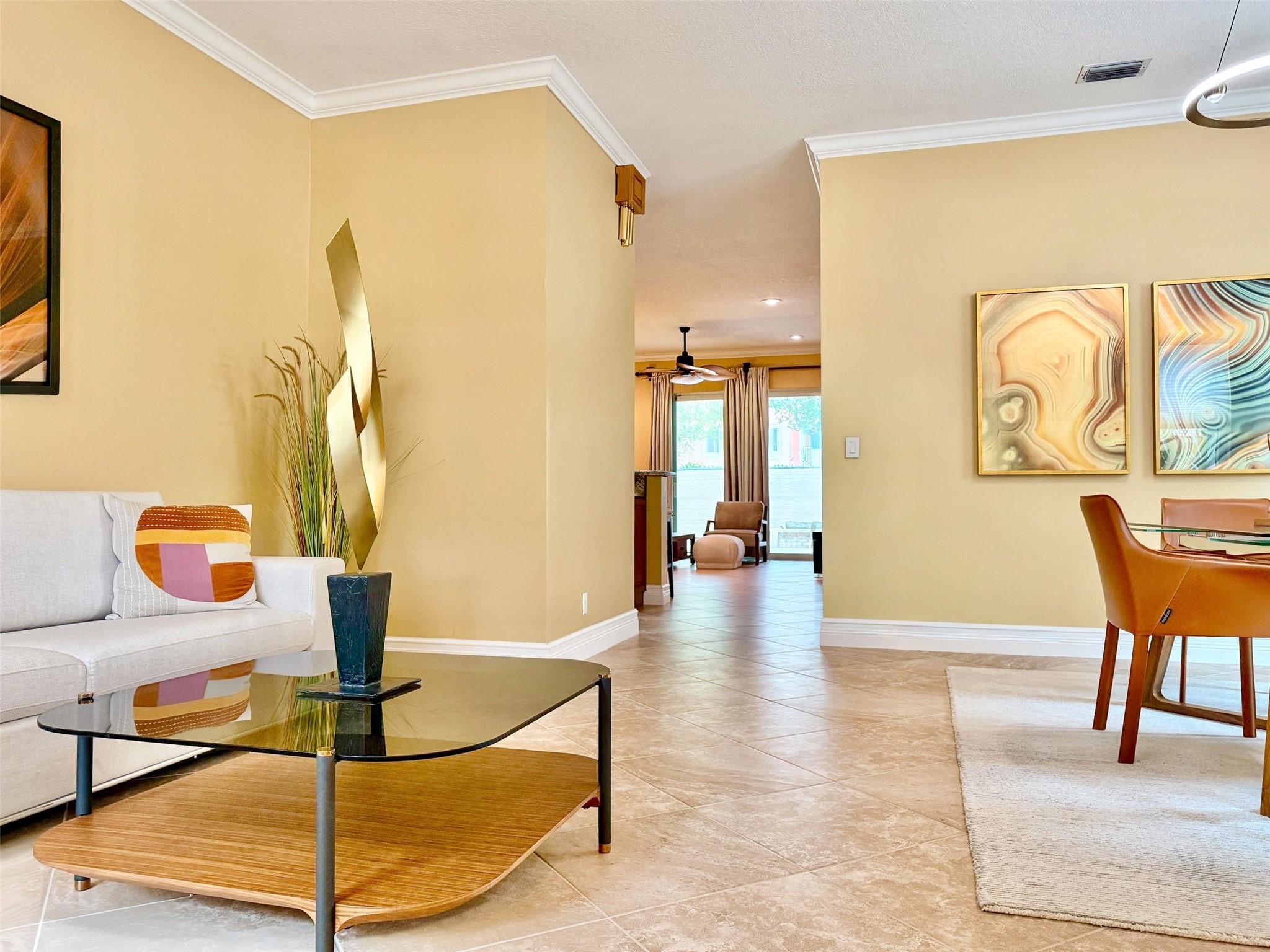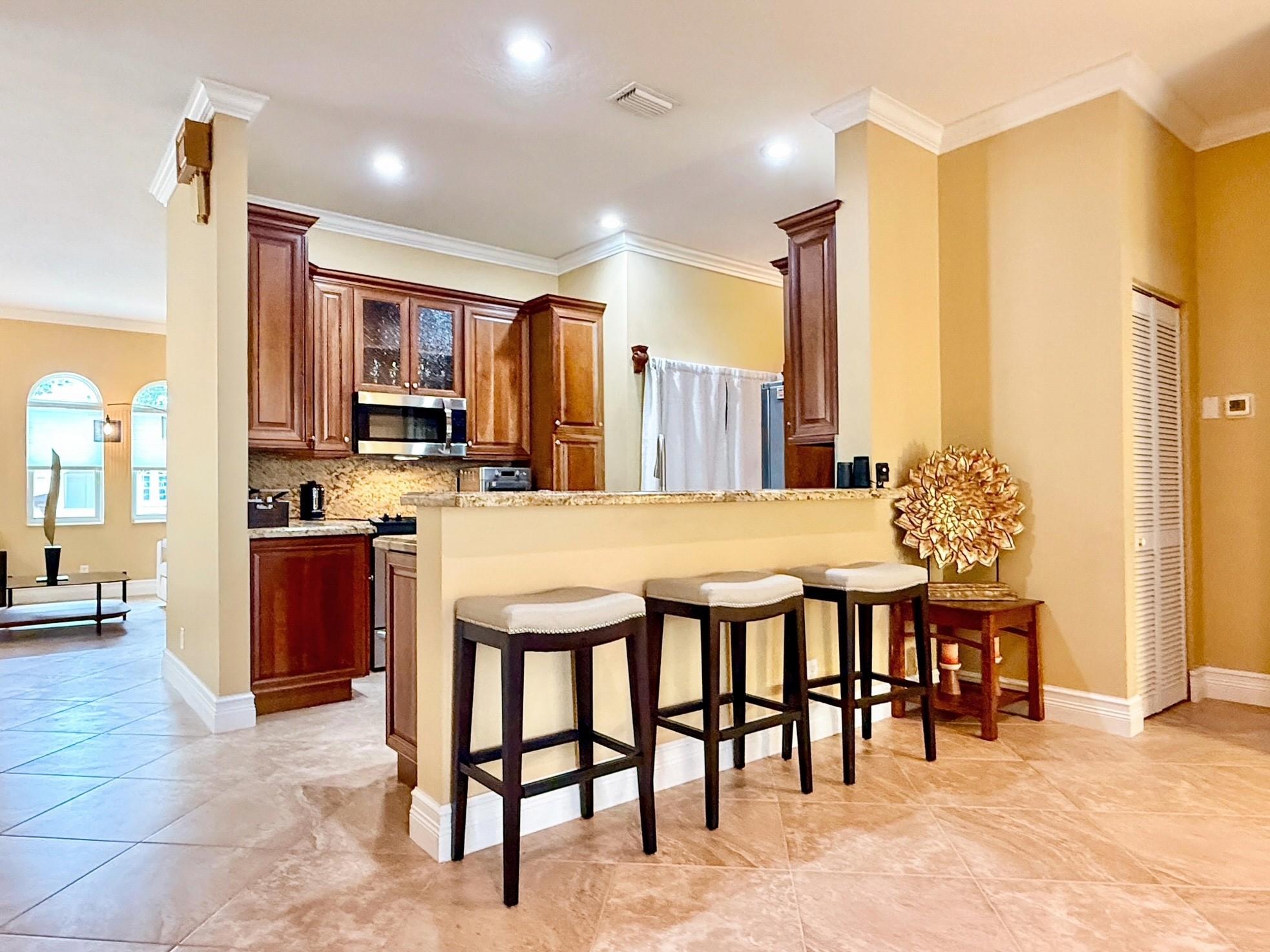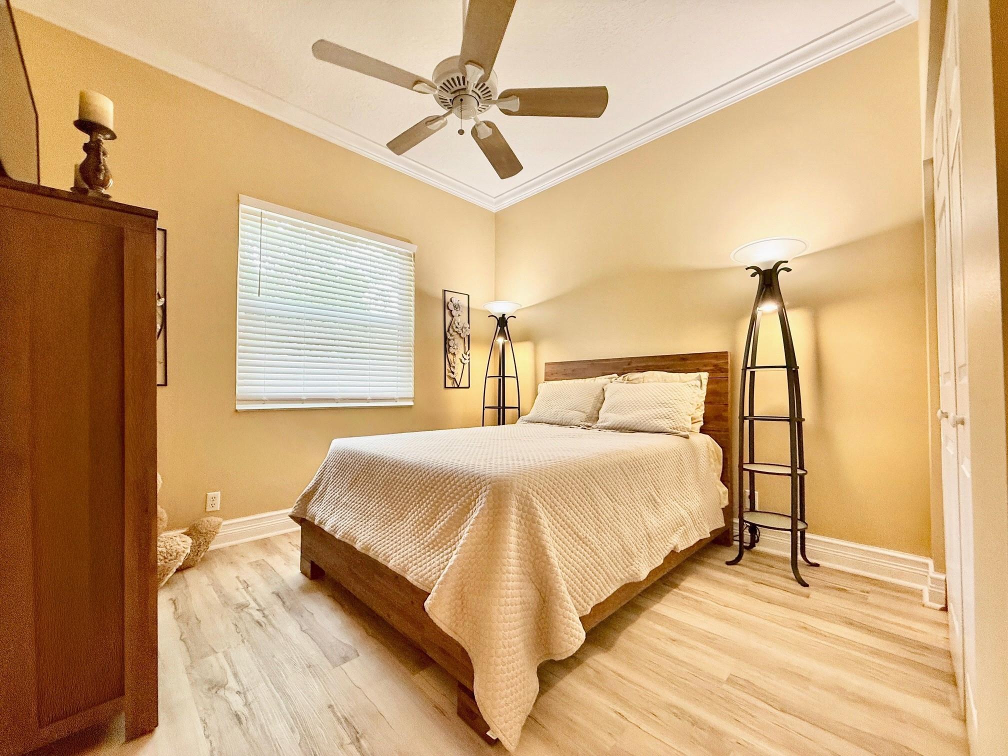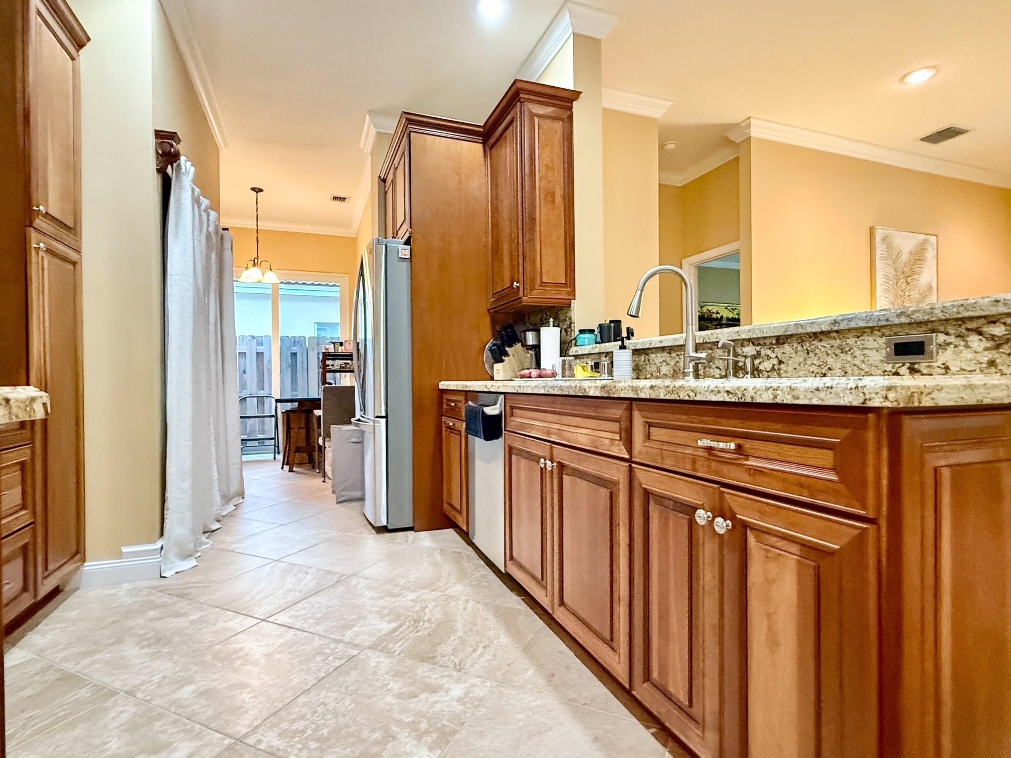 Beautifully Remodeled 3-Bedroom, 2-Bath Home in the Desirable Gated Community of Coquina. Bright & Open Split Floor Plan with High Ceilings, Crown Molding, NEW Lighting & Ceilings Fans. Beautiful Chef Style Kitchen with Custom Cabinetry, Granite Counters, Stainless Appliances + Bonus Room off Kitchen which can be used as an Office. Spacious Master Bedroom Suite with Walk-in Closet & Gorgeous Walk-in Shower. NEW Vinyl Flooring in all Bedrooms. NEW Front Door, Hurricane Impact Windows & 2 Sliding Doors. Private Backyard with NEW Expansive Paver Brick Patio & Fence. NEW Diamond Coat 2-Car Garage Floor & Freshly Painted Interior/Exterior. Meticulously Maintained Home! Cable/Internet included in Low HOA payment + Clubhouse Pool and Playground. VA-Approved & Current Loan Assumable to a Veteran!