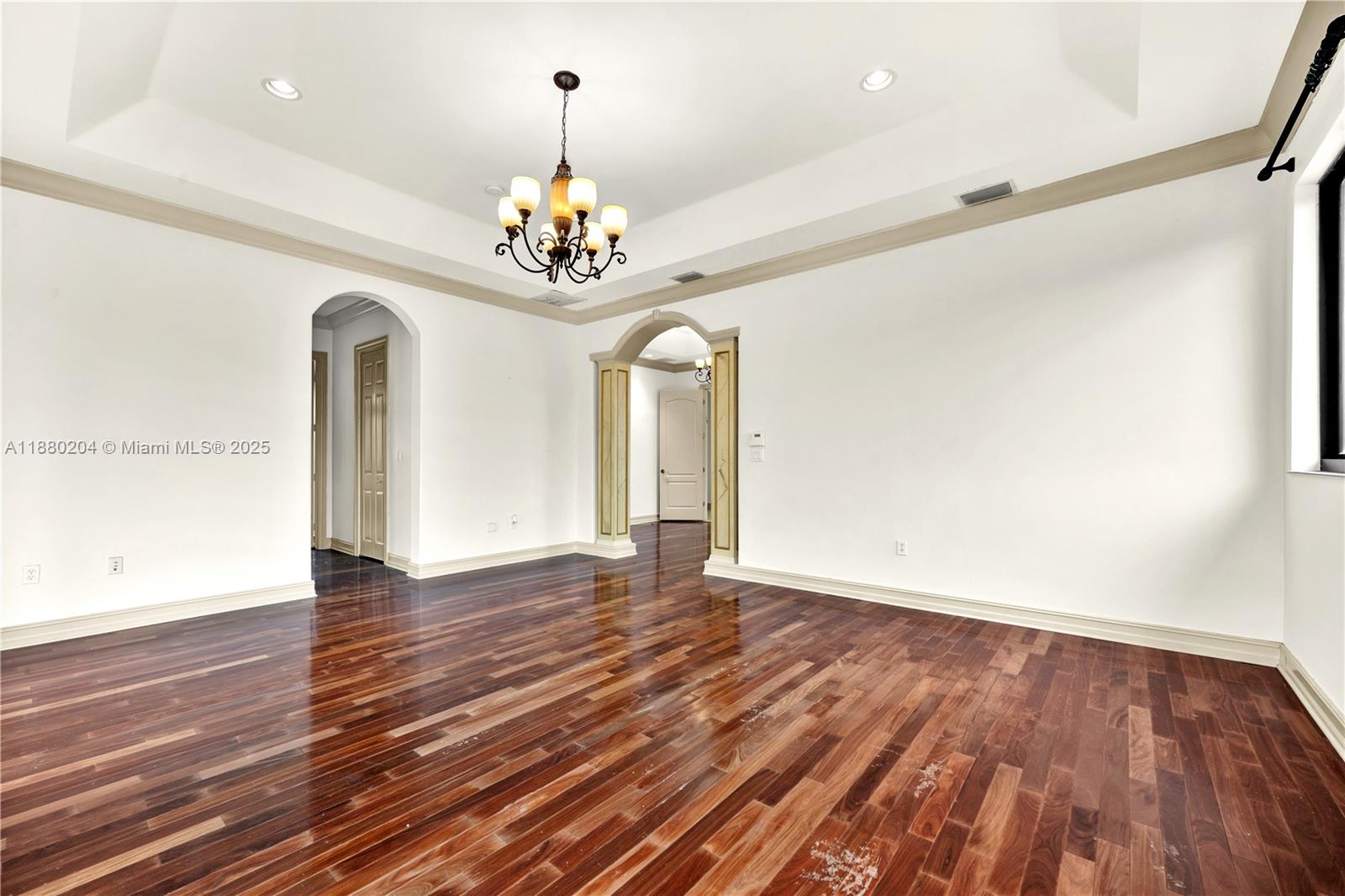 Located in the exclusive gated community of Cutler Cay, this 5/4 spacious residence features tile and wood flooring, custom lighting, crown molding and an expansive gourmet kitchen with ample cabinetry and countertops with backsplash, SS appliances, and breakfast nook. The spacious primary has tray ceilings, custom closet and a stunning bath suite with his and her vanities, garden tub and walk in shower. Exterior has new paint, A/C has been recently serviced, the pool has been filled in and is not functional. Home needs some repair. Community amenities include clubhouse, heated pool, spa, gym, steam room, playground, tennis, basketball & 2 new pickleball courts. All information recorded in the MLS is intended to be accurate but cannot be guaranteed, buyer advised to verify. Sold As-Is.