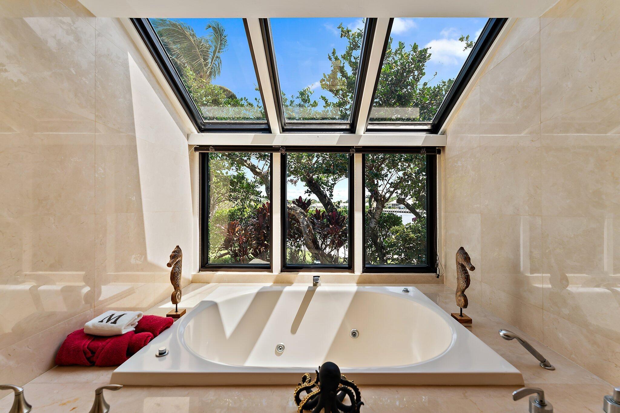 Rare opportunity offering 200' of deepwater frontage on one of North Palm Beach's most scenic lots! This cul de sac home is located in HIDDEN KEY, a coveted private enclave East of US 1. Custom built to feature organic design elements including true hardwood floors, plantation shutters, solid wood doors + pocket doors Concrete Roof was replaced in 2011. Enjoy serene + secure living on Little Lake Worth (w/ easy Ocea n access). You can fish off your private dock! Water views from all main living areas. All bedrooms offer ensuite baths. Residents of North Palm Beach enjoy a newly renovated public country club w/ signature Jack Nicklaus golf, Olympic sized pool, fabulous tennis + wonderful indoor/outdoor dining overlooking the golf course. This home is just minutes to the best beaches,
