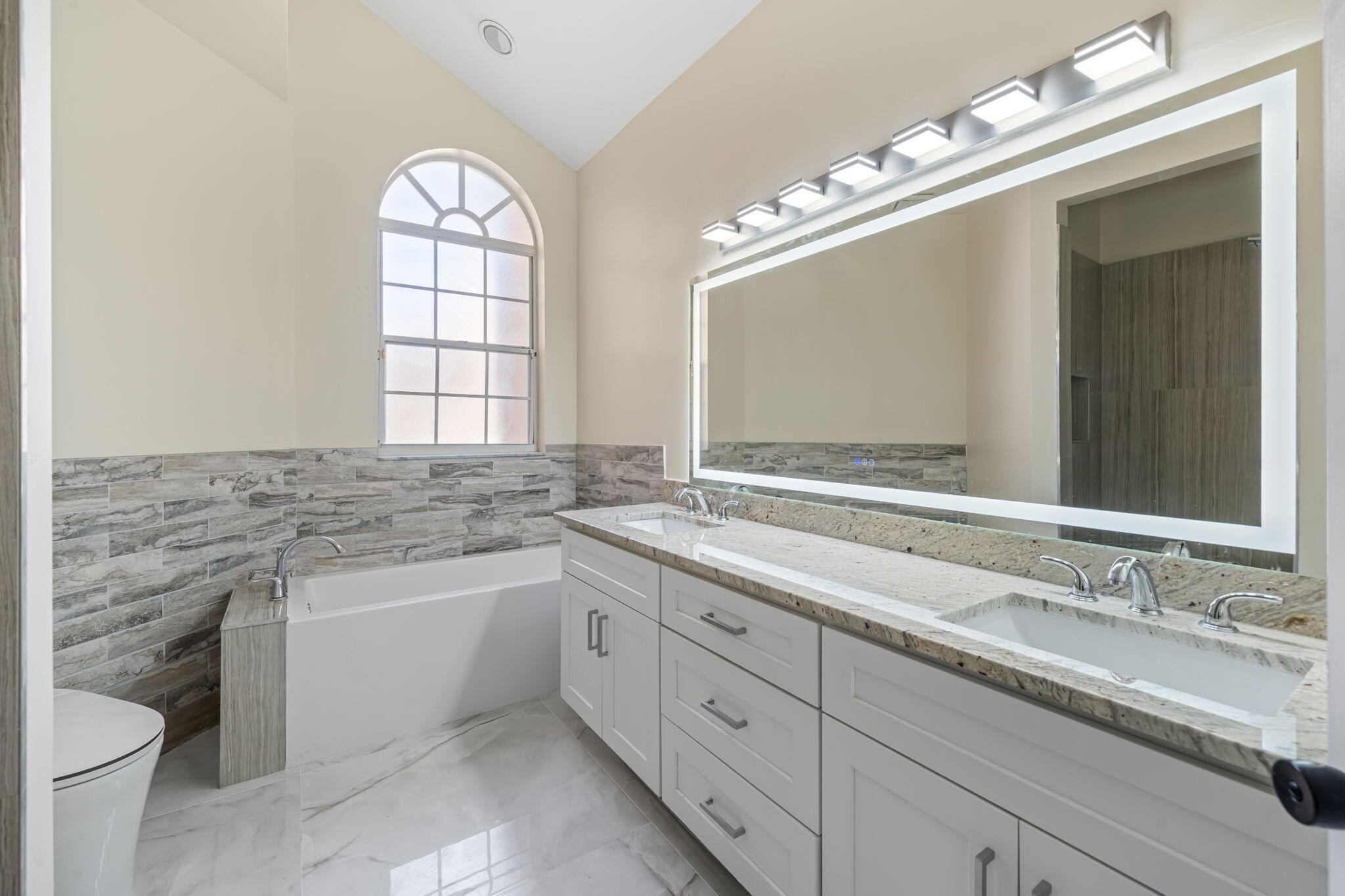 Seller is highly motivated . Stunning renovated home in the prestigious gated community of Broken Sound. This modern residence features a custom kitchen with waterfall counters, high-end appliances, and high end kitchen sink. Large porcelain floors, soaring ceilings, and updated showers with illuminated mirrors that add a touch of luxury. Enjoy a private patio with new landscaping, Access world-class amenities including golf, spa, dining, fitness, tennis, and more. Centrally located near A-rated schools, shops, and dining. Broken Sound is ranked among the Top 50 Platinum Clubs in America!