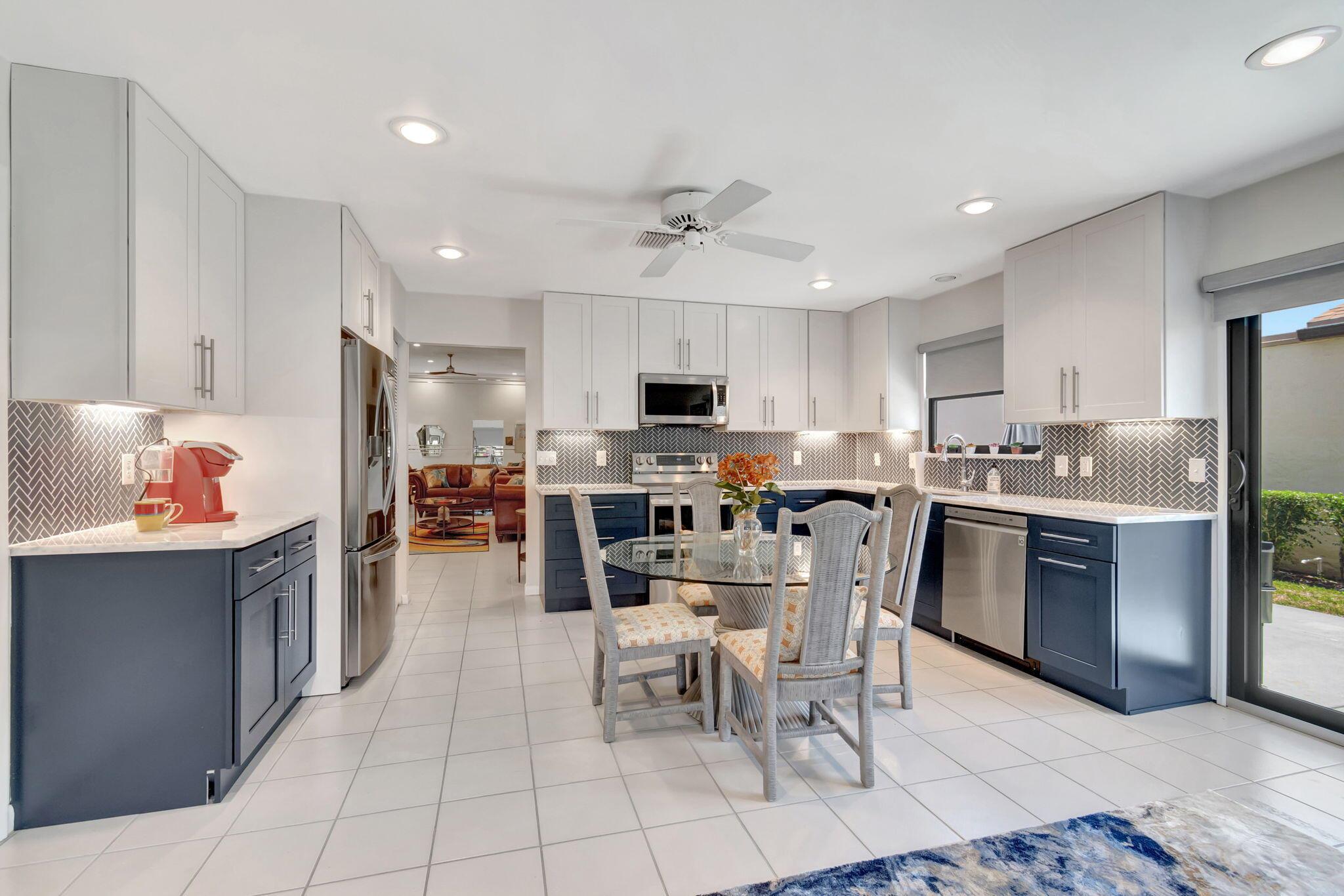 TOTALLY RENOVATED KITHEN AND BATHS. 2 BEDROOM, 2 BATH, PLUS FLORIDA ROOM. FULL IMPACT WINDOWS. INVITING FOYER OPENS TO SPACIOUS LIVING/DINING AREA, VAULTED CEILING, OPENS TO KITCHEN WITH EAT IN AREA AND FAMILY ROOM AREA, LOTS OF LIGHT AND PERFECT FOR ENTERTAINING. BOTH BATHROOMS UPDATED, PRIMARY WITH 2 COUNTERS. PRIMARY BEDROOM WITH AMPLE SIZE WALK IN CLOSET. WINDOW LINED FLORIDA ROOM FOR OFFICE/ DEN/POOL TABLE.GARAGE WITH REFRIGERATOR, STORAGE CABINETS, WASHER,DRYER, OPEN PATIO, GATE ENCLOSED. RAINBERRY BAY ADULT COMMUNITY IS A HIDDEN JEWEL DELRAY LOCATION, ENJOY GYM, WEIGHT ROOM, LIBRARY, 5 POOLS, LOTS OF ACTIVE PICKELBALL, TENNIS, BOCCE, MUCH MORE. HOA INCLUDES ROOF, ON-SITE MANAGER, HBO, WIFI, PET FRIENDLY.