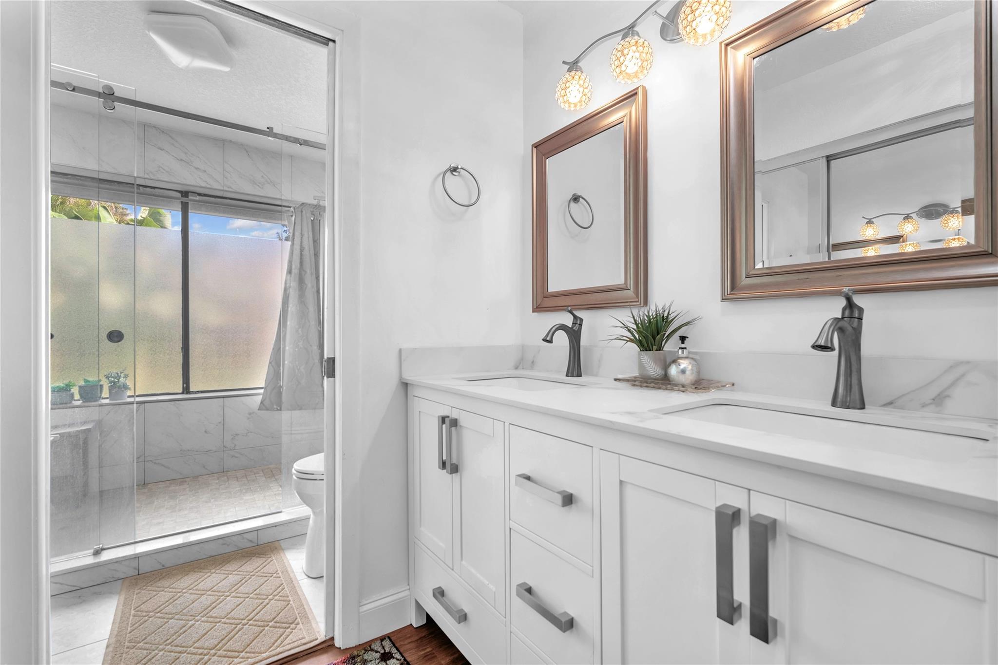 This stunning beautifully updated propety has been thoughtfully updated, blending modern finishes with timeless charm. The open floor plan offers a bright and welcoming living room space, while the renovated kitchen features sleek countertops, stylish cabinetry and new appliances. Master bedroom has been tastefully redone with elegant fixtures. Close to major roads, shops, entertainment, malls, schools, and minutes away fom the beaches. Perfect for comfortable living and entertaining, all that's left to do is turn the key and make it yours.