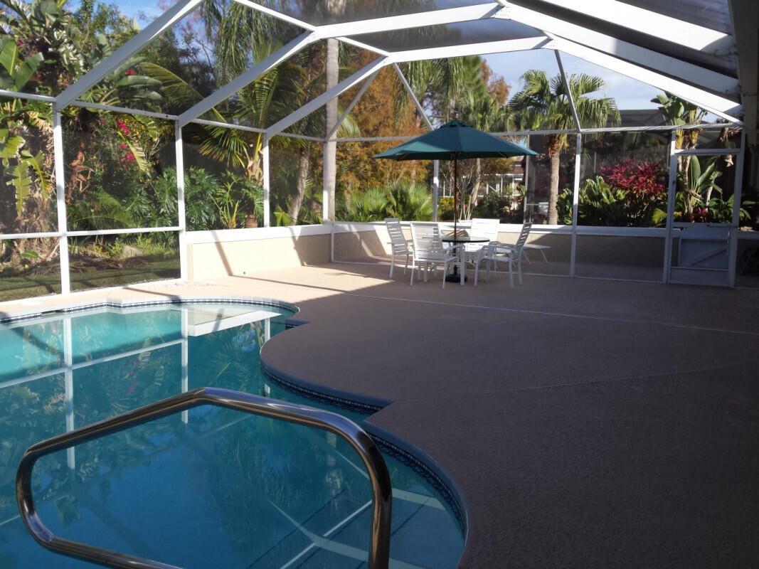 Located in the gated Community of Heatherwood . New barrel tile Roof in 2022. Recent New Air Conditioning unit - Great room open floorplan with vaulted ceilings. Split bedroom floorplan -2 bedrooms each with ensuite and walk in closets . Additional room suitable for use as small bedroom /nursery/den or office . All white kitchen with stainless appliances and granite countertops .Large Florida room with vinyl sliders. Laundry with sink/toilet -2 car garage. In ground pool with screened lanai enclosure and with large pool deck and additional patio area . Outdoor shower. Well maintained. Will consider selling turnkey with all furnishings if desired.