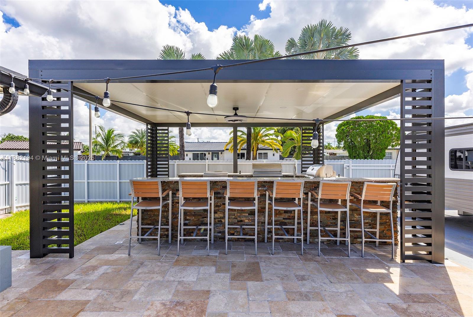 This beautifully updated home sits on an expansive 8,000+ sq. ft. corner lot in the coveted Village Green neighborhood. Featuring a new roof, impact windows & doors, and a fully upgraded electrical panel, this property ensures lasting quality and security. Inside, enjoy a gourmet kitchen with quartz countertops, solid wood cabinets, and a wet bar with dual beverage fridges. The home is equipped with smart technology, including a Nest thermostat, smart locks, Ring security system with facial recognition cameras, and a whole-house gas backup generator. With recessed LED lighting throughout and a split floor plan for added privacy, this home offers both luxury and peace of mind. Move-in ready and designed for modern living.