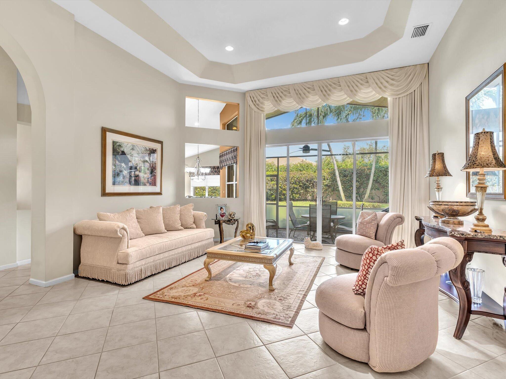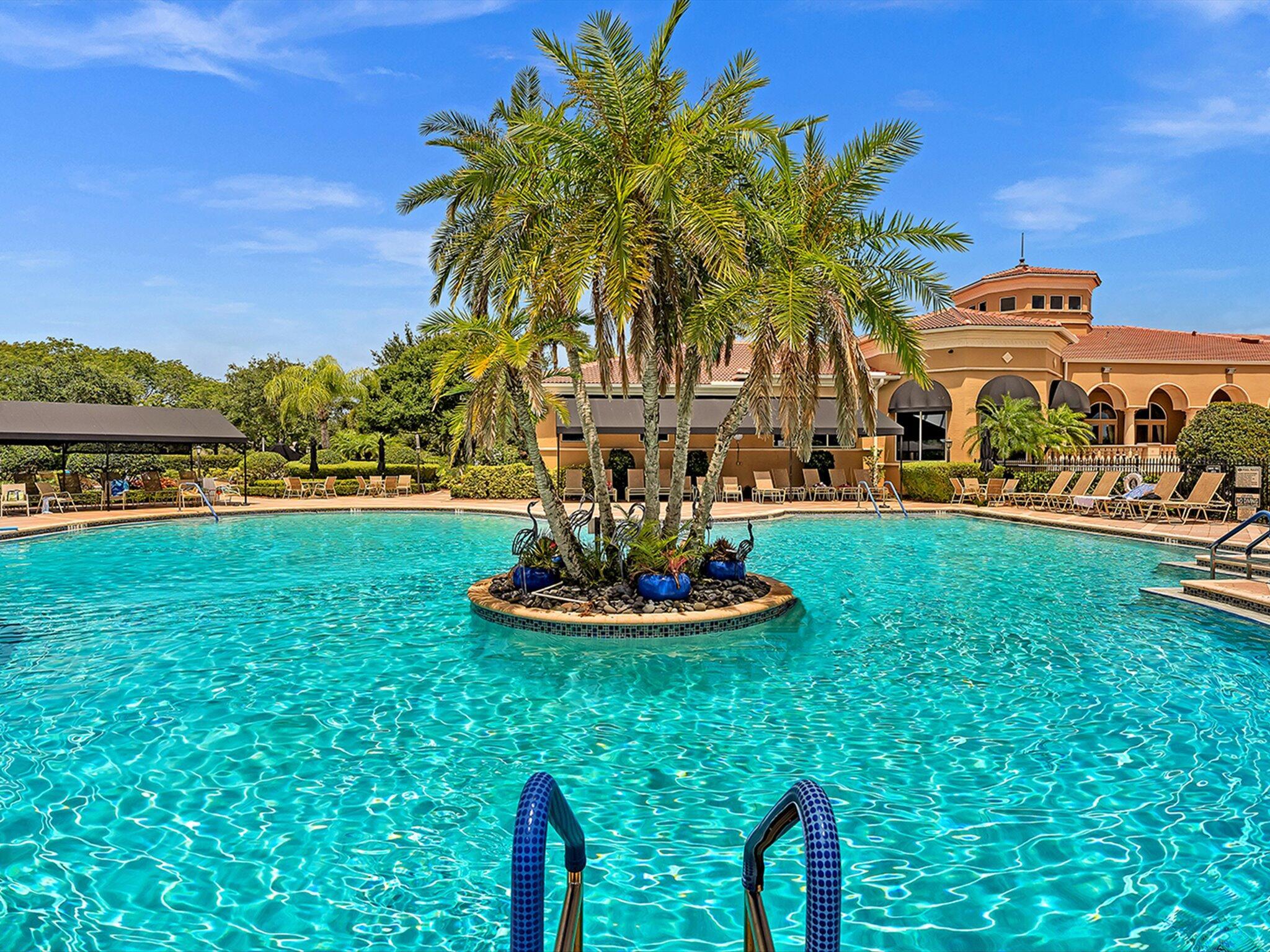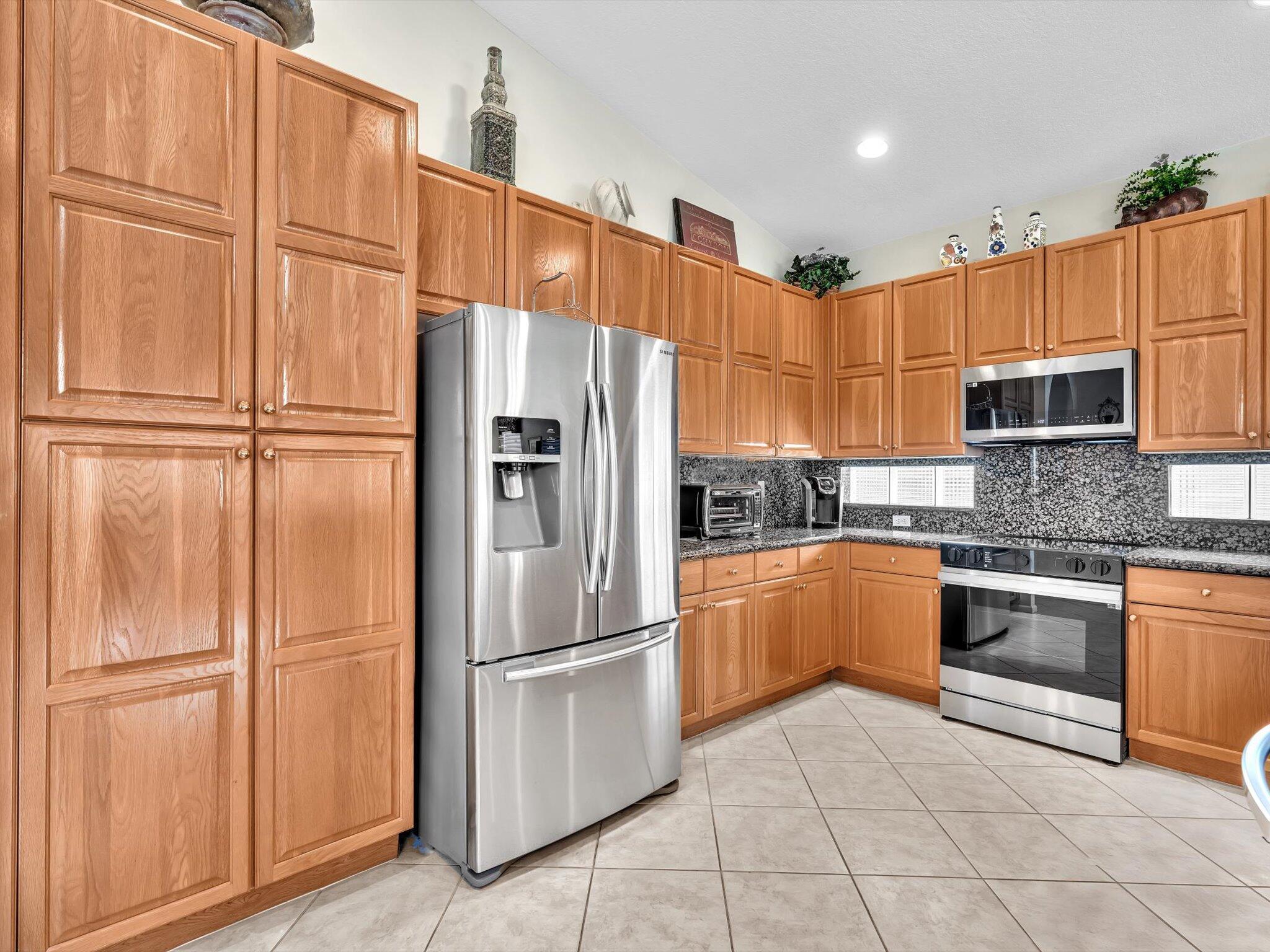 Situated on one of Valencia Lakes private, perimeter lots with no rear neighbors, the expansive ''Madrid'' model boasts a split floor plan and 2,629 sq ft of luxurious living with 4-bedrooms, 2-full baths & 1-half bath. A screened & covered Lanai facilitates outdoor living 12-months per year. The spacious primary suite features 2 walk-in closets and a bathroom with dual vanities, soaking tub and separate shower. Some of the many features include a chefs kitchen with wood cabinetry, granite countertops & backsplashes and an updated Samsung Stainless appliance package. Neutral ceramic tile (installed diagonally) in all main living areas with beautiful laminate-wood flooring in the primary suite & Den/Office/4th Bedroom. A.C. 2020, Water Heater 2021. Complete accordion storm protection!