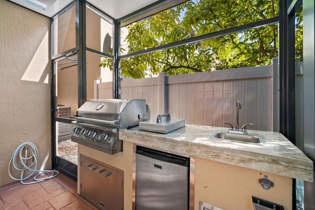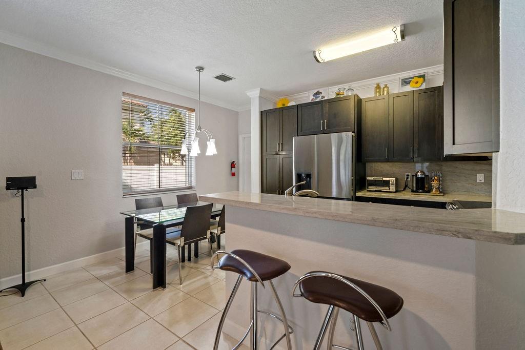 A beautiful and very spacious 3 bedrooms 2.5 bathrooms townhouse in the prestigious gated community of Nautica at the heart of Miramar. This home features stylish vinyl and tile floors, a spacious living room, dining room, and family room, high ceilings with natural light, and a 2-car garage. The primary bedroom is a private retreat with tray ceilings, walk-in closets, and an ensuite bathroom with dual vanities. The property also includes a private, fenced-in yard with a deluxe BBQ grill island. Enjoy the uniquely designed electronic open-and-close screened patio, perfect for indoor or outdoor living. Property is within walking distance of excellent schools. Prime location near I-75 with easy access to FTL and Miami airports. This home combines comfort, style, and an unbeatable location.