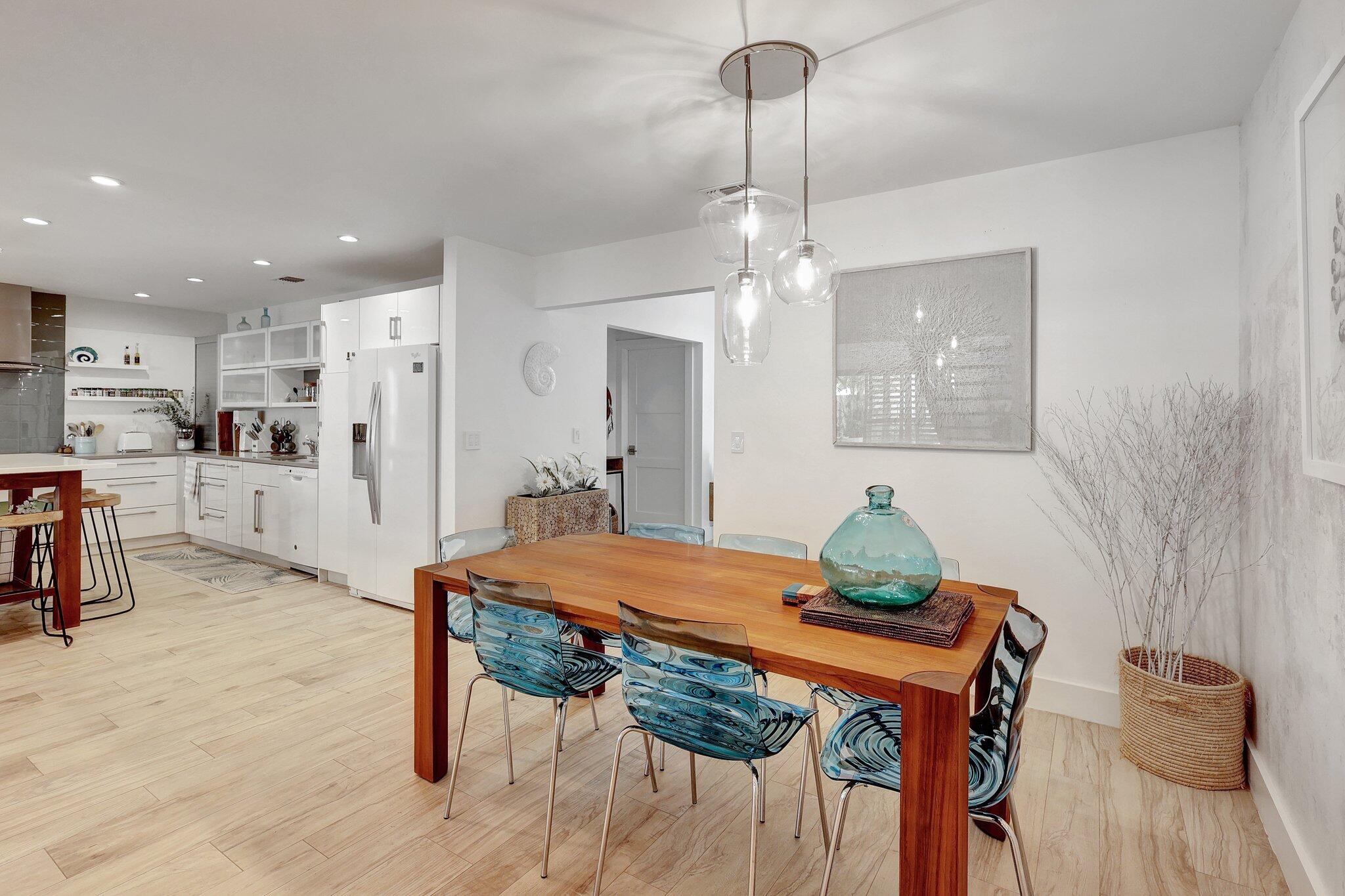 Discover the gated seaside community of Xanadu by the Sea. This move-in ready single-family home offers 3 bedrooms, 2 baths, a bonus loft, and a 2-car garage. The open-concept design showcases soaring cypress-clad ceilings, plantation shutters, and wood-look porcelain tile and laminate flooring. The bright kitchen features a center island, quartz countertops, and plenty of storage. The primary suite includes a newly renovated modern bath, while impact windows/doors and a 2023 aluminum metal roof provide peace of mind. Additional highlights include two newer tankless water heaters, high-efficiency AC, and lush tropical landscaping. Relax on the shaded patio with cedar ceiling or stroll via the private walkway to Carlin Park, beaches, jogging trails, tennis, pickleball, and nearby dining.