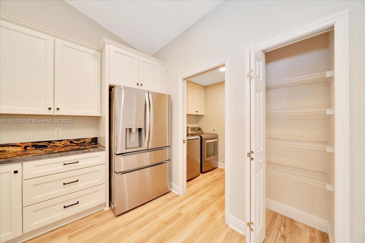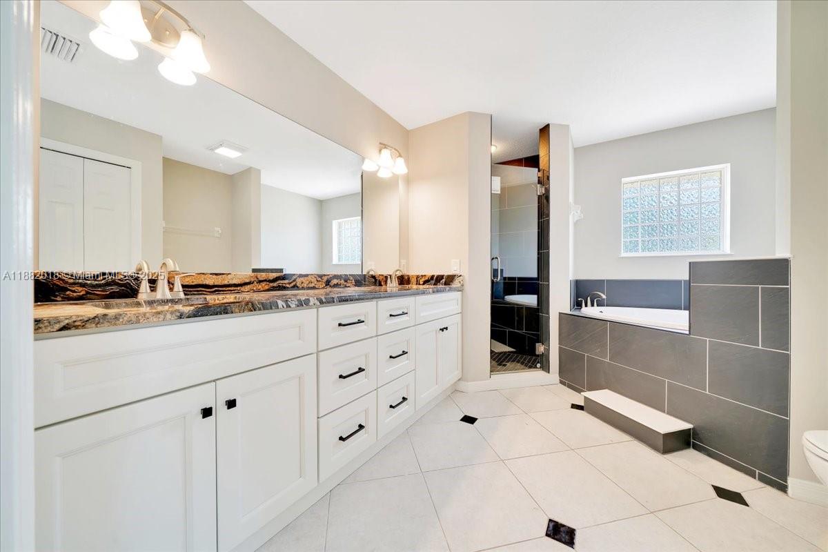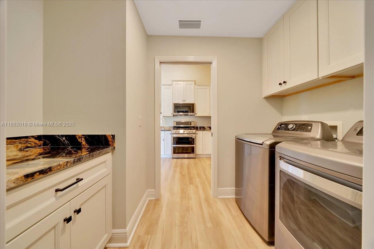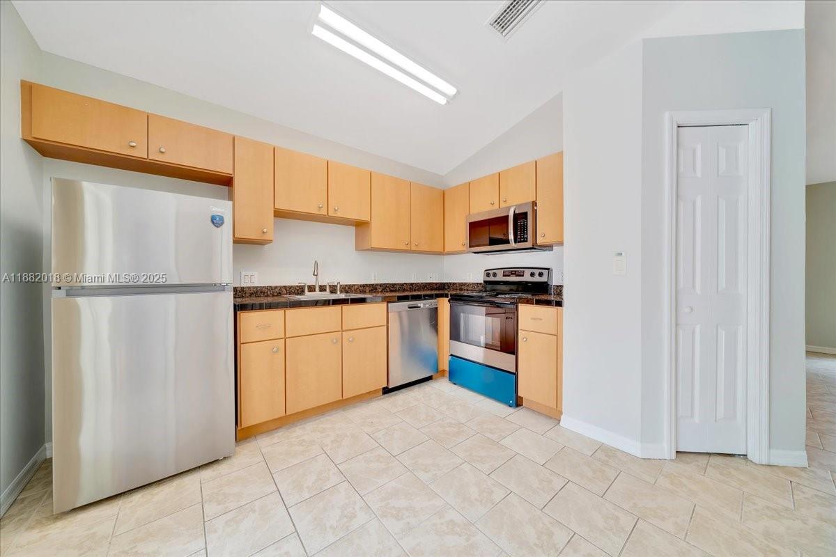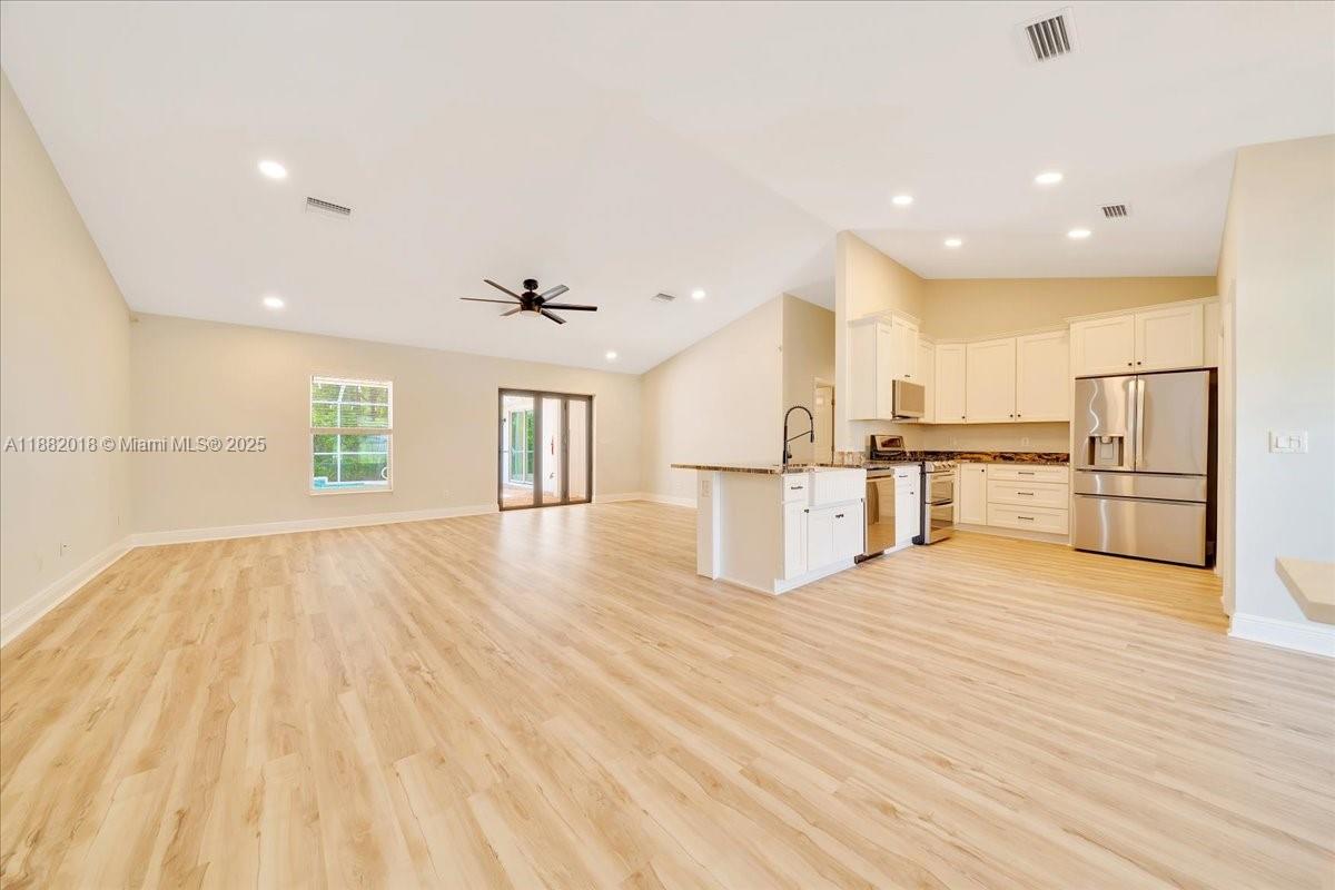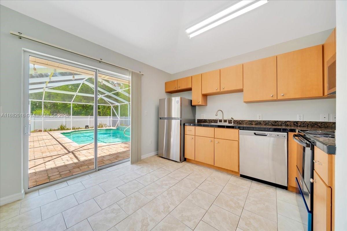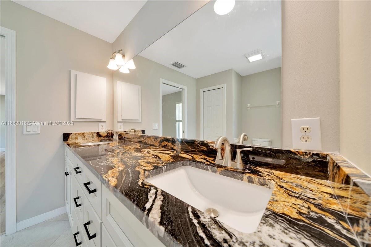 Originally built in 2003 by Murphy Kaufman, this 4-bed, 3-bath pool home with private in-law suite has been fully renovated in 2024–25. The entry was opened to create a spacious flow between kitchen and great room, with new Shaw luxury vinyl plank flooring throughout. The kitchen features solid wood cabinets, quartz countertops, farmhouse sink, LG stainless appliances, gas cooktop, and restructured island. The master suite offers pool access and a spa-like bath with garden tub, dual-head shower, and quartz finishes. All baths are updated with modern fixtures. Other upgrades include new baseboards, paint, lighting, fans, and custom trifold glass doors leading to a refreshed pool area. The in-law suite has its own entrance, kitchen, HVAC, and full bath.