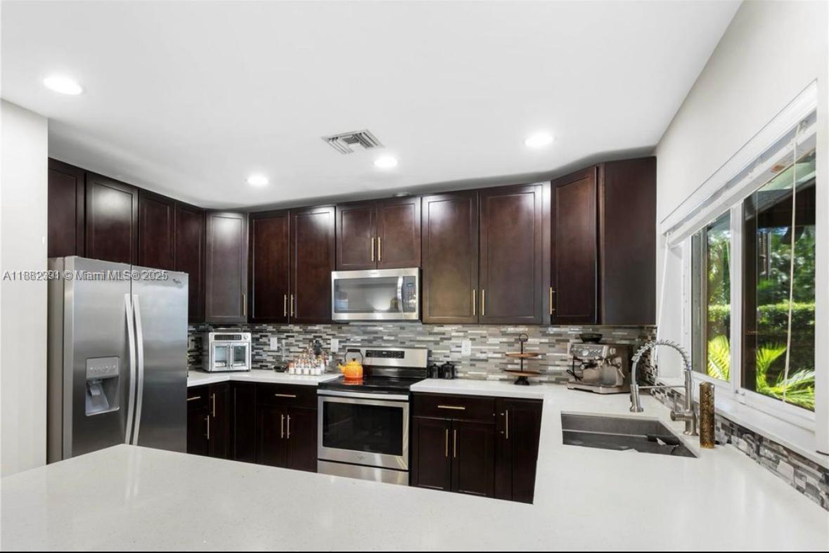 Stunning Modern Home with Outdoor Oasis! This exceptional 3-bed, 2.5-bath residence, complete with an additional den, is a meticulously crafted gem. No flips! Enjoy luxurious features like elegant porcelain tile floors and a gourmet kitchen with stainless steel appliances. The master bathroom boasts dual sinks, a towel warmer, a bidet toilet, and a rainfall shower. Hurricane impact windows and doors enhance safety, while the entertainer's dream outdoor space features a motorized pergola, mood lighting, and a heated saltwater pool with a relaxing spa. Located in the desirable Tresulee Subdivision, just minutes from all that Miami has to offer! Don’t miss this unique opportunity to own a piece of paradise!