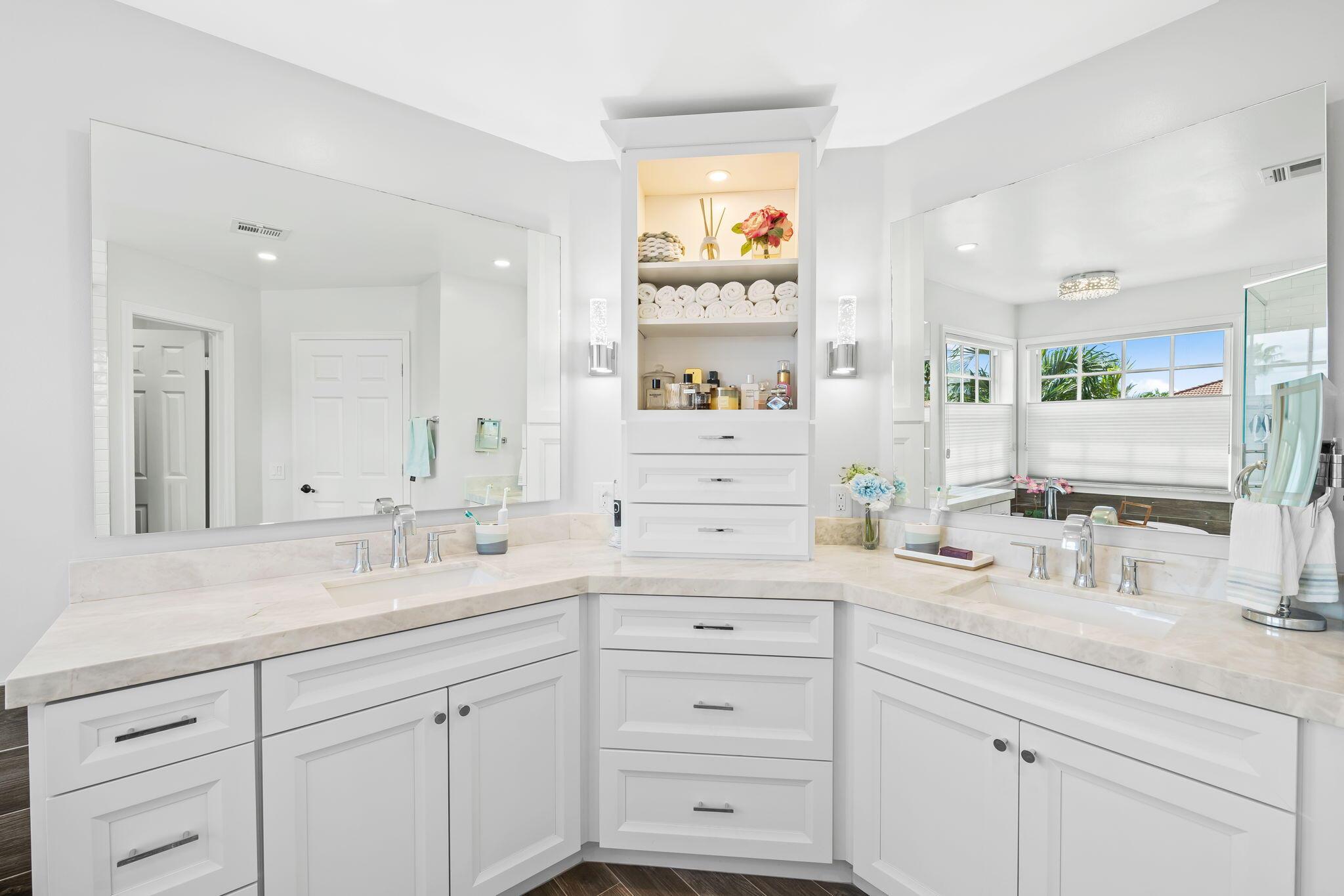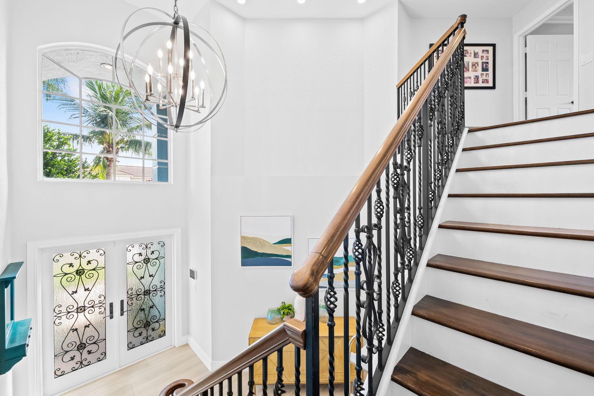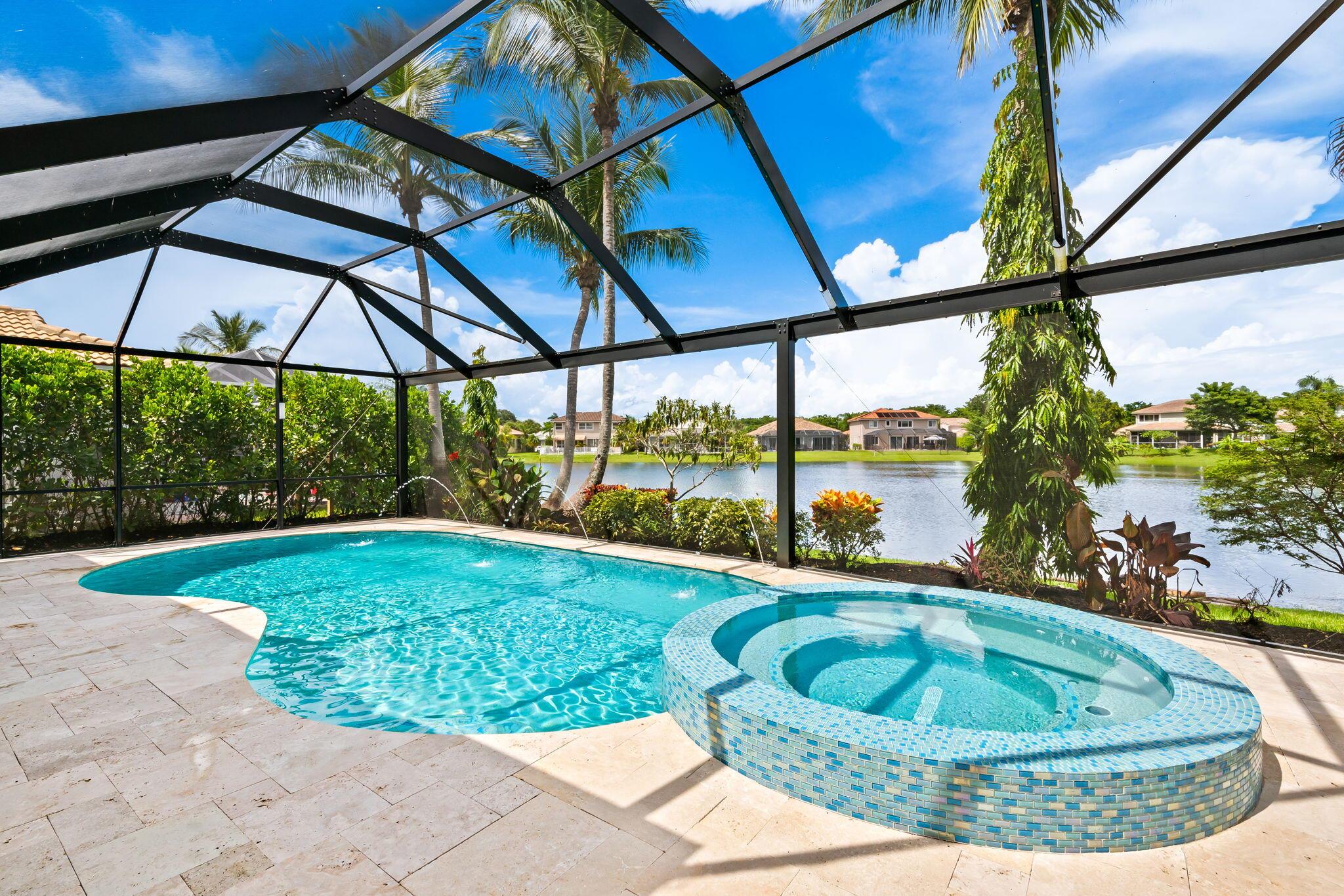 This beautifully renovated home in the desirable Waterways at Boca Winds community offers 4 spacious bedrooms, 2.5 bathrooms, and a 3-car garage on a beautiful lake view lot. Thoughtfully upgraded with wood look tile floors in the main floor living areas and engineered wood floors on the stiars and second floor. Renovated chef's kitchen equipped with Bosch & KitchenAid appliances. Enjoy Martin Logan in-wall theater speakersThe backyard is an entertainer's dream, designed for year-round Florida living. Enjoy a Pebbletec-refinished heated saltwater pool (2025) with Jandy variable drive pump and iAqualink automation, a travertine pool deck, hurricane-rated screen enclosure with LED lighting, and a covered patio with cedar ceiling & outdoor TV wall, summer kitchen and fans. Click for info