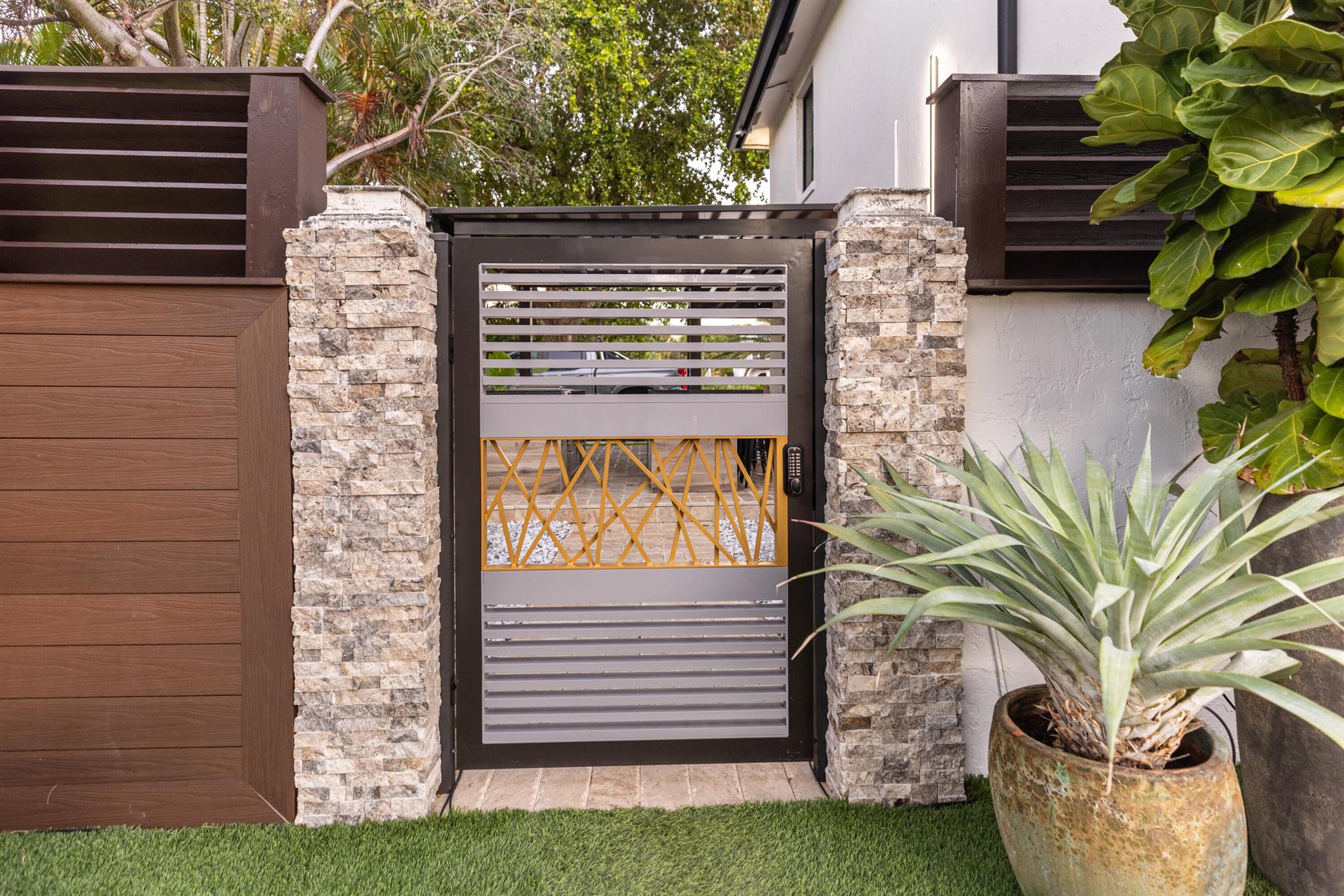 Magnificent Luxury, walk to Mizner! Pull up on the circular driveway with 7 parking spots to pure modern elegance in every thoughtfully updated detail. Meticulously landscaped with a custom aluminum portico, matching coded entry gates and wrap-around details.Inside find Ton-sur-ton wall tiles, custom stucco, and Wood Tile Flooring. Custom closets & solid wood doors throughout. The open kitchen stuns with a large Brazilian Granite island flanked with a Claro Walnut Slab for entertaining, Turkish Stone Pendants, Bosch appliances, Smart home, a comprehensive security system, Sonos sound. Offered furnished with superb BAER and Arhaus Furnishings, stately antique vases from Malta, custom aluminium outdoor furnishings and too many more upgrades to list! The ultimate must see! No HO