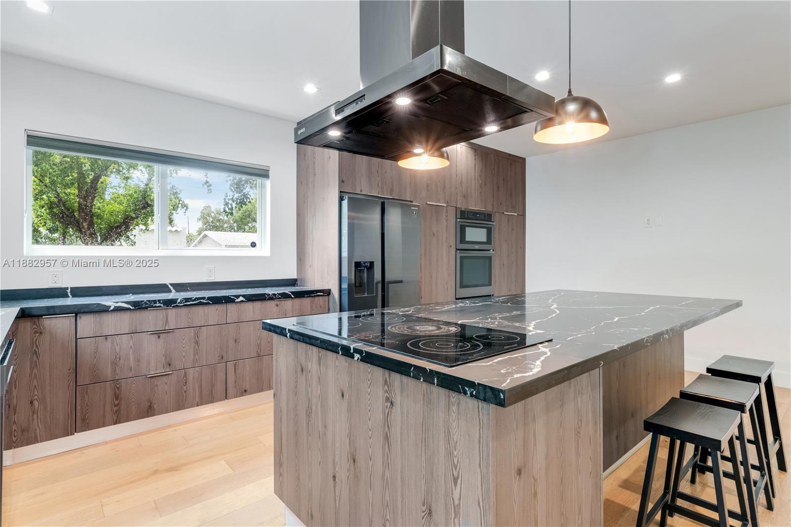This beautifully updated 3-bedroom, 3-bathroom home with a den offers 2,214 sq. ft. of modern living space. Recent upgrades include a new roof, new flooring throughout, impact windows and doors, and high-end finishes. The kitchen features premium stainless steel appliances and black quartz countertops, while the spacious master suite includes a walk-in closet and glass shower doors. The third bedroom has a separate entrance, ideal for guests or Airbnb income. Enjoy a private backyard and a location just east of I-95, minutes from Wynwood, the Design District, and Midtown. Easy to show and move-in ready!