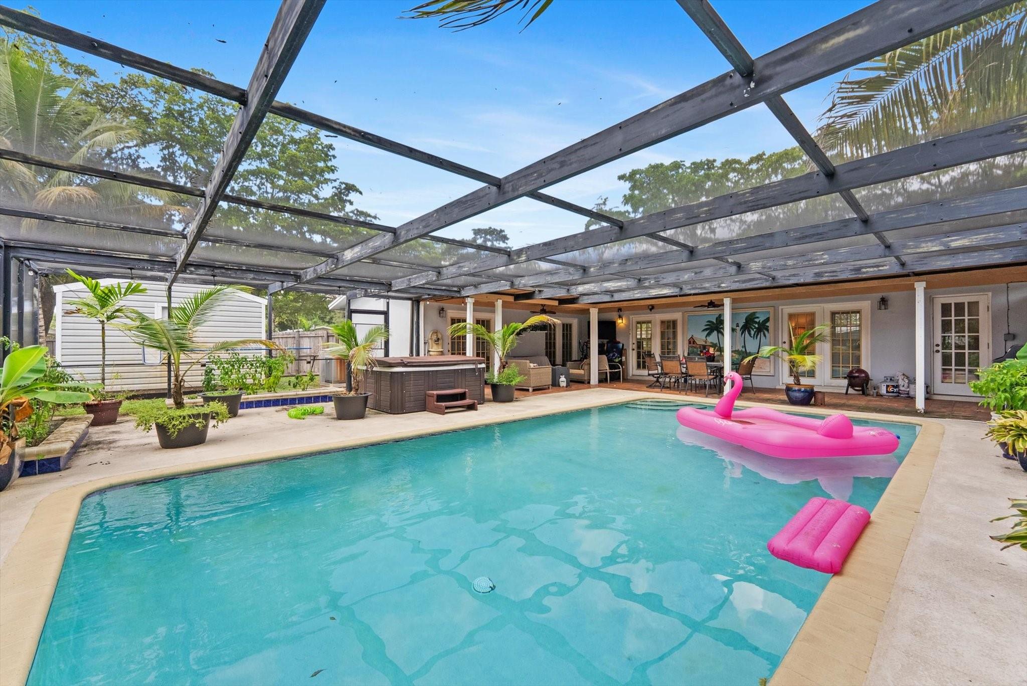 Welcome to this 3-bedroom, 2-bathroom pool home in the heart of Plantation! The Primary bedroom has a fully remolded bathroom and a walk-in closet. This inviting residence features spacious living areas, a cozy brick fireplace, and a relaxing screened-in pool with a hot tub—perfect for enjoying the Florida lifestyle year-round. The extra-large driveway and carport provide ample parking, and there is additional room for a large boat or RV behind the double gate. Nestled in a tranquil, established neighborhood with no HOA, this property offers both comfort and convenience. Ideally located near top restaurants, shopping, and entertainment, with easy access to Fort Lauderdale Airport, major highways, beautiful beaches, Broward Mall, and Sawgrass Mills Mall.