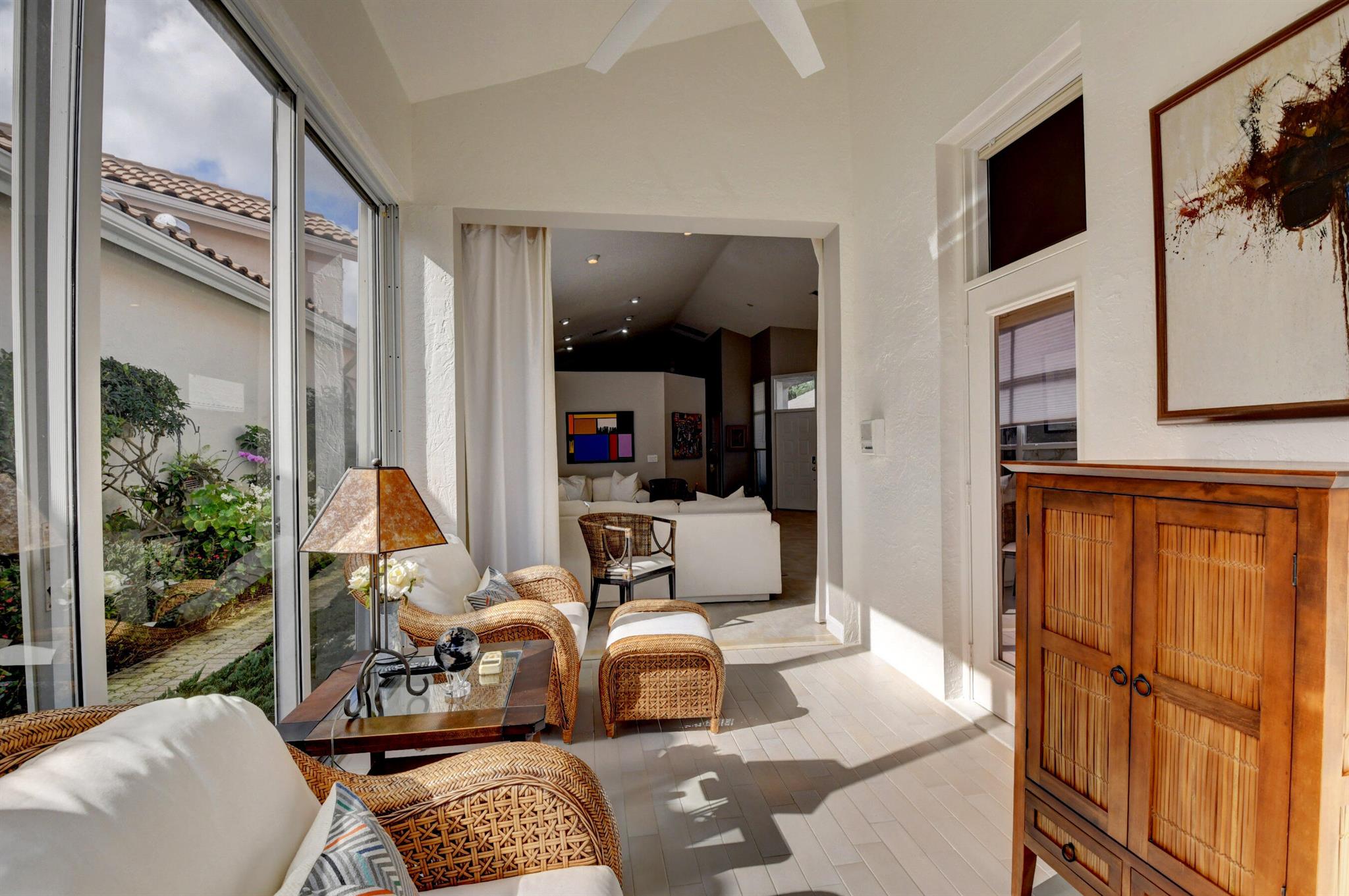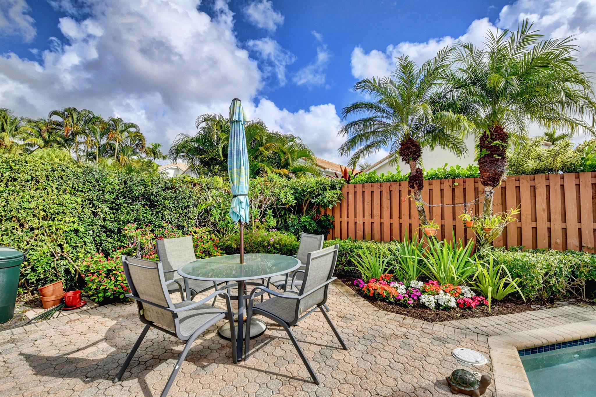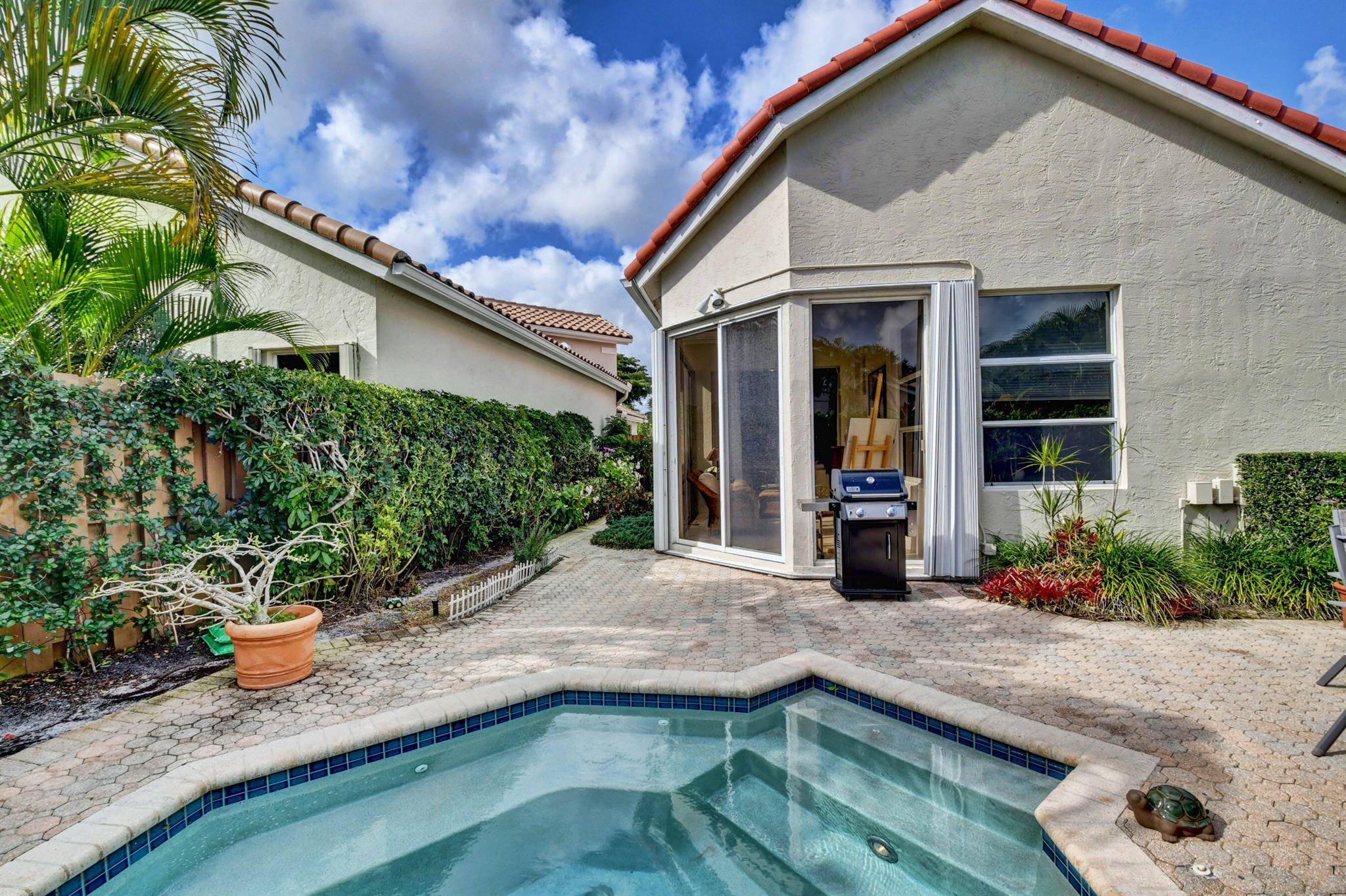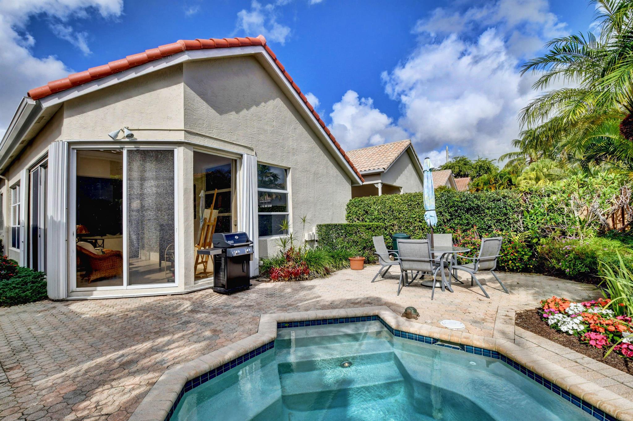 Lovely 2 bedroom available in Banyans at Broken Sound. Home is meticulously maintained with a private fenced yard with spa and tons of room for gardening. Large bedrooms with walk in closets. Updated bathroom vanities. No carpet! Tons of natural light flood this charming one story home with Florida room.
