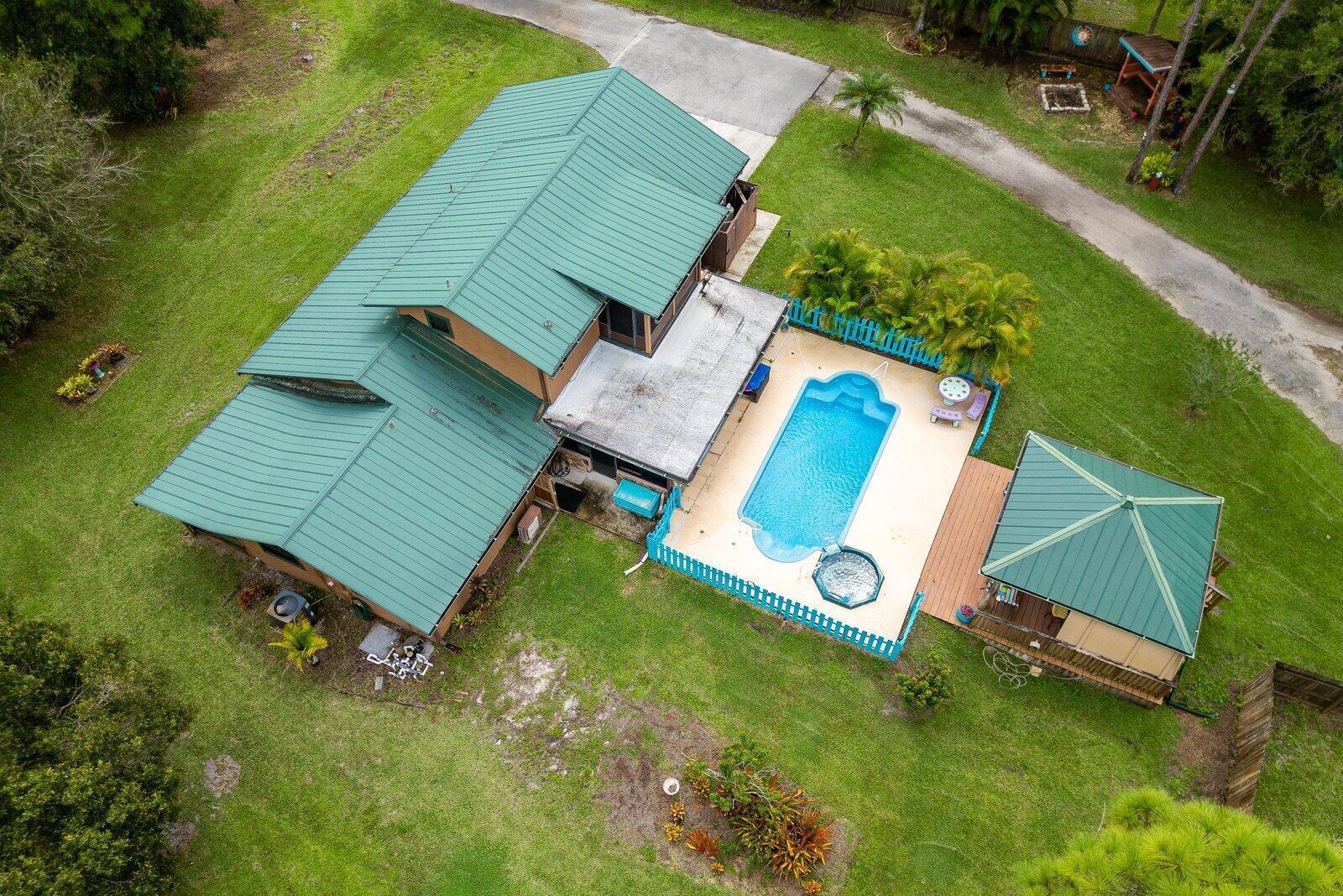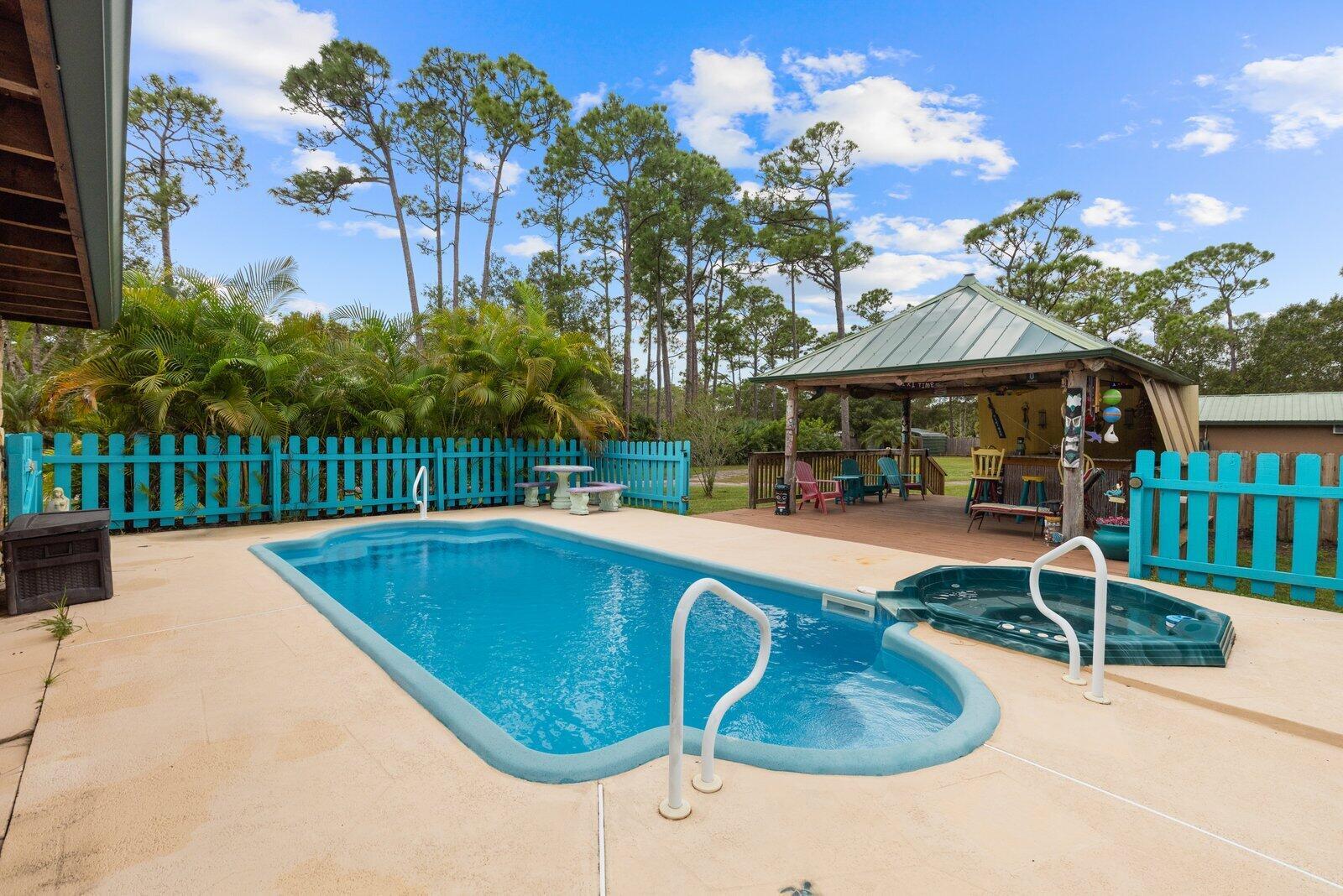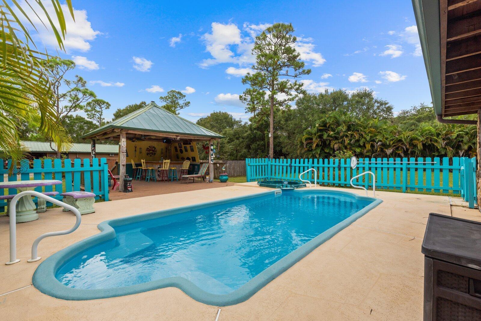 Discover peace and privacy at this beautifully maintained 3 bedroom, 2 bath home set on over 2 acres. This is the perfect home for relaxation and entertaining, with tons of natural light, storage space and country charm! Step outside to your private pond with an arched walkway bridge. Entertain poolside under your own Tiki bar! As an added bonus, there is a CBS dog kennel equipped with water and power, that can easily be converted into a guest home. The possibilities are endless, come make this beautiful home your own!