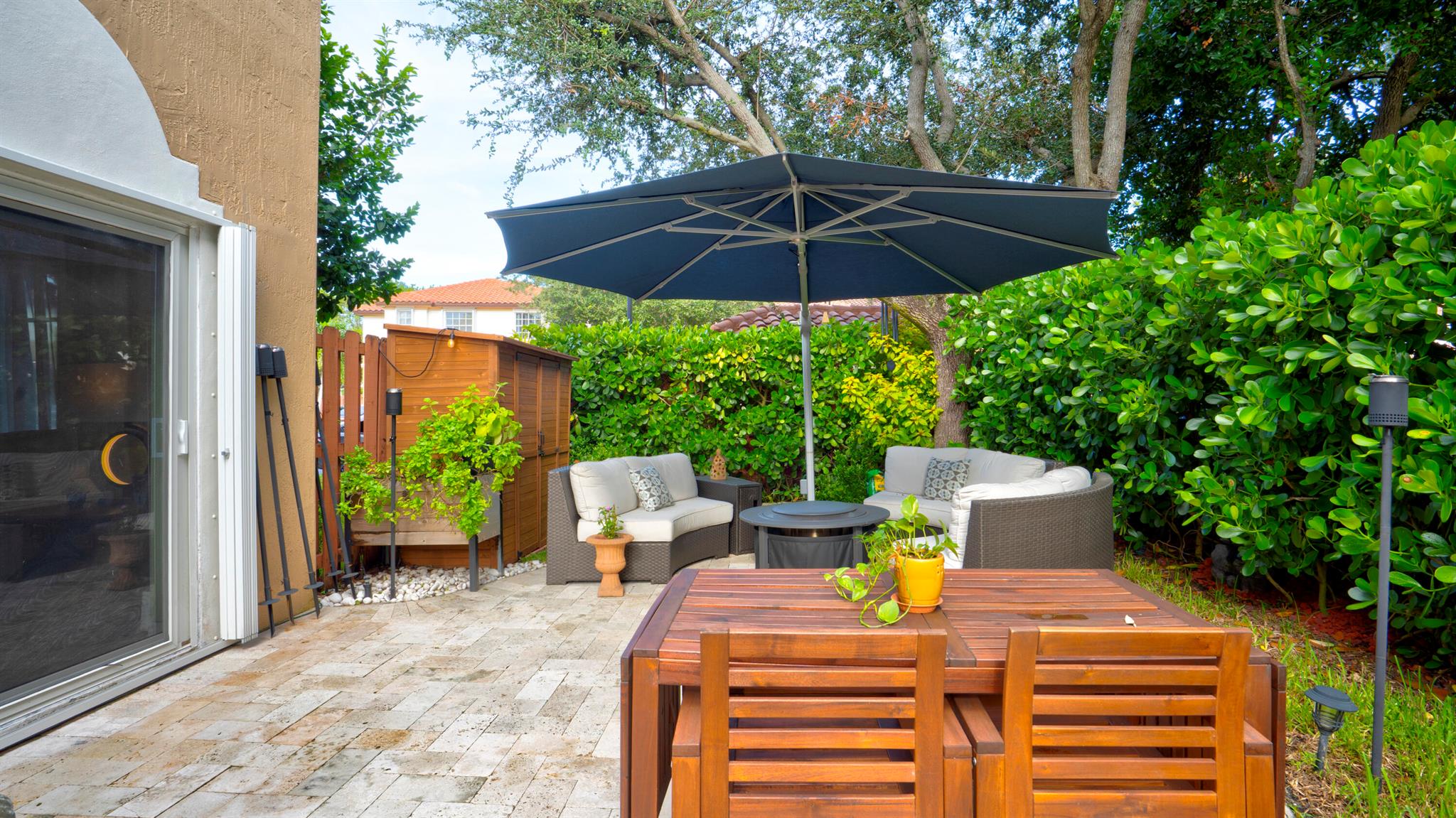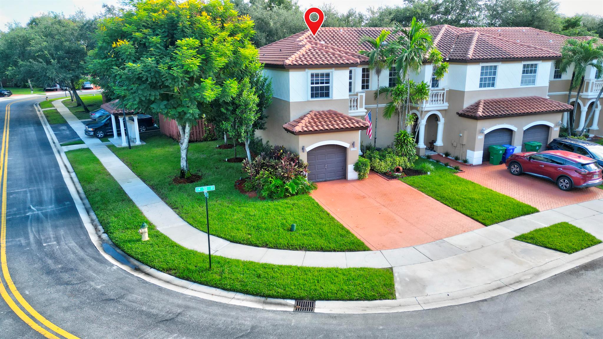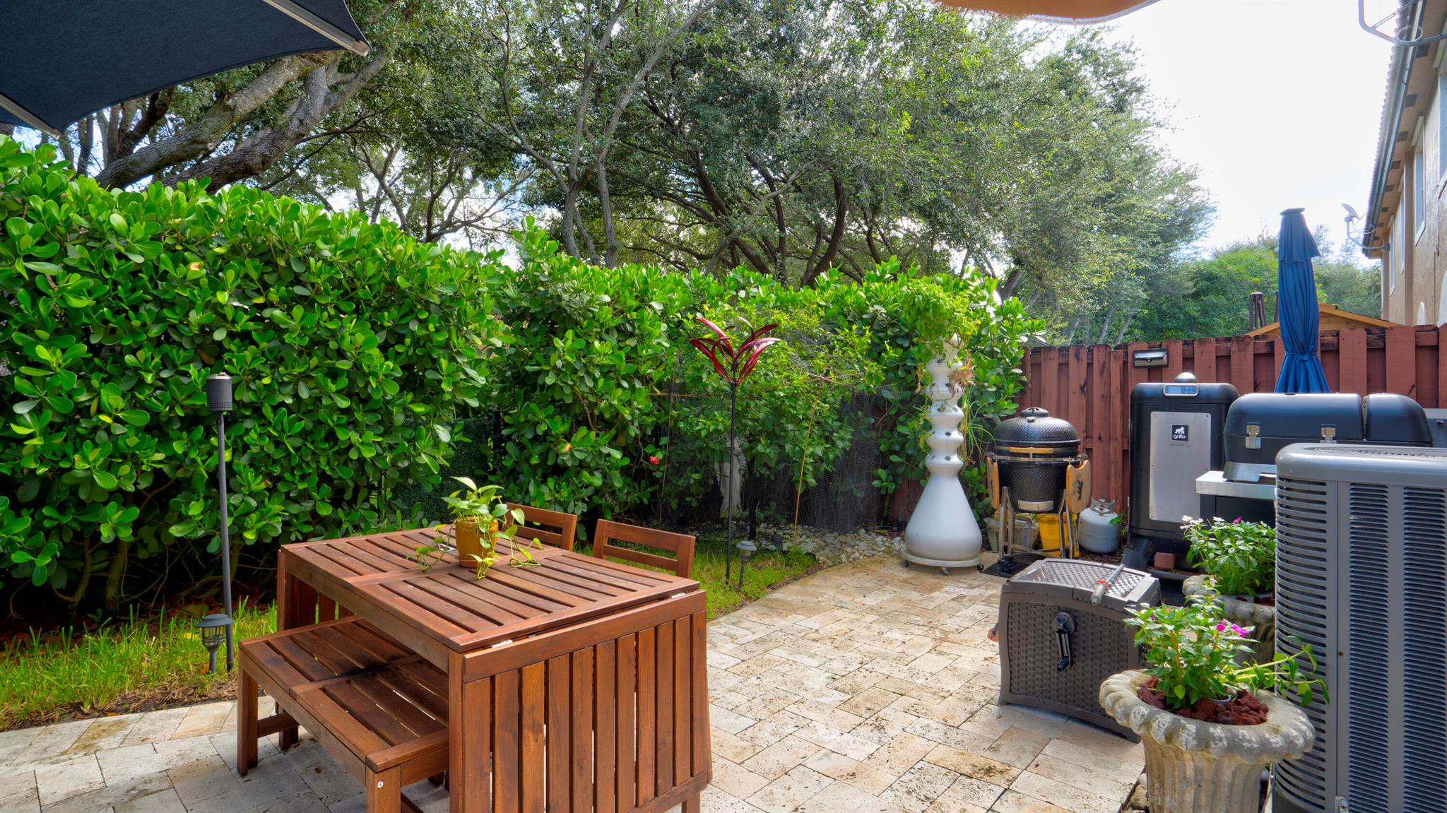 Beautiful corner-lot home featuring soaring ceilings, tray-ceiling dining, and master suite with garden tub. Kitchen boasts granite counters, remodeled cabinetry, SS appliances including new fridge, plus washer/dryer combo. Baths upgraded with quartz, cabinets, and new toilets. Modern touches include new laminate floors, stamped driveway, window treatments, and smart home features: Ecobee thermostat, Ring doorbell, outdoor cameras. Built for efficiency with impact windows/doors, accordion shutters, 2018 high-efficiency A/C under warranty, attic insulation, and full re-pipe. Backyard oasis offers travertine tile, lighting, mature Clusia hedges, and peaceful park views. Community amenities include clubhouse, fitness center, and pool. Move-in ready!