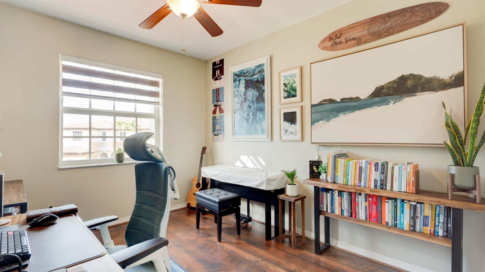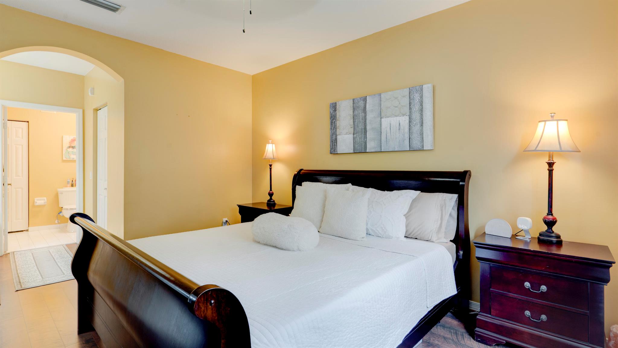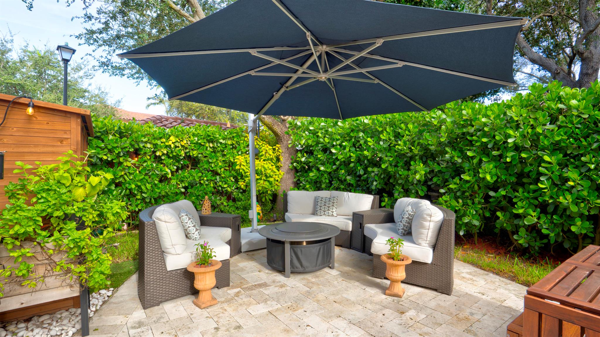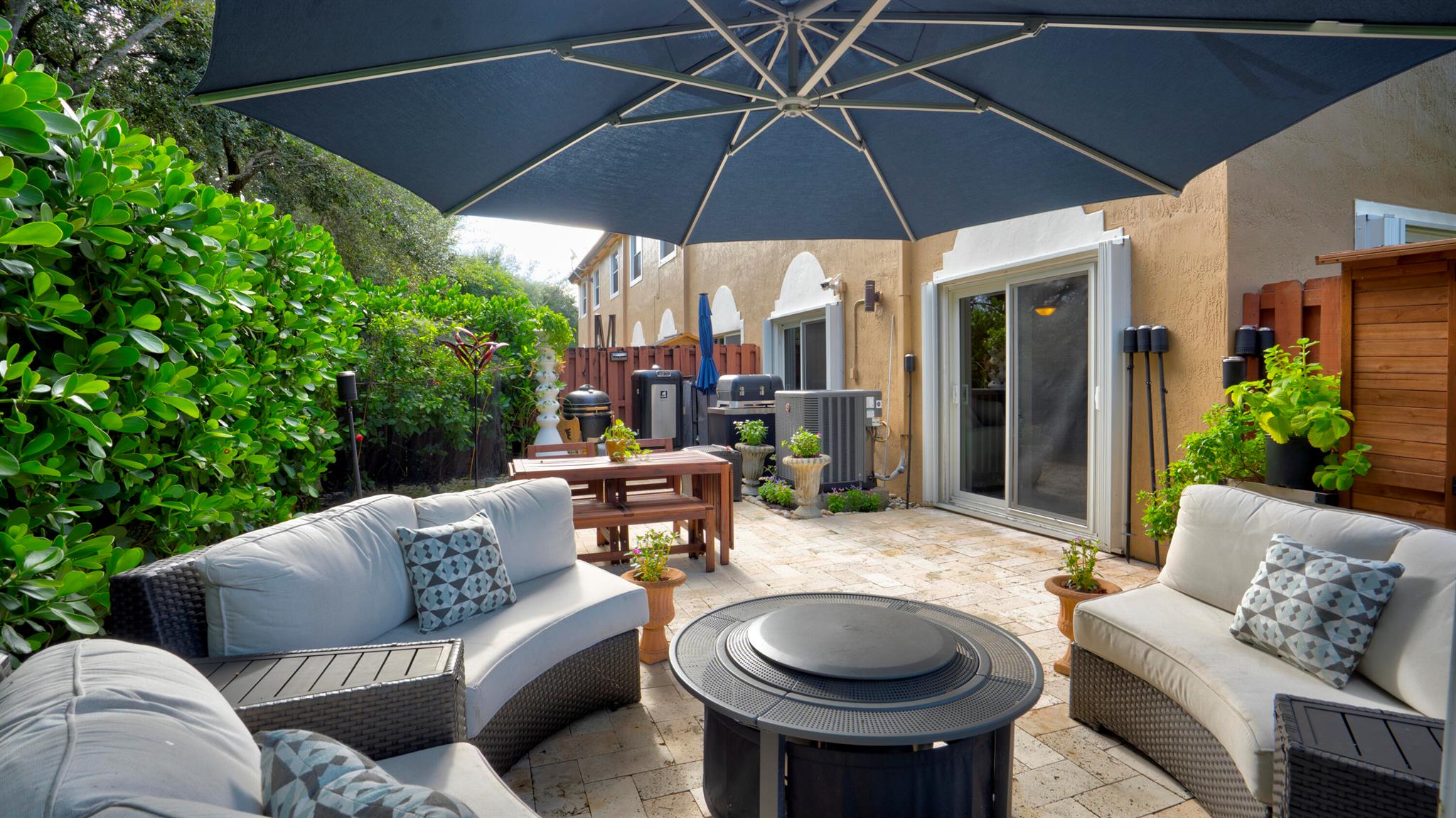 Beautiful corner-lot home featuring soaring ceilings, tray-ceiling dining, and master suite with garden tub. Kitchen boasts granite counters, remodeled cabinetry, SS appliances including new fridge, plus washer/dryer combo. Baths upgraded with quartz, cabinets, and new toilets. Modern touches include new laminate floors, stamped driveway, window treatments, and smart home features: Ecobee thermostat, Ring doorbell, outdoor cameras. Built for efficiency with impact windows/doors, accordion shutters, 2018 high-efficiency A/C under warranty, attic insulation, and full re-pipe. Backyard oasis offers travertine tile, lighting, mature Clusia hedges, and peaceful park views. Community amenities include clubhouse, fitness center, and pool. Move-in ready!