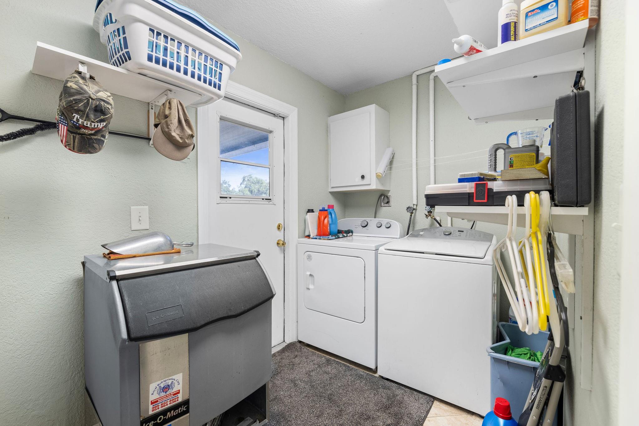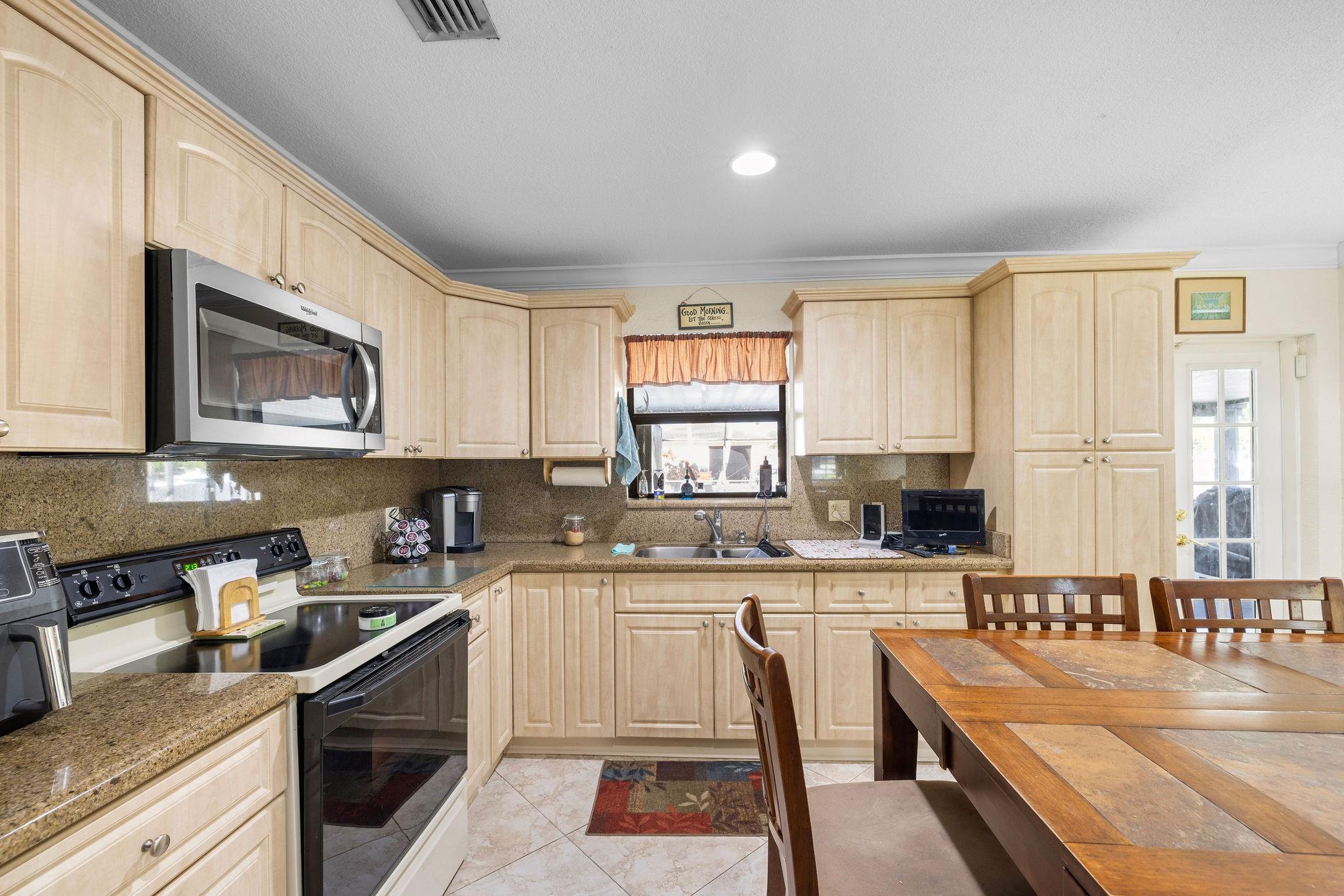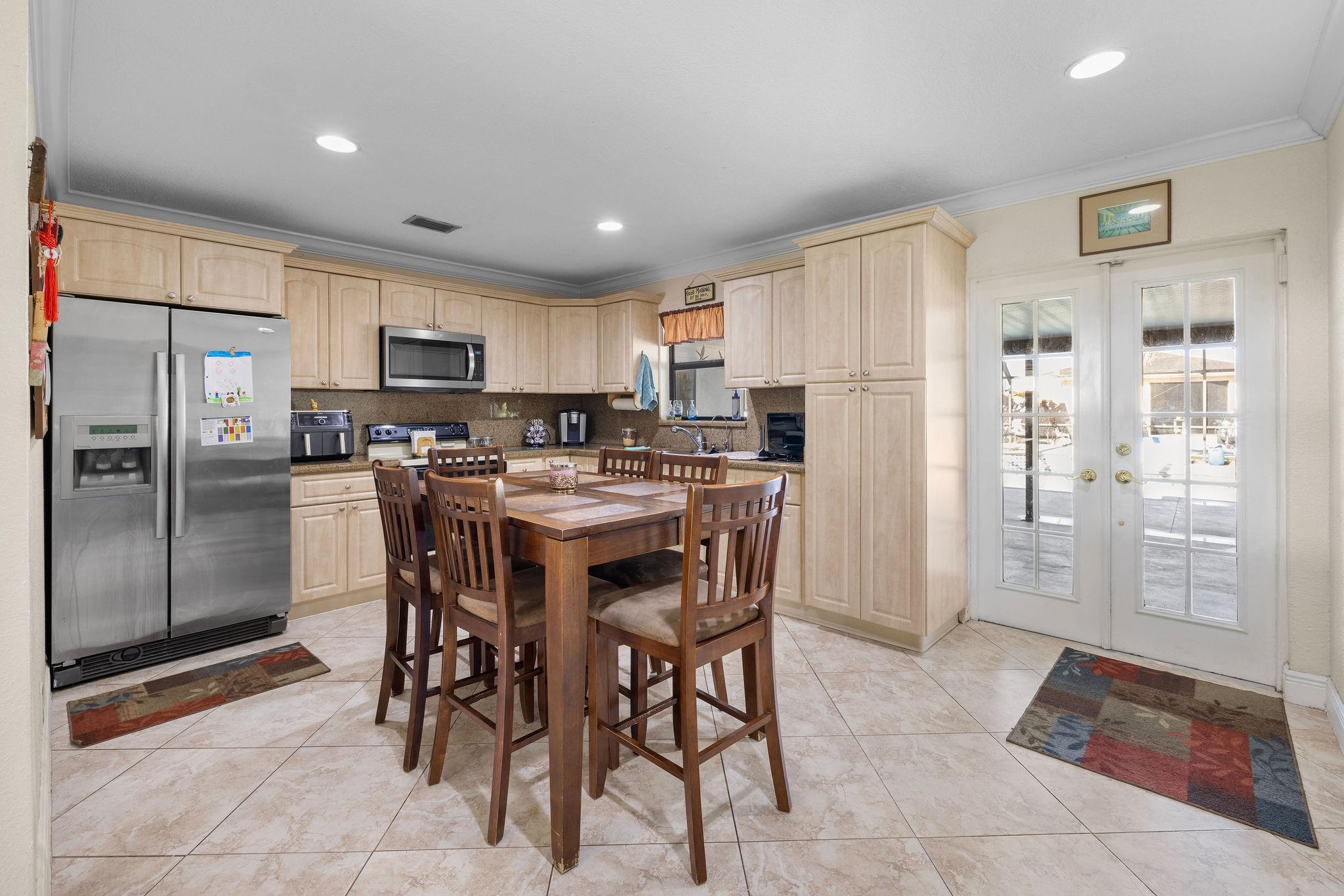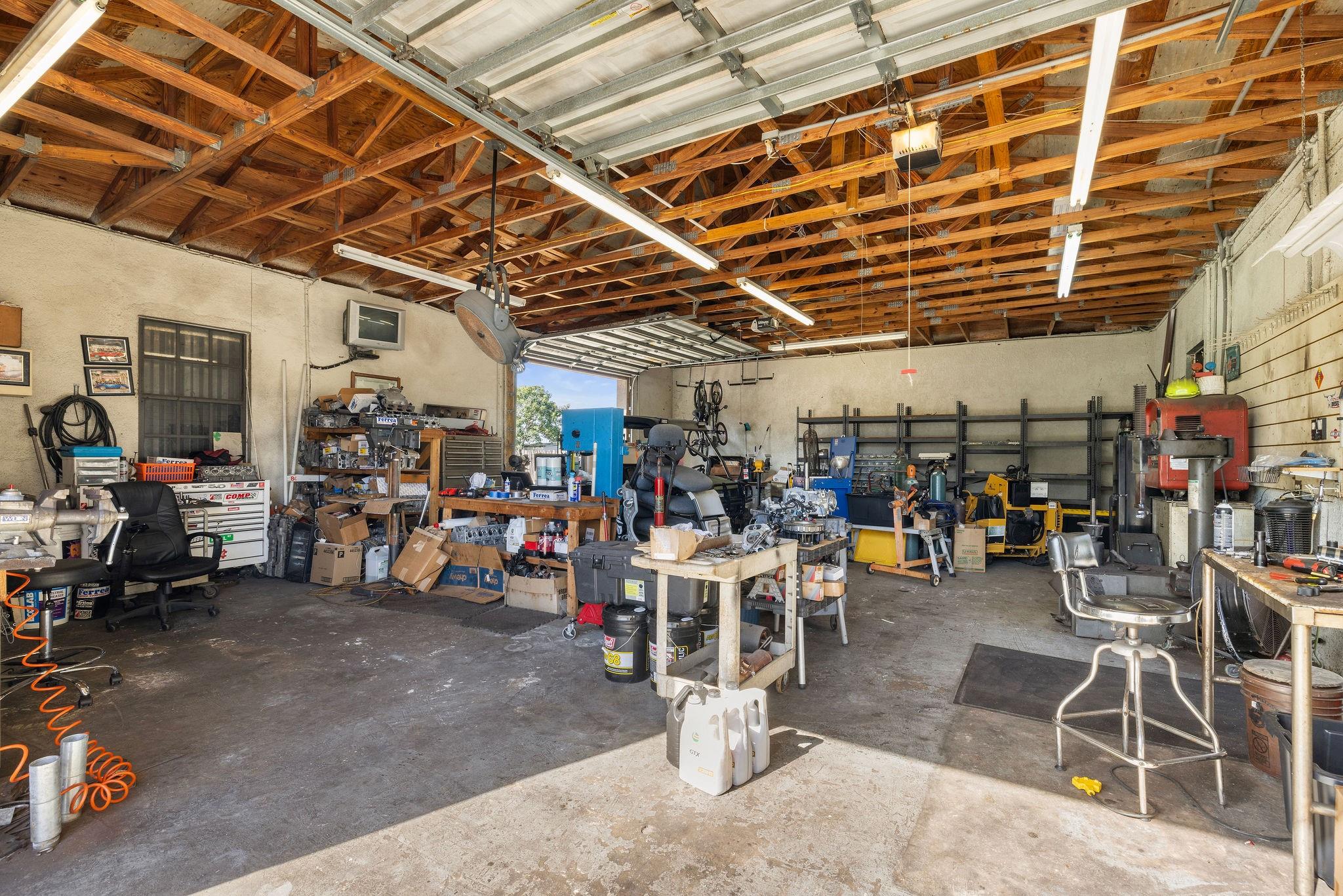 Versatile 4-bed, 3-bath residence designed for comfort and flexibility. Main home offers 3-bed, 2-bath, while the attached 1-bed, 1-bath separate living quarters include full kitchen, living area, private entrance, separate driveway, and direct pool access—ideal for multi-generational living or rental income. Energy-saving features include whole-home solar panels & a 120-gallon solar water heater, with a generator powered by a 500-gallon propane tank providing backup power for entire home. Roof installed in 2018 and a 5-ton Trane AC installed 2019. Screened-in patio, heated pool, & a sprinkler system fed by a 200-ft deep well with Goul pumps. 1,200 sq ft/6-car garage with water & electric, with a 2,500 sq ft concrete pad. Ample space for cars, projects, hobbies, or a home-based business.