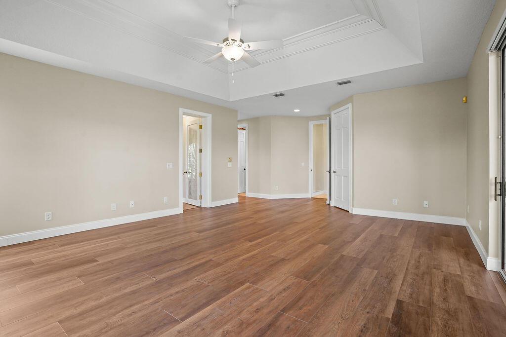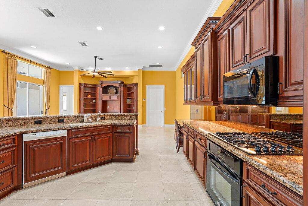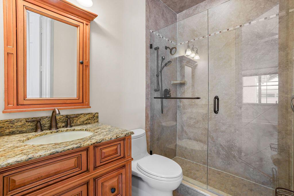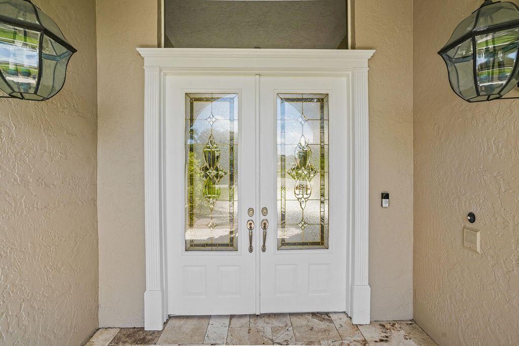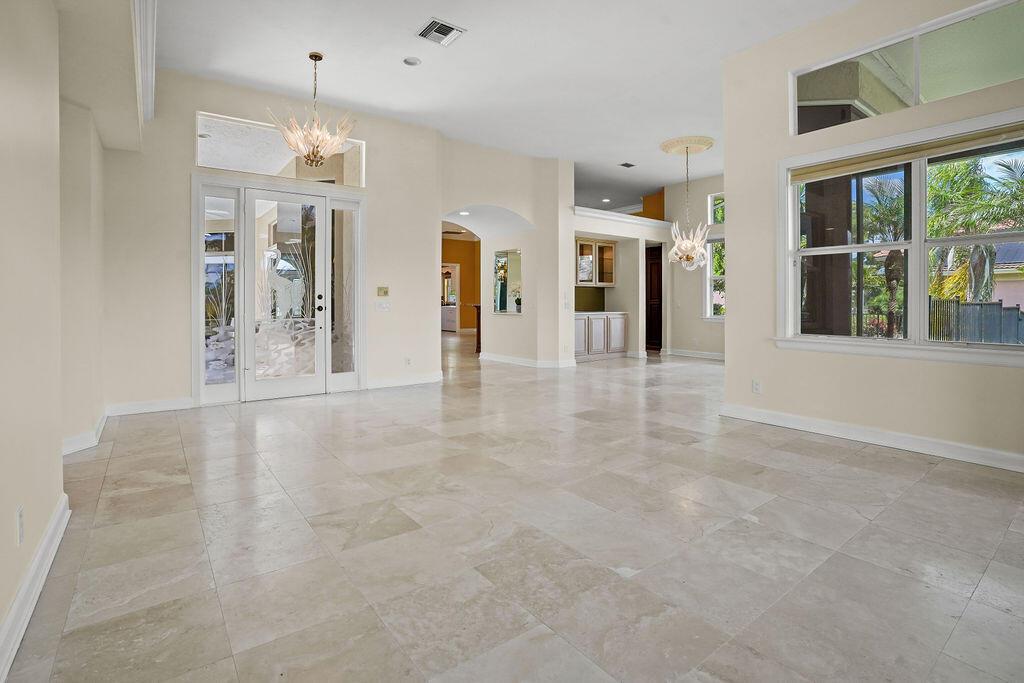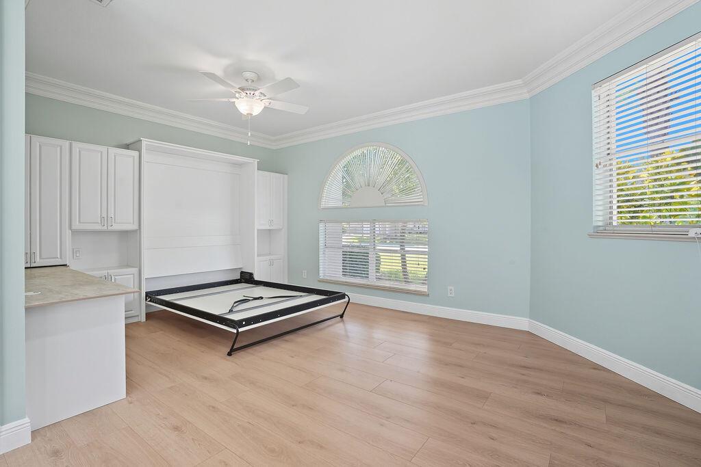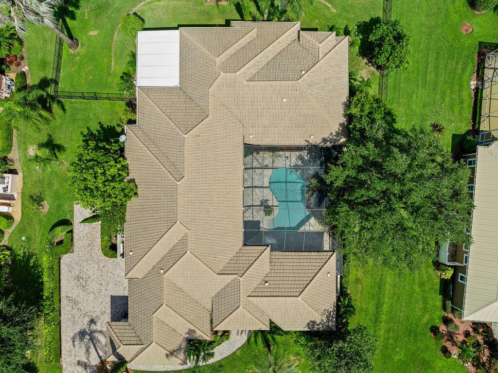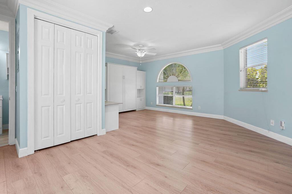 Welcome to 10255 SW Stones Throw Terrace, an exceptional residence located in the highly sought-after gated golf community of Cobblestone in Palm City. This expansive courtyard pool home is designed for both elegance and versatility, offering a 2 bedroom, 2.5 bath main house along with a fully renovated guest house featuring its own bathroom and kitchenette.At the heart of the home is a freeform heated pool with a screened enclosure, perfect for entertaining or enjoying peaceful Florida evenings. A separate screened lanai extends the living space and provides sweeping views of the 8th hole, tranquil lake, and golf course, where you can often spot native wildlife from birds to deer. Inside, the main residence boasts an expansive floor plan with volume ceilings, large butted windows allow