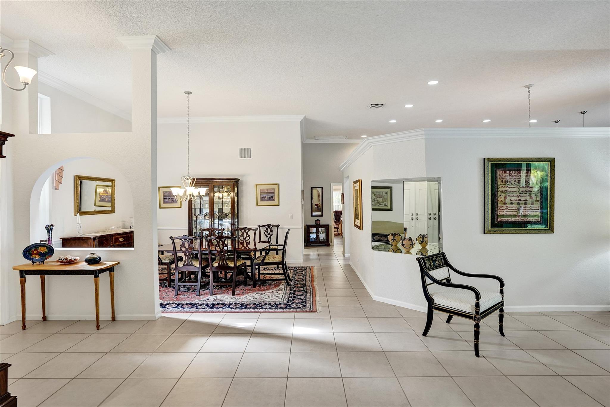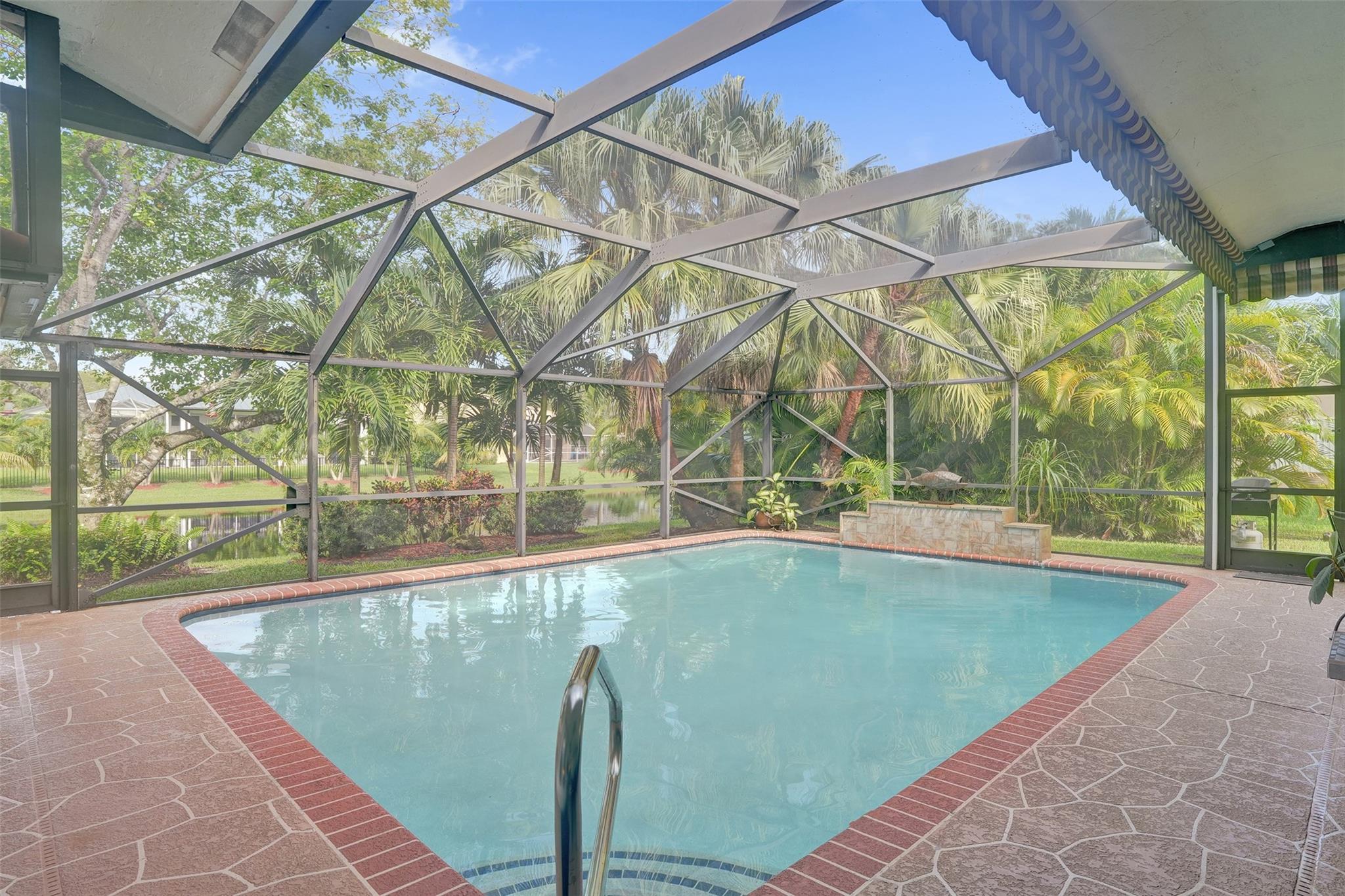 Spectacular waterfront one story 5 bedrooms, 3 baths and 3 car garage, pool home on cul-de-sac lot with very low HOA. Over $200K+ in updates, roof 2017, high end remodel baths, pool resurfaced/new heater/pump/water feature, all appliances replaced, bedrooms new beautiful neutral floors, whole house water treatment and more. A very well-maintained home features volume ceilings throughout, light and bright large eat in kitchen opens to the family room, formal dining room and living room. The triple split bedroom plan, includes an inviting large primary bedroom with views of the pool area and water, 1 bedroom can be utilized as an office with a closet. The back patio area is screened it with a peaceful waterfall and large pool and overlooking the water for beautiful Florida sunsets.