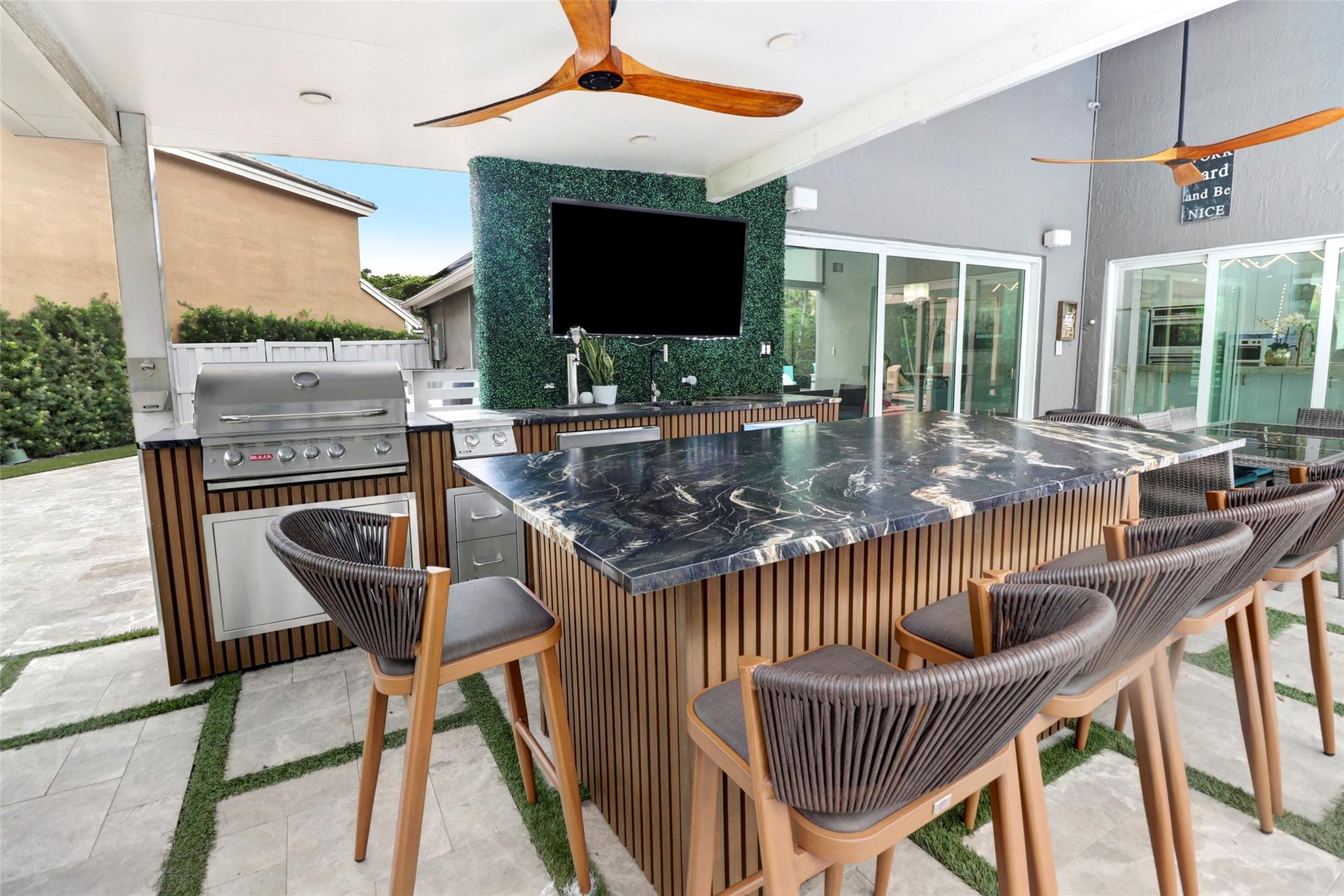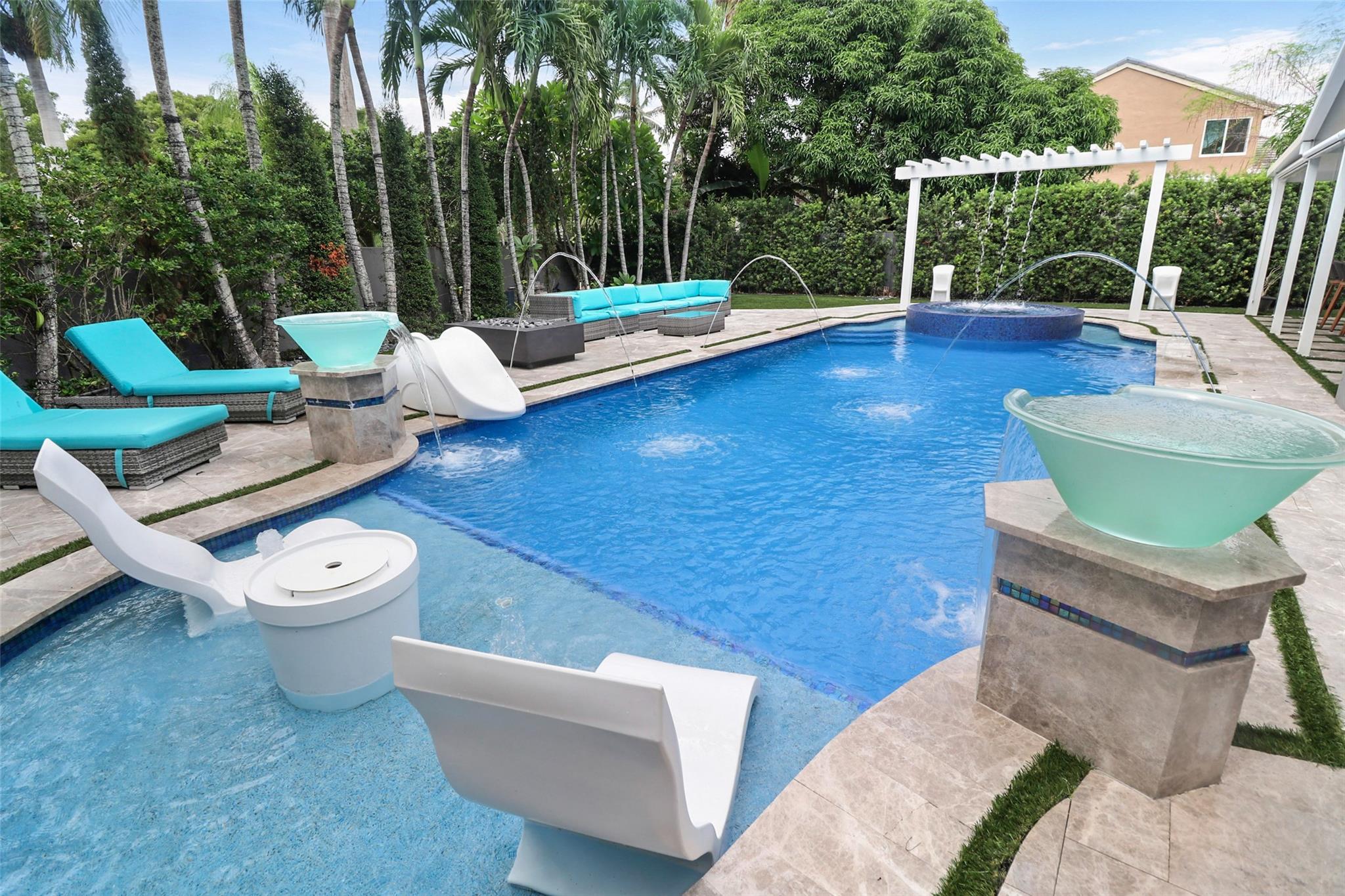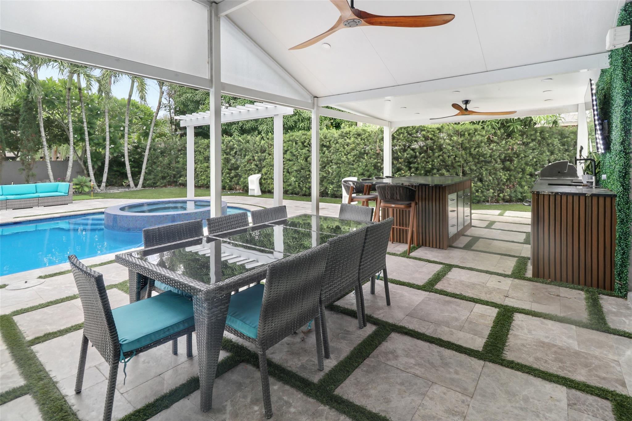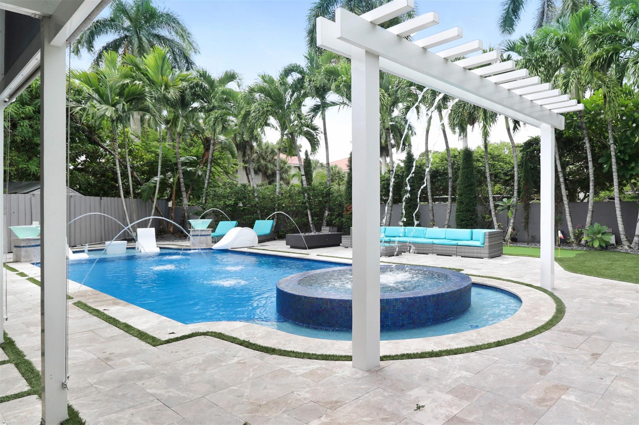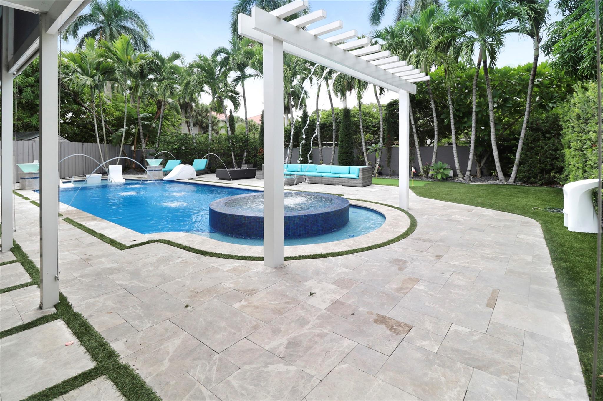 Welcome to your private resort-style retreat! This updated home offers the perfect blend of luxury, comfort, and functionality. Step outside to your backyard oasis featuring a sparkling resort-style heated/cool pool & jacuzzi with waterfall, fully equipped outdoor kitchen, lush artificial grass, and kids’ playground. Inside, enjoy a modern kitchen with high end finishes and new upgraded appliances. The open layout creates a warm and inviting flow throughout the home. Energy efficiency meets style with solar panels that keep utility low. Hurricane windows and door's. It has been thoughtfully upgraded to provide peace of mind and everyday convenience. This home truly has it all—luxury, sustainability, and friendly spaces—ready for you to move right in!