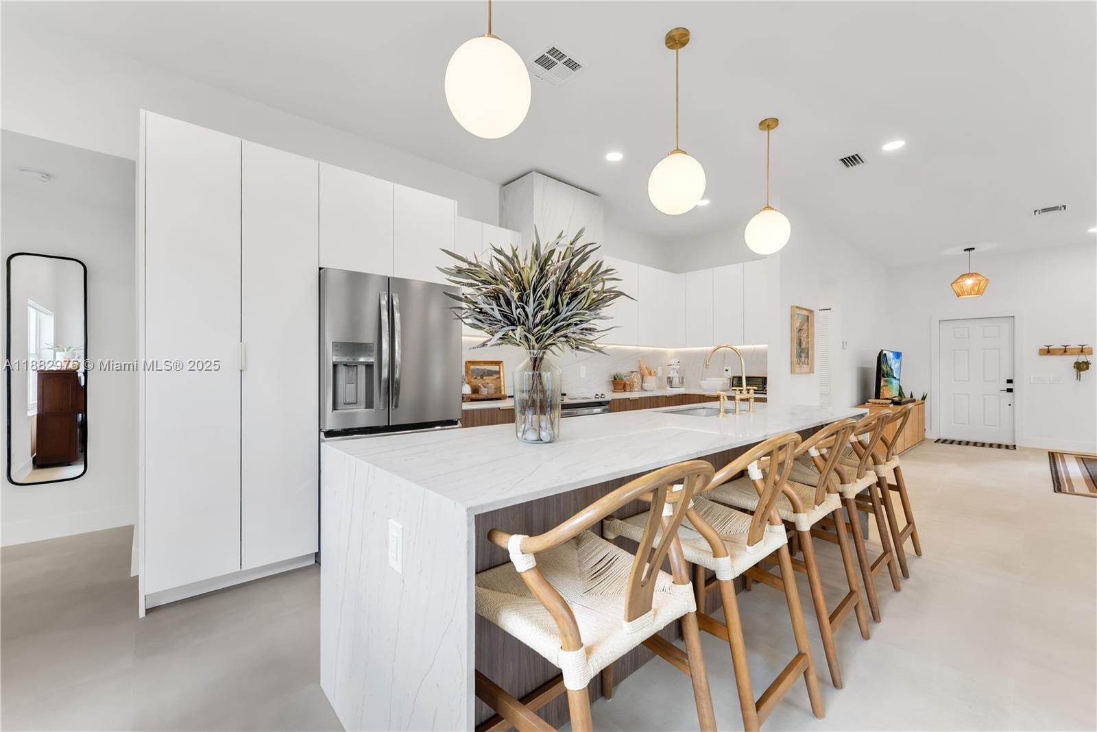 Experience modern elegance in this fully remodeled corner home, nestled within a prestigious 24-hour guard-gated community! Beautifully remodeled with the finest finishes, this 3BR/2BA home with 2-car garage and 1,450 SF home includes a luxury minimalist design with Egger soft-close cabinetry, quartzite counters with waterfall island, custom hood & backsplash, brass fixtures, modern lighting, under-cabinet lighting, and new appliances (fridge, oven, microwave, washer & dryer). Spanish porcelain tile throughout, remodeled 2nd bath, full exterior/interior paint, and new tile roof (2023). Community features a clubhouse, pool, playground, soccer, pickleball & basketball courts. Family friendly community situated walking distance to top-rated A schools! Schedule your showing today!