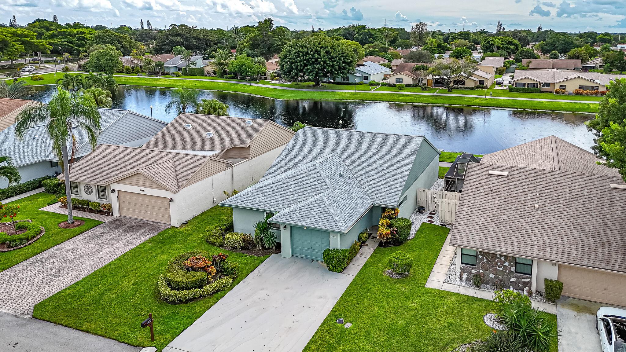 WATERFRONT RETREAT! New Roof 2024 | Gorgeous Lake Views | Extended Florida Room with Full Wall Of Sliders | Spacious Floor Plan | Vaulted Ceilings | LED High Hats | Living and Dining Areas with Double Sliders to Florida Room | Eat-In Kitchen with Breakfast Area and Pantry | Primary Suite w/ Two Walk-In Closets | Ensuite Bath with Extended Vanity | Walk-In Shower | Quiet Neighborhood | Resort-Style Amenities | Clubhouse with Fitness Center, Sauna, Library and Theater | Five Pools and Four Spas | Tennis, Pickleball and Bocce Courts | HOA Includes Cable, Exterior and Roof Maintenance | Prime Location | Minutes to Beaches, Lake Ida, Popular Atlantic Ave | ROOF 2024 | AC 2012