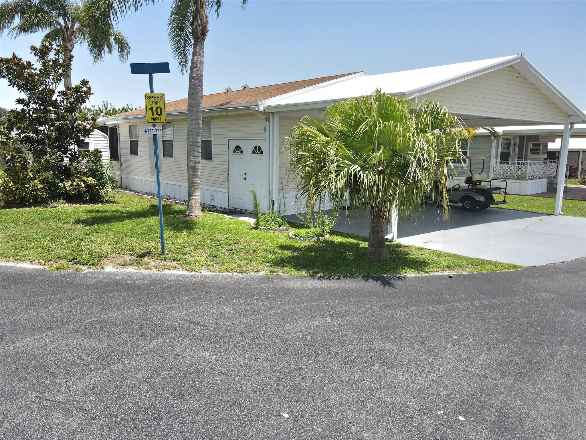 ~BLUE CYPRESS GOLF & RV RESORT~ Discover tranquil waterfront living at Blue Cypress Golf and RV Resort. This newly renovated one-bedroom, one-bathroom home offers a spacious 1,670 square feet of comfortable living space. Situated on a premium corner lot with extra space, this charming retreat features a serene patio with peaceful water views. Step inside to a generously sized living room and a fully furnished interior that's move-in ready. All major appliances are included—even washer and dryer—so you can start enjoying resort living immediately. The amenities are: The 9-Hole golf course, pickleball, heated and cooled swimming pool, or try your hand at shuffleboard. Your private dock provides direct water access for fishing enthusiasts and nature lovers. All measurements are approximate.