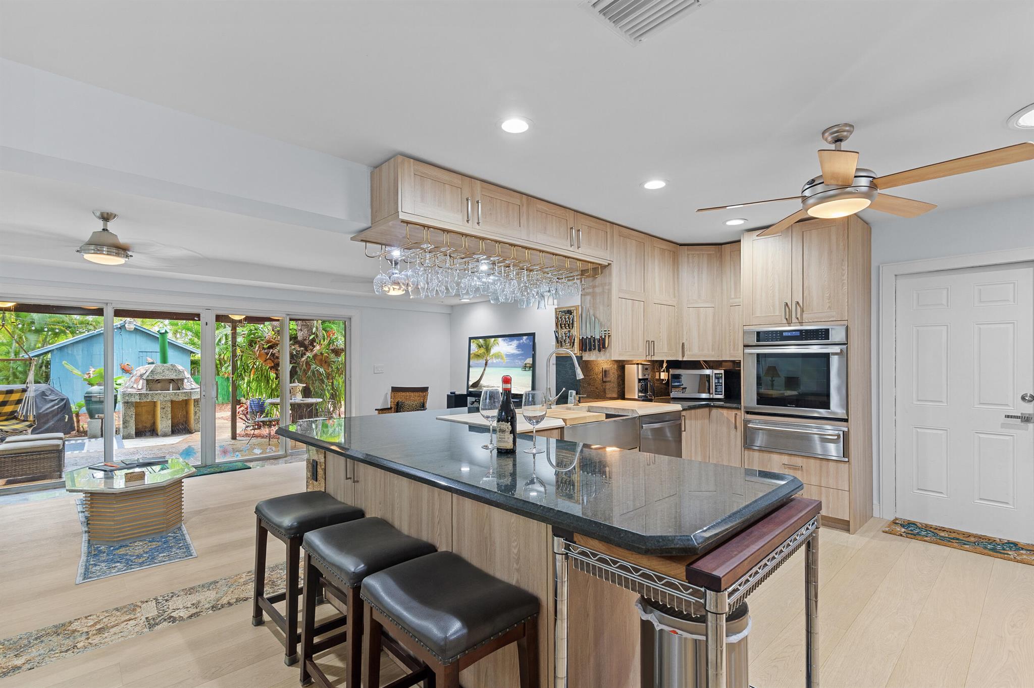 ** OWNER FINANCING AVAILABLE !This home has many rare features, Completely renovated and nestled on just under 1/2 acre lot, 140'x140', shaded by 8 oak trees and enveloped by large palms, exotic bamboos. and rare mature fruit trees. Rarely found, there is a well for irrigation. The exterior of the home was just re-painter and all stone work re-sealed. This private house rests on a tranquil dead-end street with 31' to the property line on one side and 21' on the other. Home includes an air-conditioned 3 car garage. The electric bill ranges between $225 and $330 while powering AC, pool pumps, well pump, two refrigerators, two high-efficiency water heaters, fans, and a wine cellar cooling unit. The house has a 4-year-old 20 kW auto backup generator fed by a 500 gal propane tank,it also f