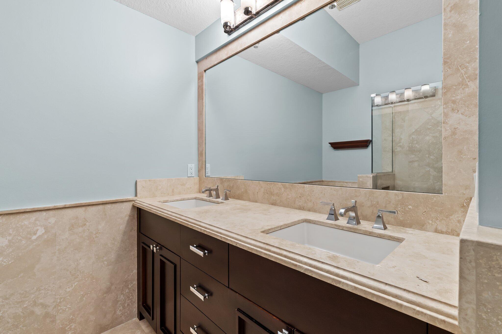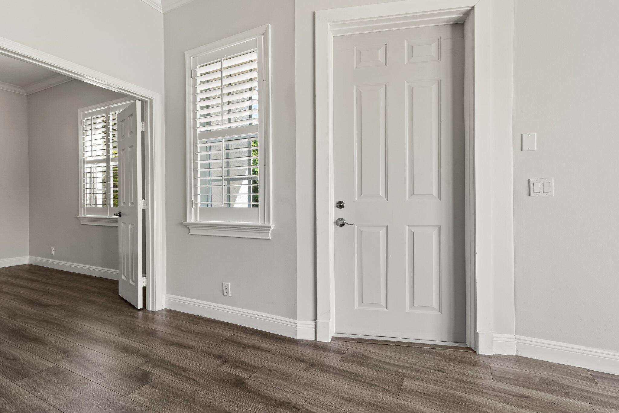 Enjoy walkability in this elegantly renovated townhome at PGA Commons--just steps from fine dining and boutique shopping, nestled behind Salute Market and La Masseria. This sophisticated residence features hurricane impact glass, custom kitchen cabinetry with quartz countertops, Samsung appliances, a built-in bar area, electric window shades, and laminate flooring. The two-car garage boasts sleek epoxy flooring and large storage cabinets. Enjoy southern views over a private canal from your back patio with travertine marble decking. Other recent upgrades include a 2018 roof, 2023 A/C, and 2020 water heater. We look forward to showing you this immaculate home.