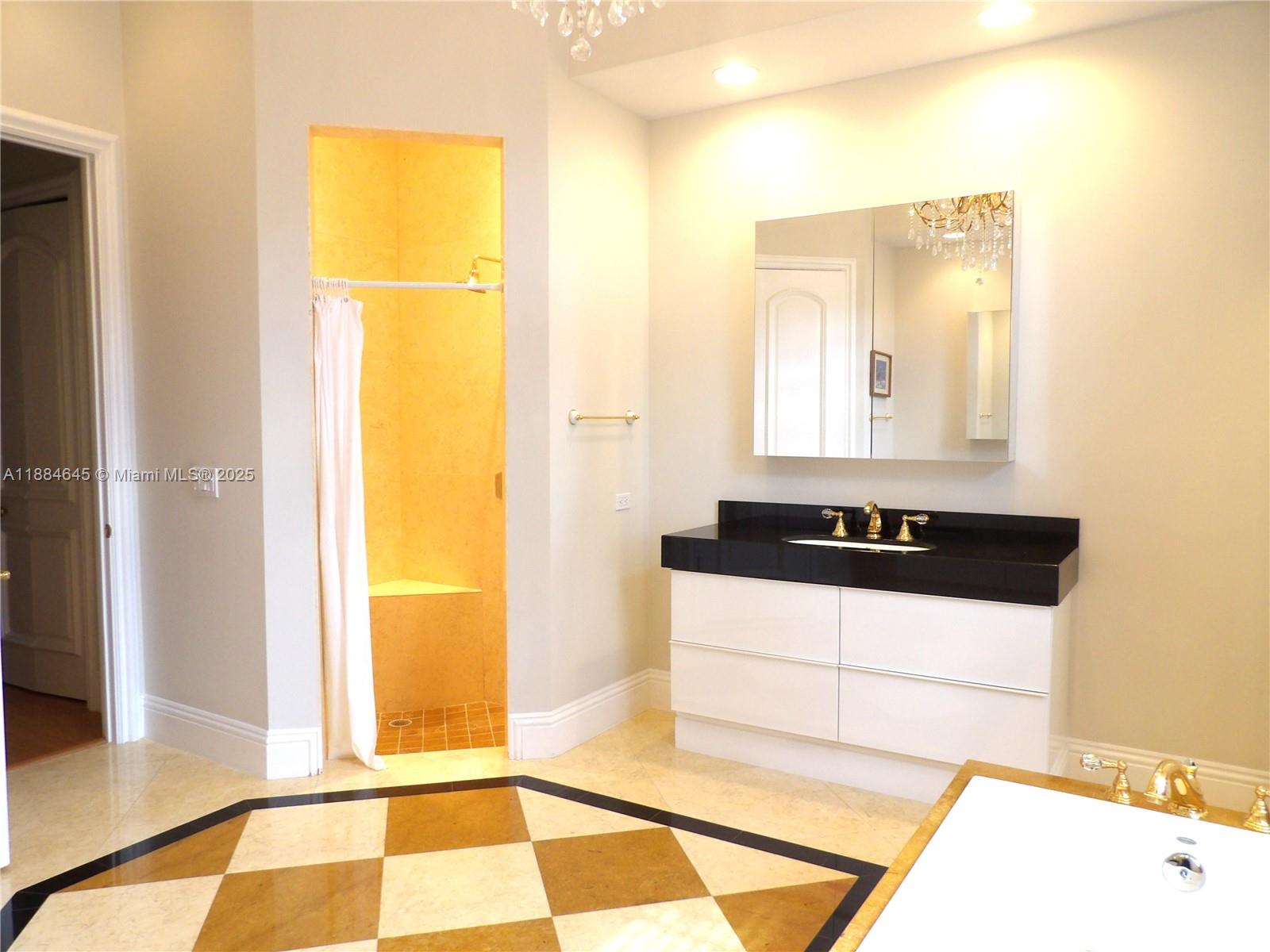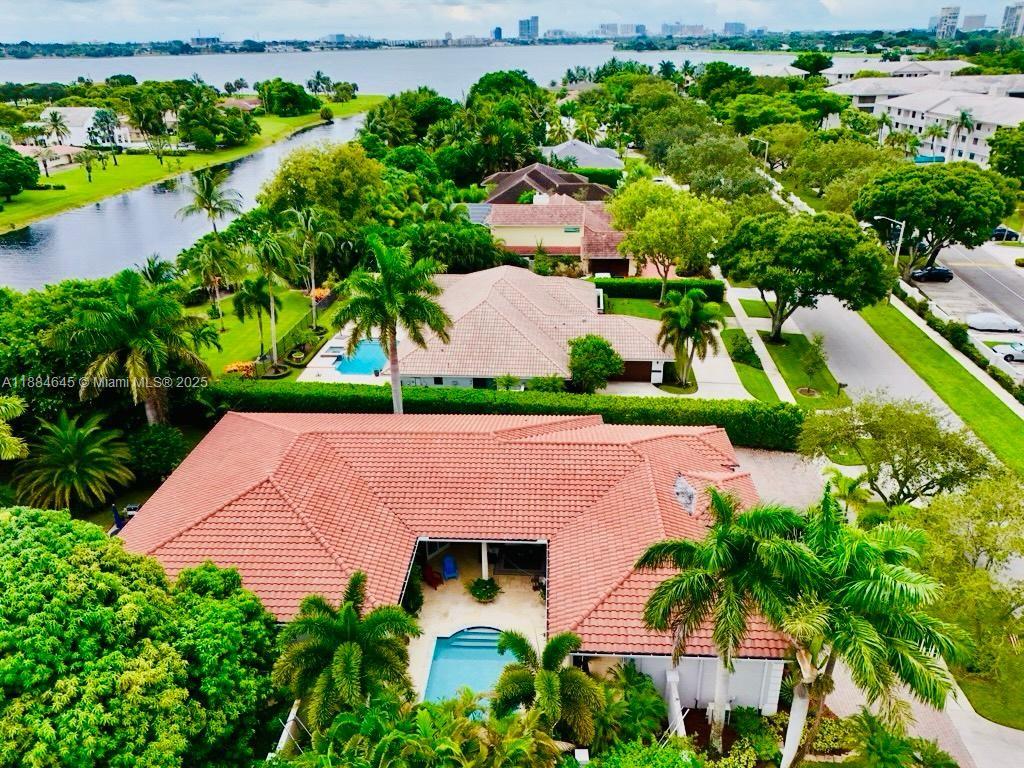 Elegant custom estate in prestigious Presidential Estates, built in 2008 with hurricane-safe construction rated to 240 mph. This home offers 4 spacious bedrooms, an office, and 3.5 baths. The classically center courtyard true private retreat features a private guest quarters, pool, fountain, and summer kitchen—perfect for entertaining or relaxing. Inside, a brand-new quartzite gourmet kitchen pairs with solid wood cabinetry, seemles tile flooring. Elegant details include Egypcian marble thougout, Swarovski crystal chandeliers, and gold accents for timeless sophistication. Set on a 110x137 lot plus a ¼-acre canal easement with direct access to Lake Mangonia, two kayaks included. Just minutes to downtown, beaches, airport, and premier shopping. This home offers both luxury and convenience.