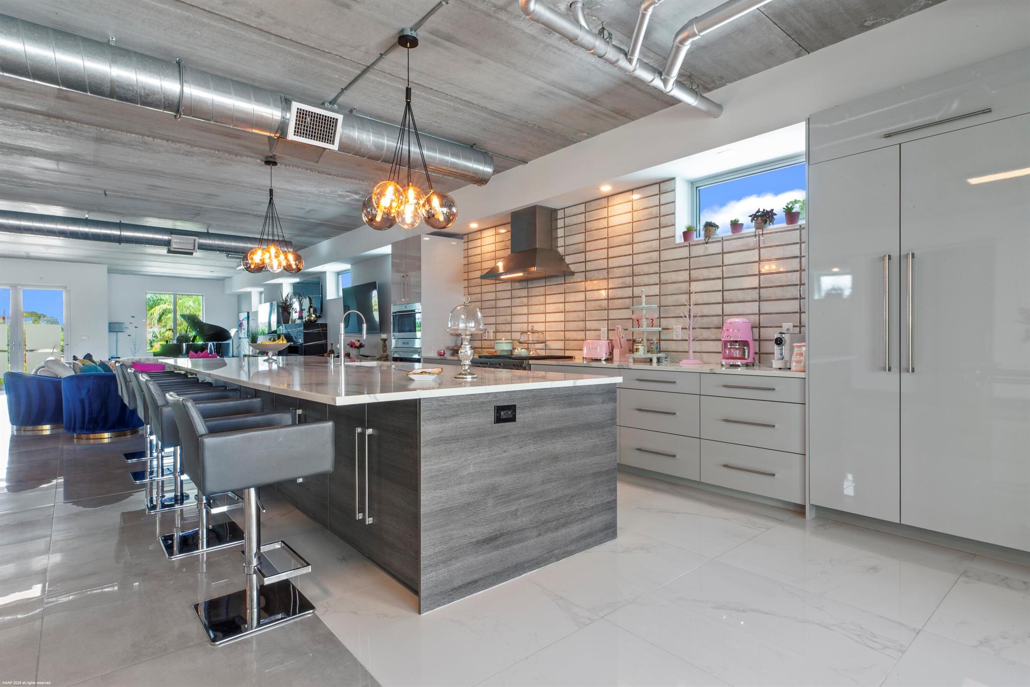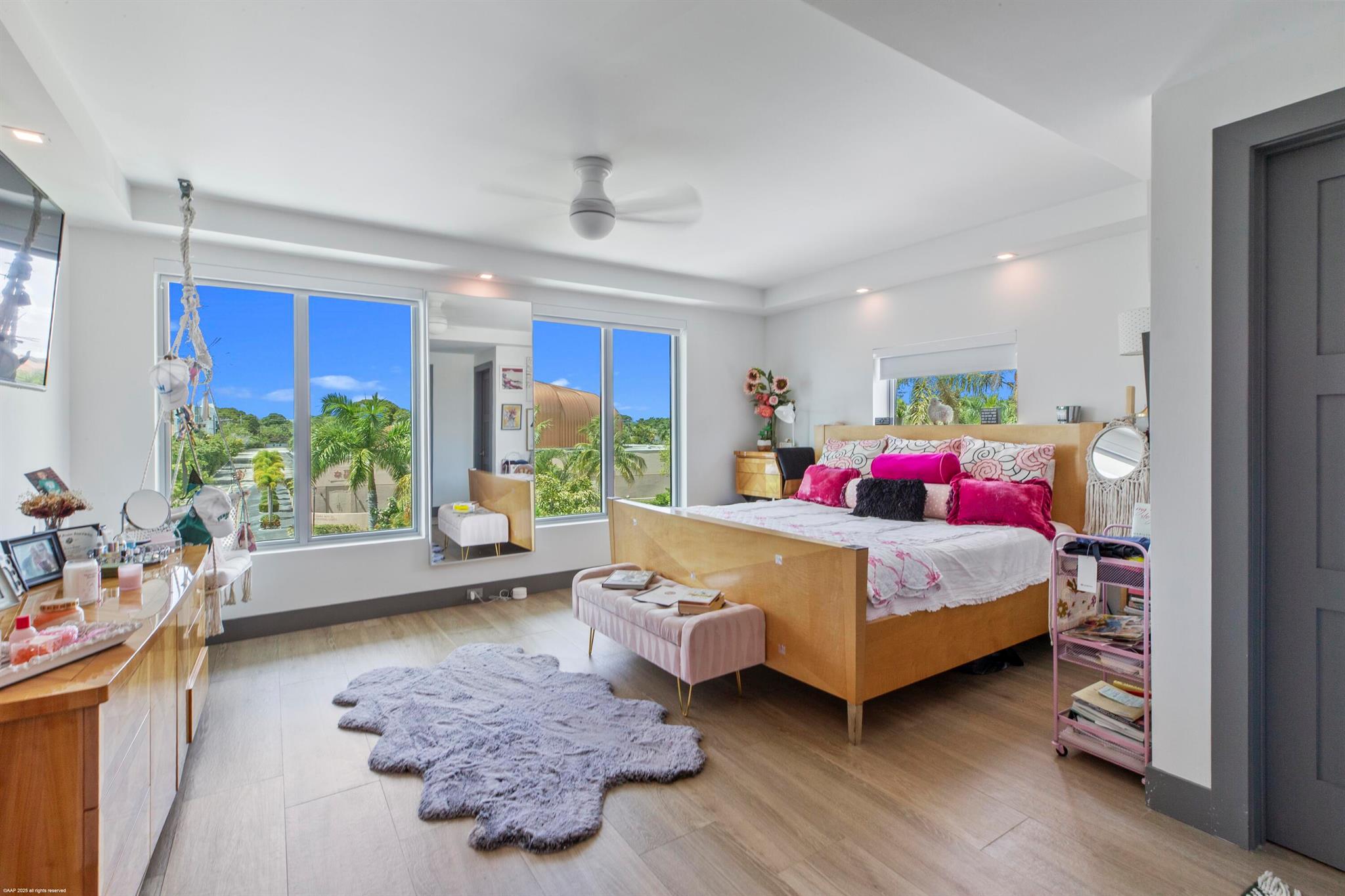 This stunning new direct Intracoastal Oasis was inspired by the incredibly talented minimalist architect Ludwig Mies who was the pioneer of modern architecture. The home's main level has the gourmet kitchen, the living, family and dining rooms all in one open space boasting beautiful views of the wide Intracoastal waterway and Palm Beach. Take the elevator to the third floor where the primary suite has a large deck overlooking the resort style back yard/pool/spa and beachfront. This third level has two additional bedrooms with en-suite baths and great closets. The VIP bedroom and club room are located on the ground floor and live like a separate home. Down at the beach sits a lovely private cabana giving guests the best seat in the house! Behind the entry gates, the air conditioned garage