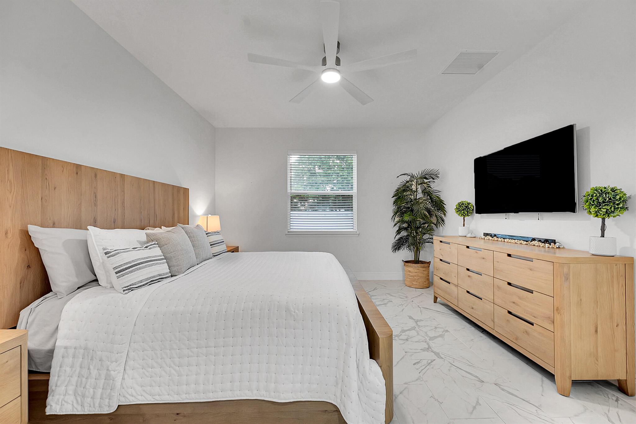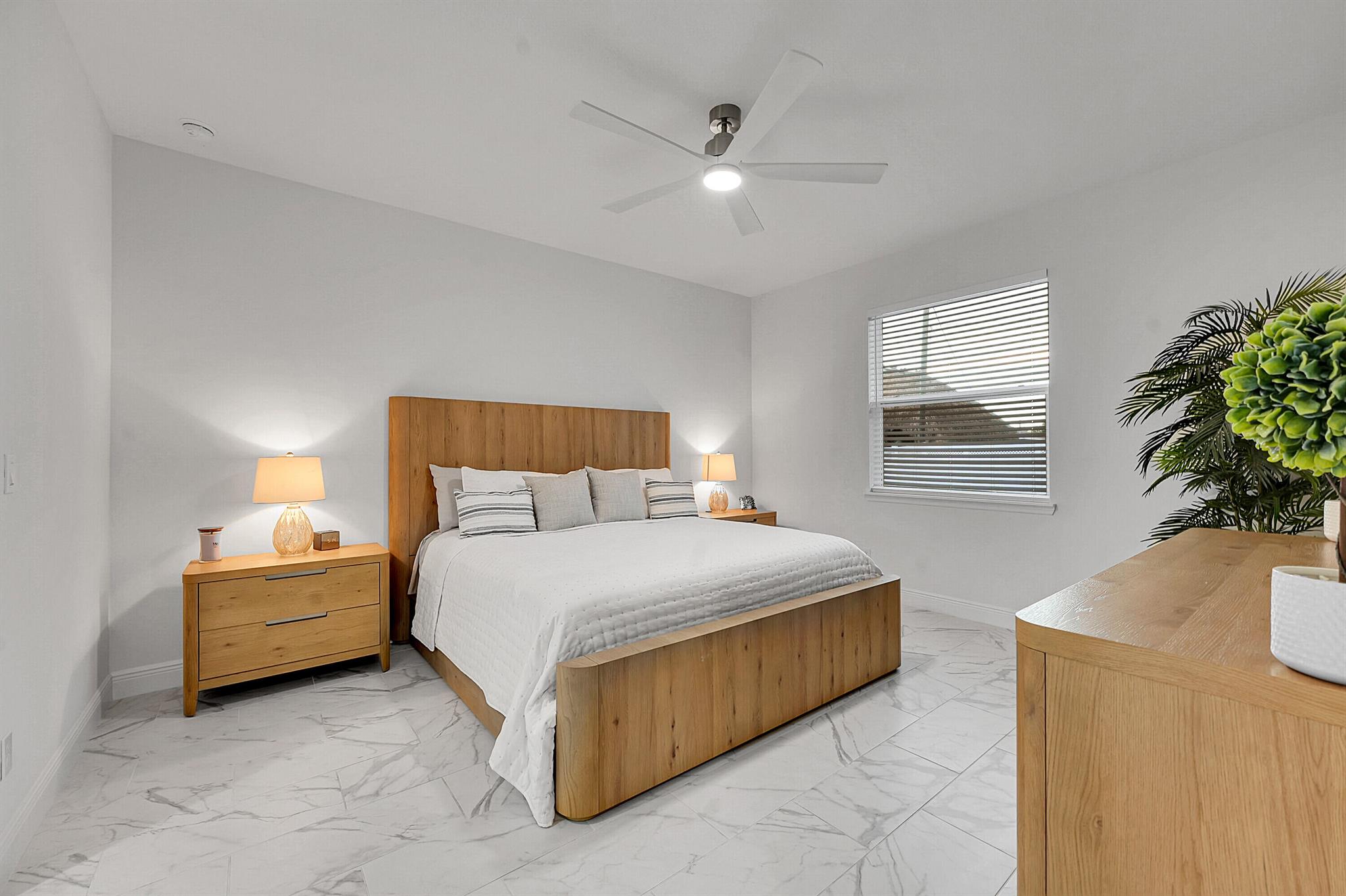Welcome to your dream home! Built in 2024, this immaculate single-family home combines modern coastal elegance with comfort. Conveniently located near I-95 and the Turnpike, you'll have easy access to everything the Treasure Coast has to offer. 4 spacious bedrooms | 2 full bathrooms, Split bedroom floor plan with 9-foot ceilings & open-concept design. Porcelain tile floors throughout. Gourmet kitchen with 42'' white shaker cabinets (soft-close). Quartz counters throughout! Spa-like primary suite with a luxurious walk-in shower featuring dual shower heads, His and her walk-in closets! Large fenced-in backyard, perfect for pets and entertaining 2-car garage with upgraded polyaspartic flooring (10-year warranty). No HOA - enjoy freedom and flexibility. Minutes from I-95 and the Turnpike, with