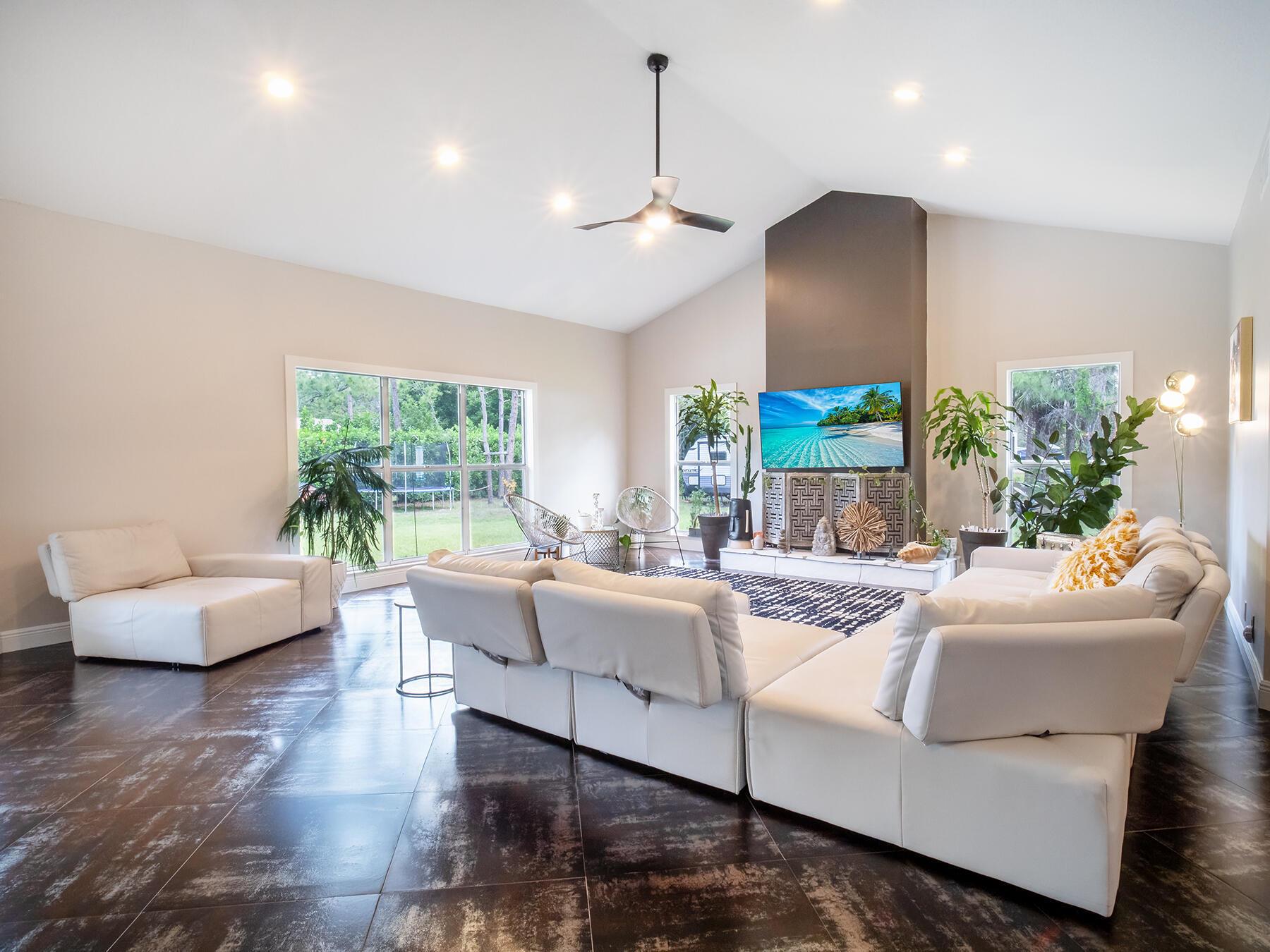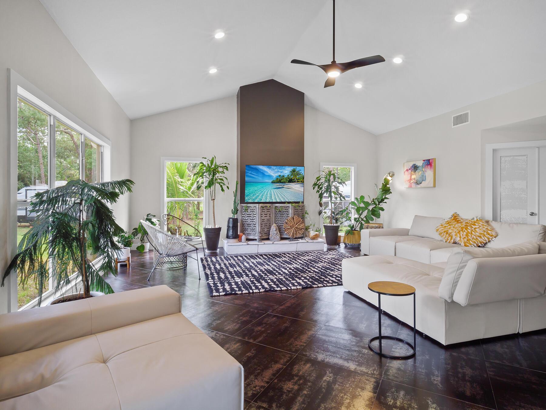 Modern 4-Bedroom, 3-Bath Home with Pool, RV Income Potential, Tropical Landscaping on 1.15 Acres in Loxahatchee Step into the refined essence of Florida living. This fully renovated 4-bedroom, 3-bathroom residence sits on a lushly landscaped 1.15-acre lot in one of Loxahatchee's most desirable neighborhoods. Combining modern comfort with elegant style, this turnkey home is ready for move-in. Interior Features An open-concept layout welcomes you with spacious living areas, stylish design details, and abundant natural light. Premium porcelain tile and laminate flooring flow throughout the home, while custom closet doors and sleek finishes elevate its modern character. The stunning kitchen features chic cabinetry, updated fixtures, and a layout perfect for both everyday living.
