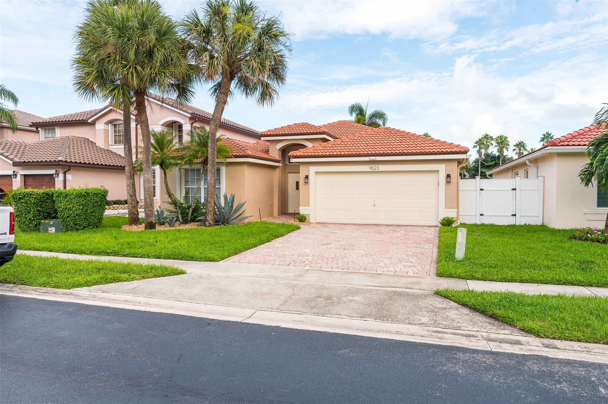 Beautiful, lakefront property located in gated community - Symphony Bay. Featuring 3BR 2BA, split floor-plan w/ tile floors throughout, wood flooring in all bedrooms, updated kitchen with granite counters & SS appliances, paved patio gorgeous lake views. New Central AC, home outside newly painted, newer roof, accordion shutters. Community amenities include, pool, clubhouse, gym, play area & tennis courts. Newly landscaped entry to community. Great school district!!