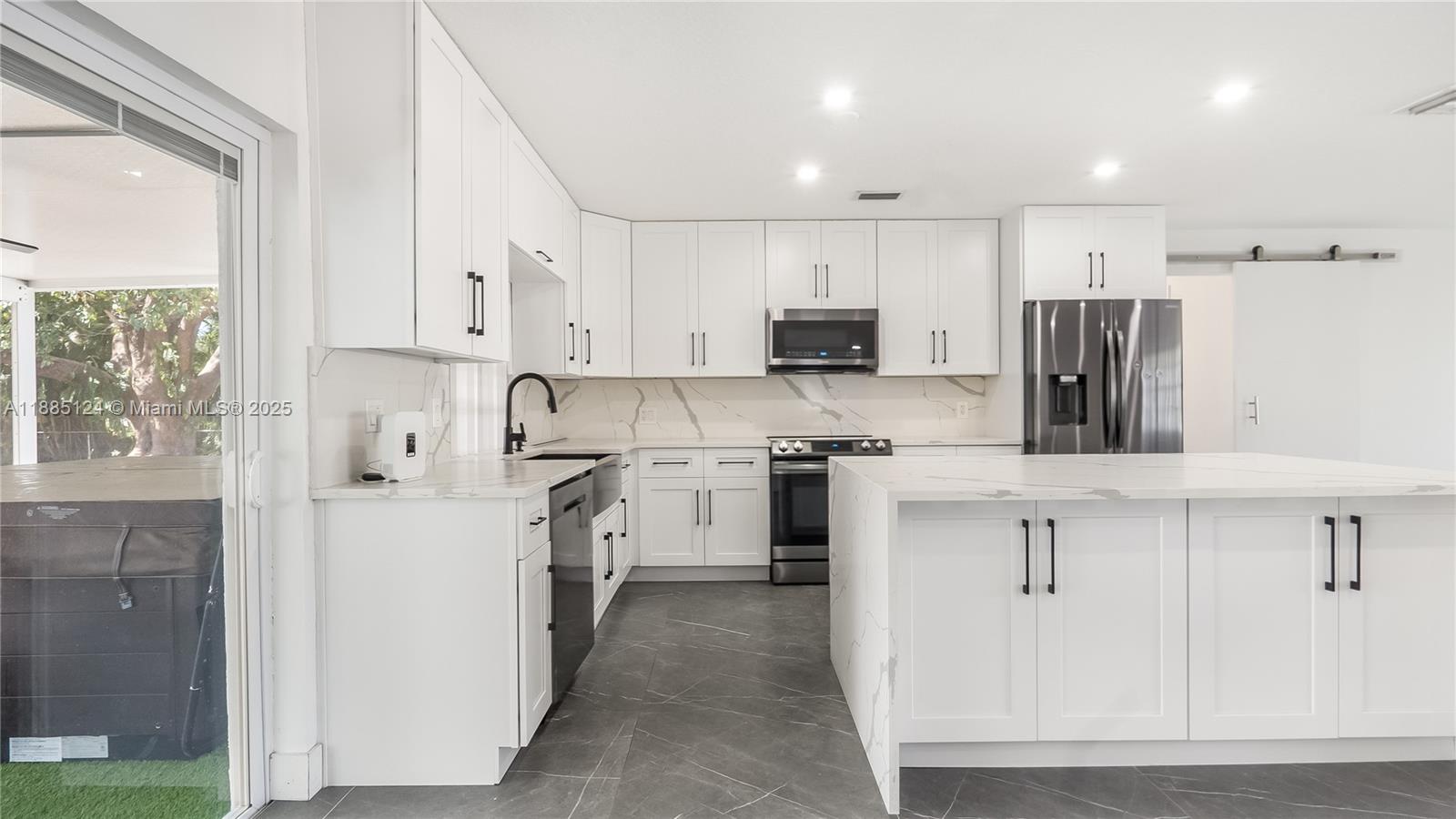 FULLY REMODELED HOUSE WITH INLAWS COTTAGE! Desirable SouthWest Ranches Home on close to 1 acre fronting a canal!. Fenced and landscaped throughout. The Main Home is a 3beds/2full bathrooms and the Cottage is a Large 1/1 with a full sized kitchen. Both have modern new porcelain flooring, lighting, fans and fixtures. Kitchens match with real wood cabinets and high end White River Granite and a main center island for entertaining guests. The home has been freshly painted inside and outside as well as the roof. There is an insulated screened patio with a Jacuzzi. New everything! Dont miss out on this Gem: calm, nature, space, waterfront.