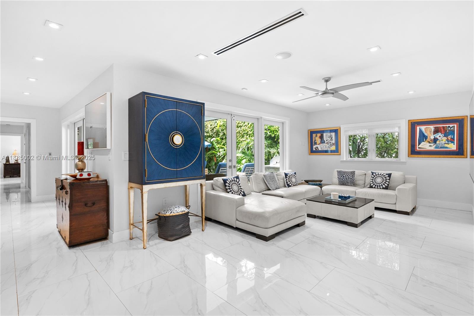 Exquisite turn-key Coral Gables 3 bed / 2 bath home plus den/office set on a tranquil, tree-lined street. This residence showcases sleek porcelain tile floors, a bright open kitchen with granite island, Viking appliances, gas range, and wine cooler. The en-suite master features a soaking tub and walk-in closet. French doors open to a private outdoor retreat with summer kitchen, lounge pool, hot tub, and waterfall. Perfect for entertaining! Additional highlights include impact windows and doors, lush landscaping with lighting, grey stone pavers, two-car garage, and newer roof. Ideally located just one block from Granada Golf Course & close to Salvatore Park & Biltmore Hotel, this extraordinary home sits on one of the best streets in the Gables.