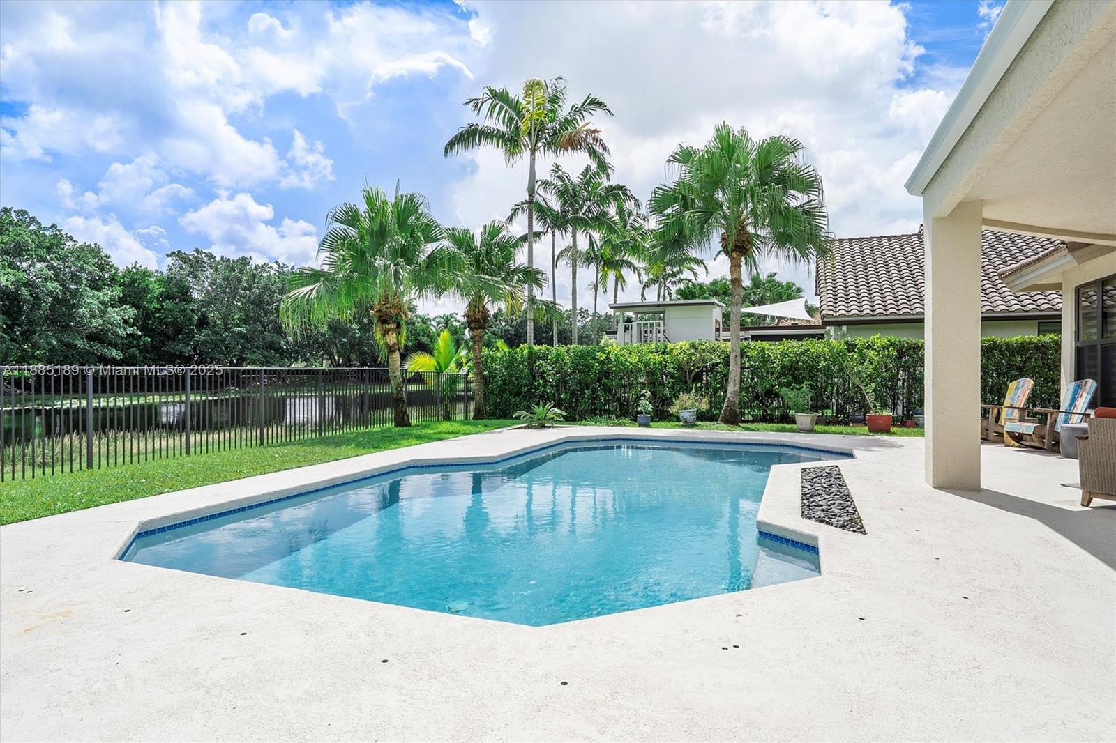 LAKESIDE LIVING! Weston’s Palm Island. Remodeled 5 bedrooms, 4 bathrooms one-story lakefront home. Well thought out floor-plan with expansive living room and dining room high ceilings full of natural light, 2025 modern kitchen with high-end appliances open to the family room where you will find elegance and comfort. The well appointed primary suite offers a spa-style retreat. High-Impact windows and doors throughout. The outdoors boast a saltwater pool with magnificent lake views, covered patio perfect for entertainment. Gated community conveniently located near park, A+ schools, shopping and dining!