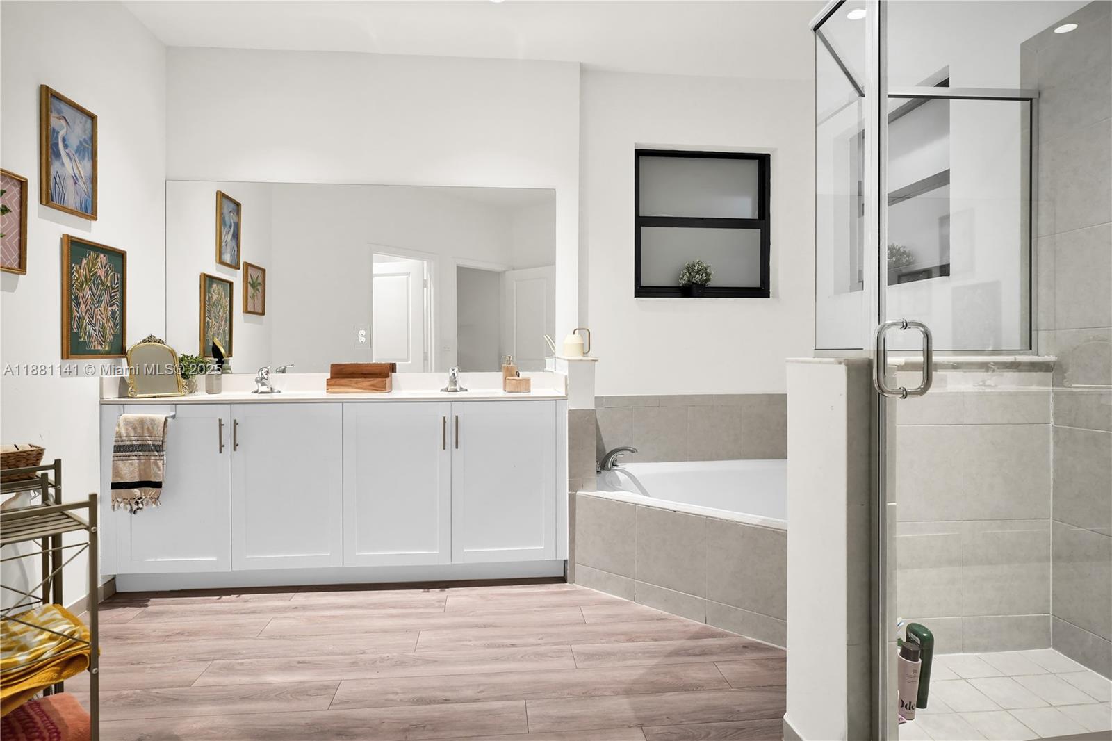 Beautifully designed 2-story home built in 2022 with over $70,000 of Upgrades! With comfort and convenience, this home features 5 spacious bedrooms and 3 full bathrooms, including a 1st-floor suite perfect for guests or multi-generational living. Inside, modern finishes include quartz countertops, plantation shutters, and a stylish decorative front door. Impact windows & doors,Over 70 interior and exterior LED lights create a warm and bright, inviting atmosphere. The primary suite offers a custom built-in closet for elegance and function. Outside, enjoy a wood privacy fence, huge lot with space for a pool, full surveillance system with DVR, and smart irrigation to keep the yard pristine. This home blends style, security, and comfort, offering the ideal place to create lasting memories.