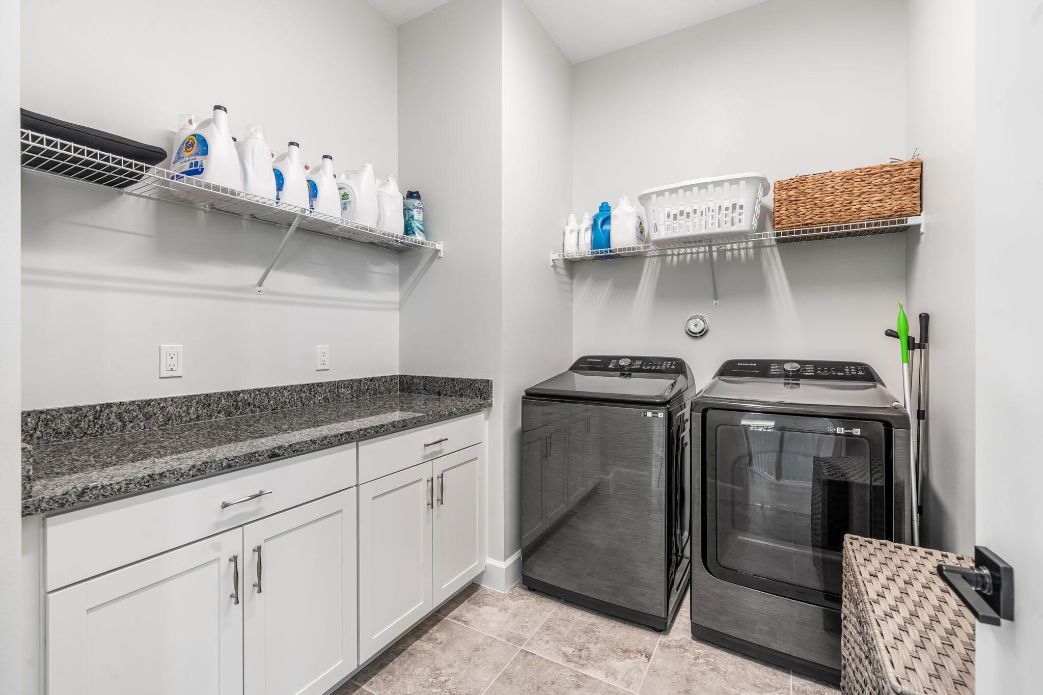 Impressive from the moment you arrive, this home features soaring 20-foot ceilings, impact windows, and extensive upgrades throughout. The gourmet kitchen offers elegant double-stacked lighted cabinetry, a designer island with premium slab countertop, a custom coffee bar with floating shelves, gas range, tankless gas water heater, and upgraded hardware. Designer chandeliers, pendant fixtures, recessed lighting,wainscoting and crown molding add timeless elegance. The primary suite includes a private balcony retreat and an upgraded bath with custom tile designs. Additional highlights include luxury vinyl floors upstairs and on the stairs, a porcelain fireplace wall, versatile loft, custom closet systems in all bedrooms, marble pavers, epoxy garage floors, & upgraded lighting throughout