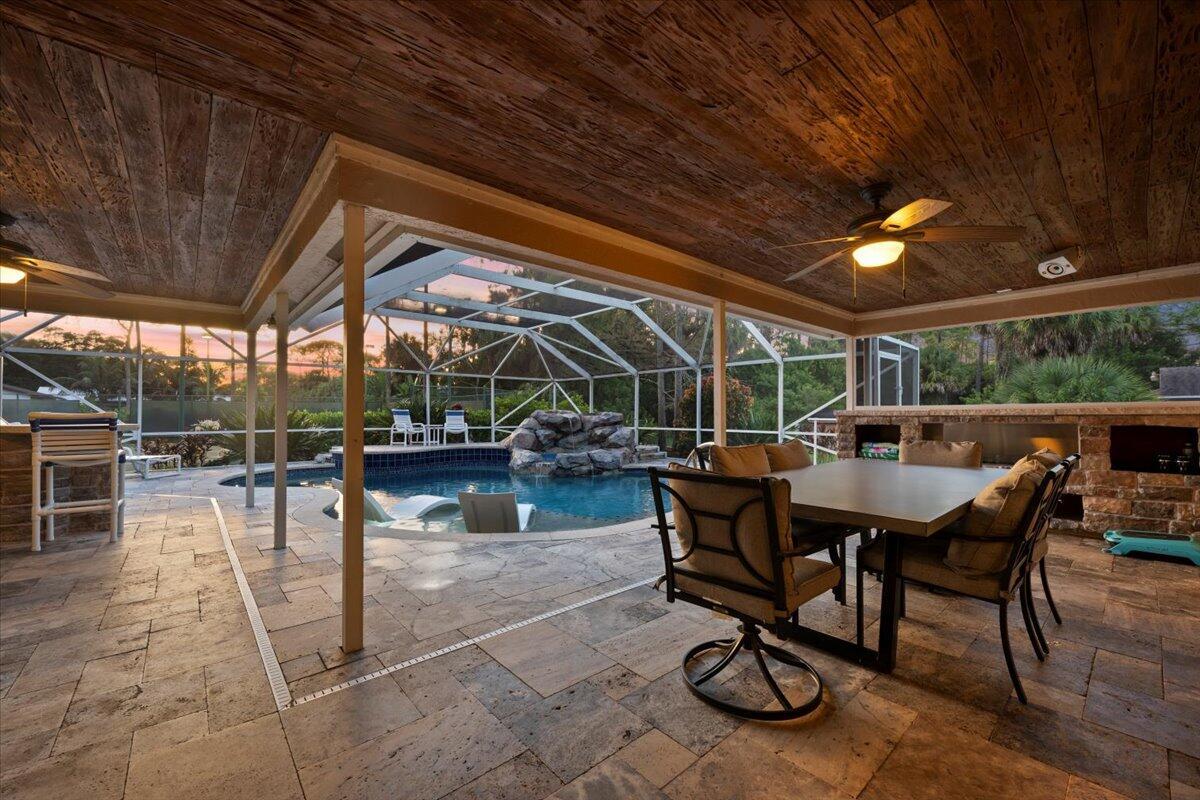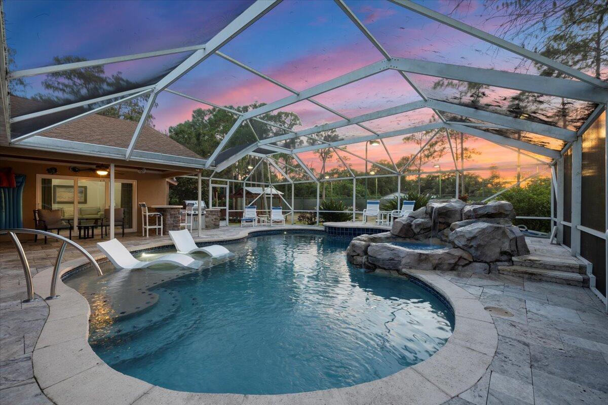 Private Tennis Court! Is tennis your dream? Then this is your dream come true--the ball is in your court! Set at the end of a quiet, paved cul-de-sac is a beautifully landscaped 1.04 acre lot with landscape lighting and a cobblestone driveway. This distinctive 3-bedroom plus den, 3-bath residence is a private paradise for tennis lovers and outdoor enthusiasts. Play every day on your private, regulation-size, Har-Tru (clay) tennis court with eight professional 1,000-watt metal-halide lights (newer ballasts and bulbs) for evening matches and a 10-foot fence on 3 sides for optimal play. An automatic above-ground sprinkler, fed by well water, keeps the court in peak condition. Between sets, relax in the stunning 10' x 20' cedar gazebo with Trex flooring, ceiling fan, power, lighting