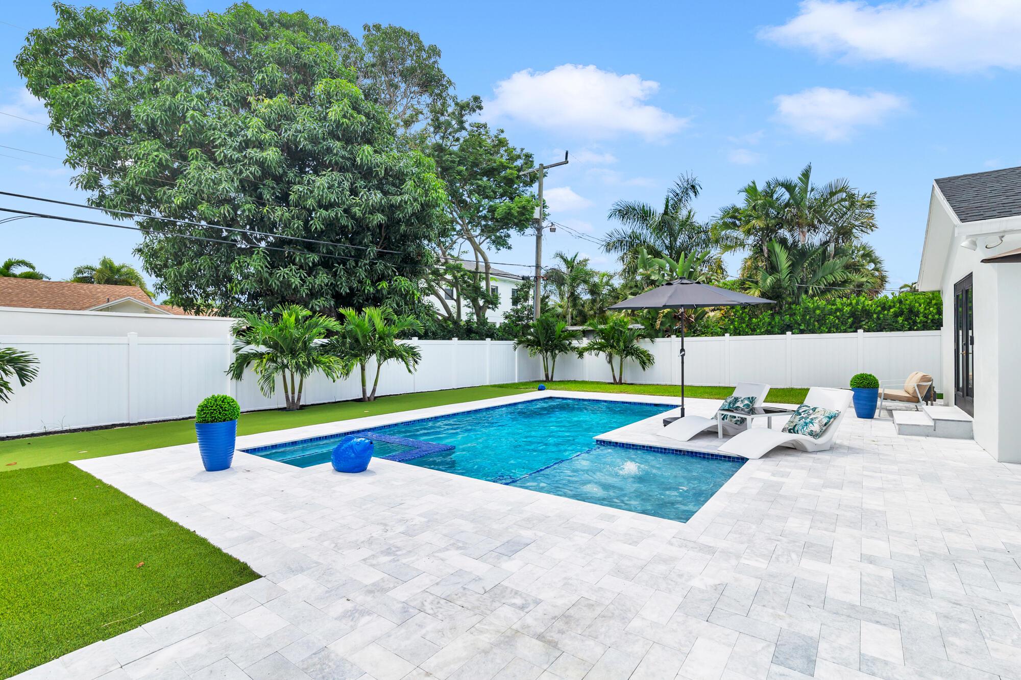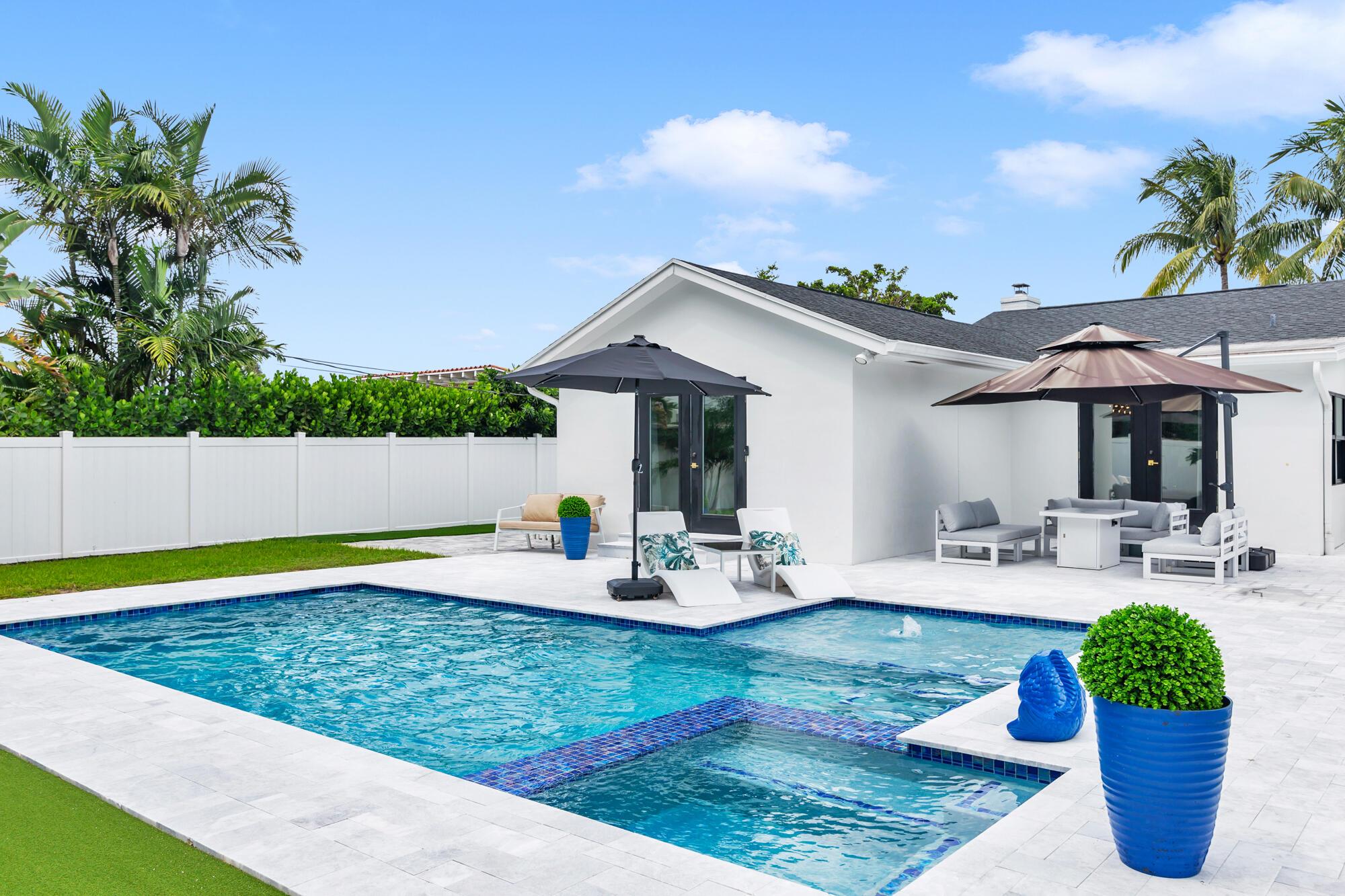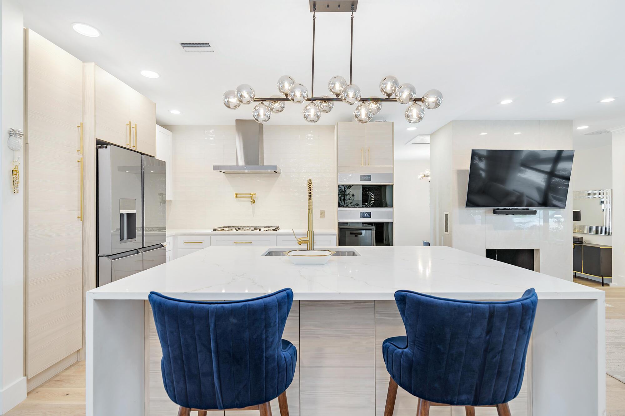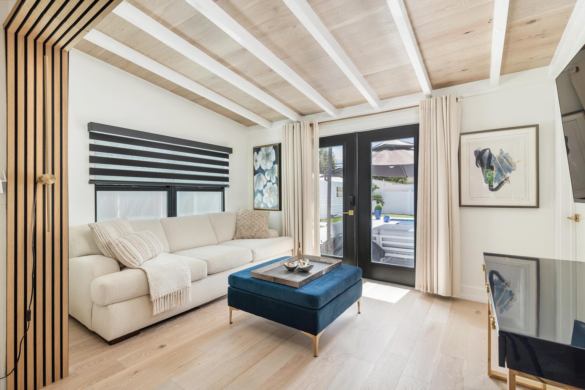 This beautifully renovated one-story residence, set on an oversized 9,750 sq. ft. lot, offers 3 bedrooms, 3 baths, and a thoughtful layout designed for modern living and effortless entertaining. Step inside to find a light-filled interior where recent updates elevate every space. New tinted impact windows, custom wood flooring, updated lighting with dimmer and Alexa-enabled switches, and custom cabinetry throughout create a refined yet comfortable atmosphere. The inviting living room features a wood-burning fireplace and a custom coffee bar, while the dining area and sunroom are adorned with electric window treatments. The chef's kitchen is equipped with Platinum Cafe GE appliances, a gas range with pot filler, wet bar with wine fridge, two-drawer fridge/freezer, and all new plumbing and